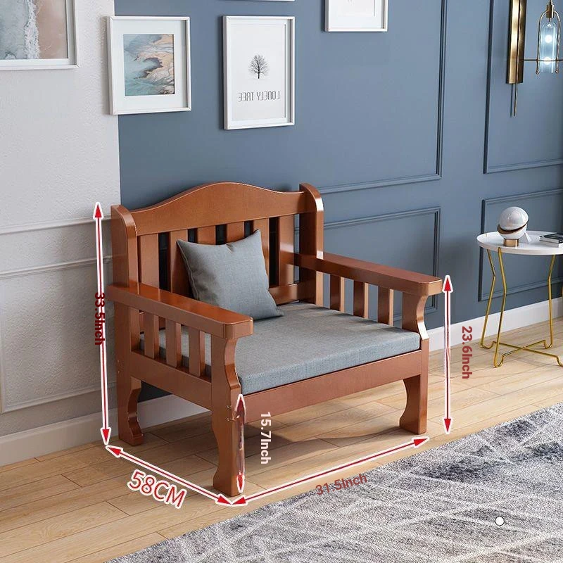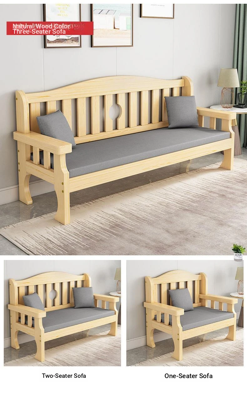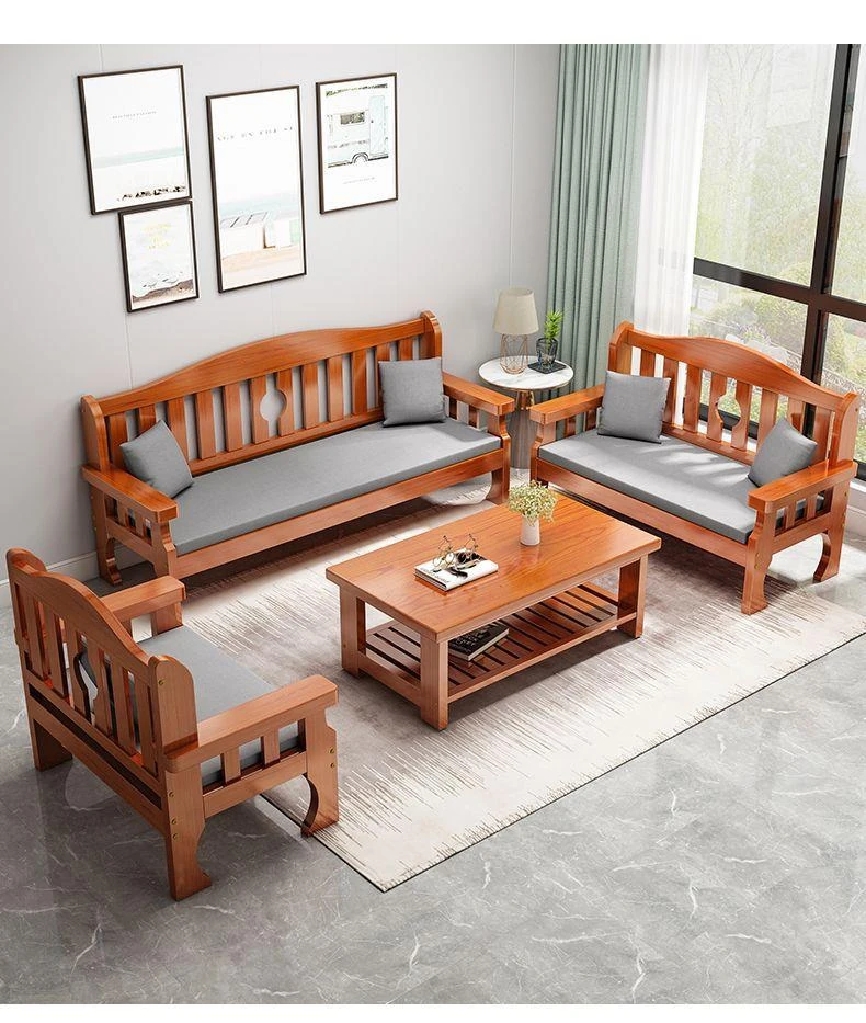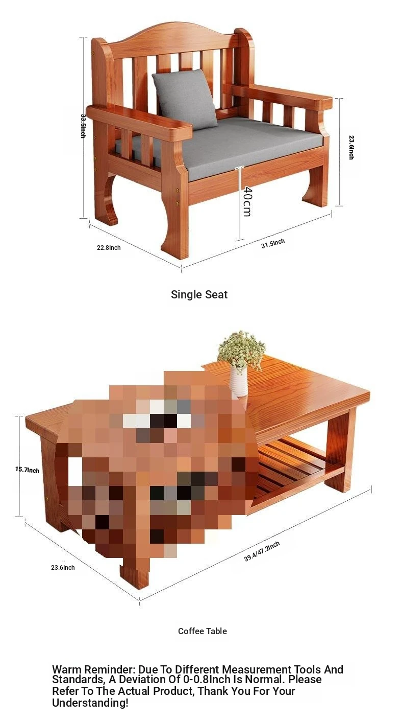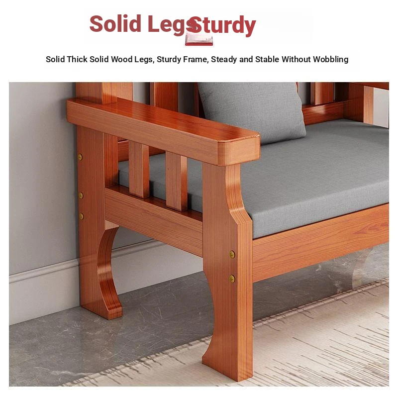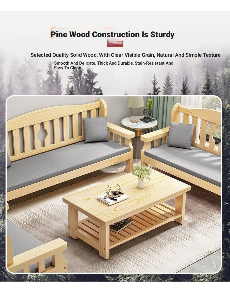 German Solid Wood Sofa - Three-Seater Combination, All Solid Wood, New Chinese Style, Minimalist Modern Design, Perfect for Small Living Rooms