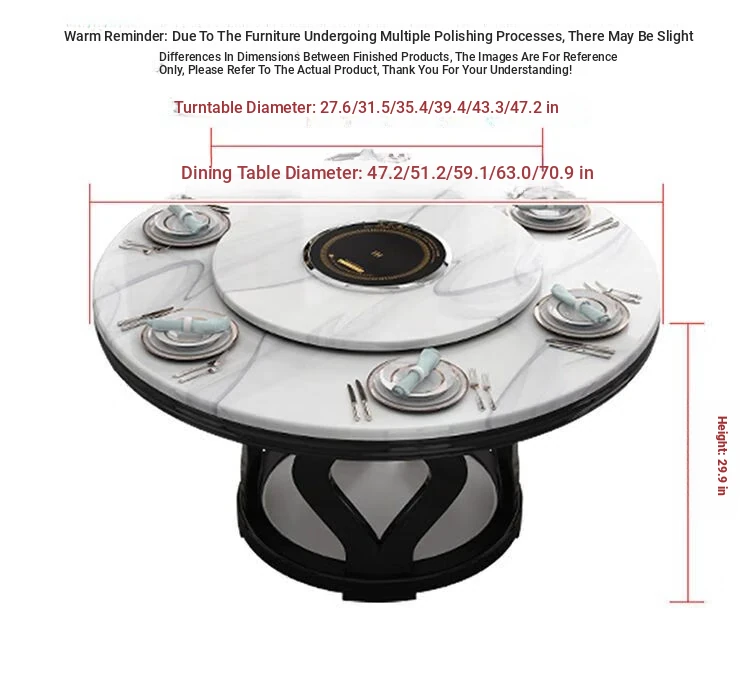 51.18 in dining table +8 chairs (send turntable Induction cooker)