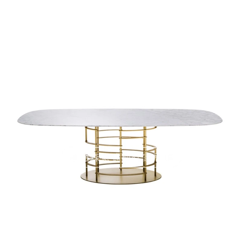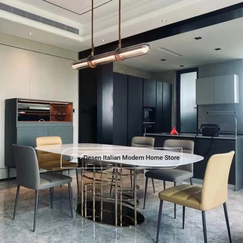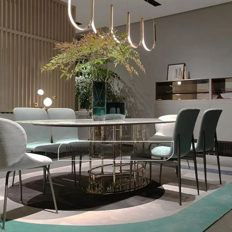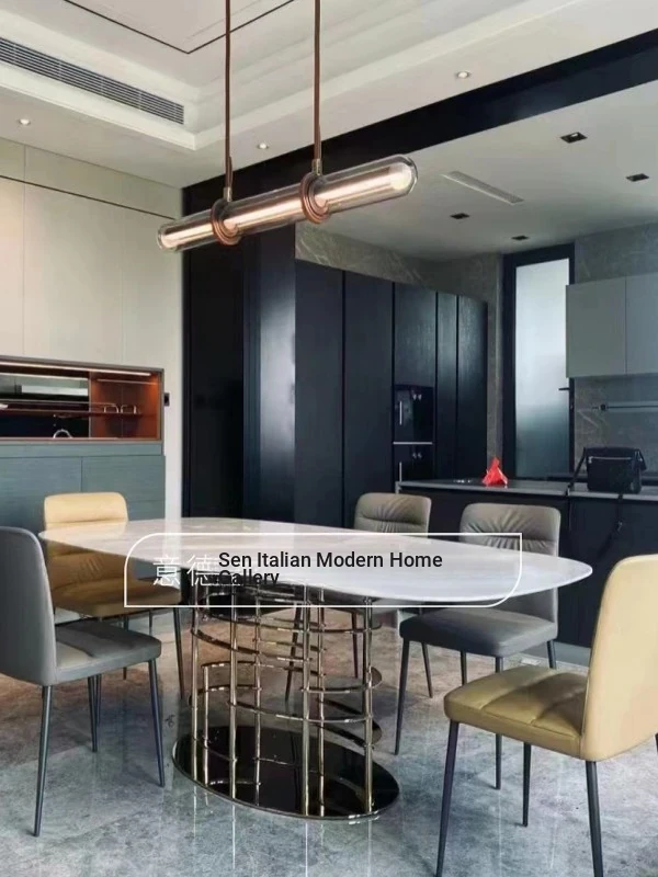 HC28 Elegant White Marble Rectangular Dining Table - Italian Minimalist Design with Curved Edges, Available in 1.8m and 2.4m Sizes, Perfect for Modern Dining Spaces.