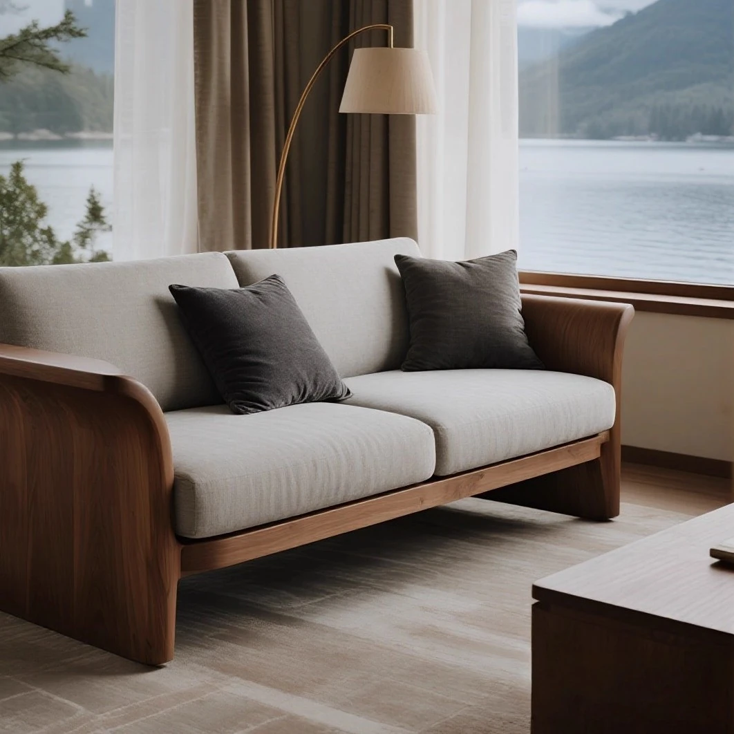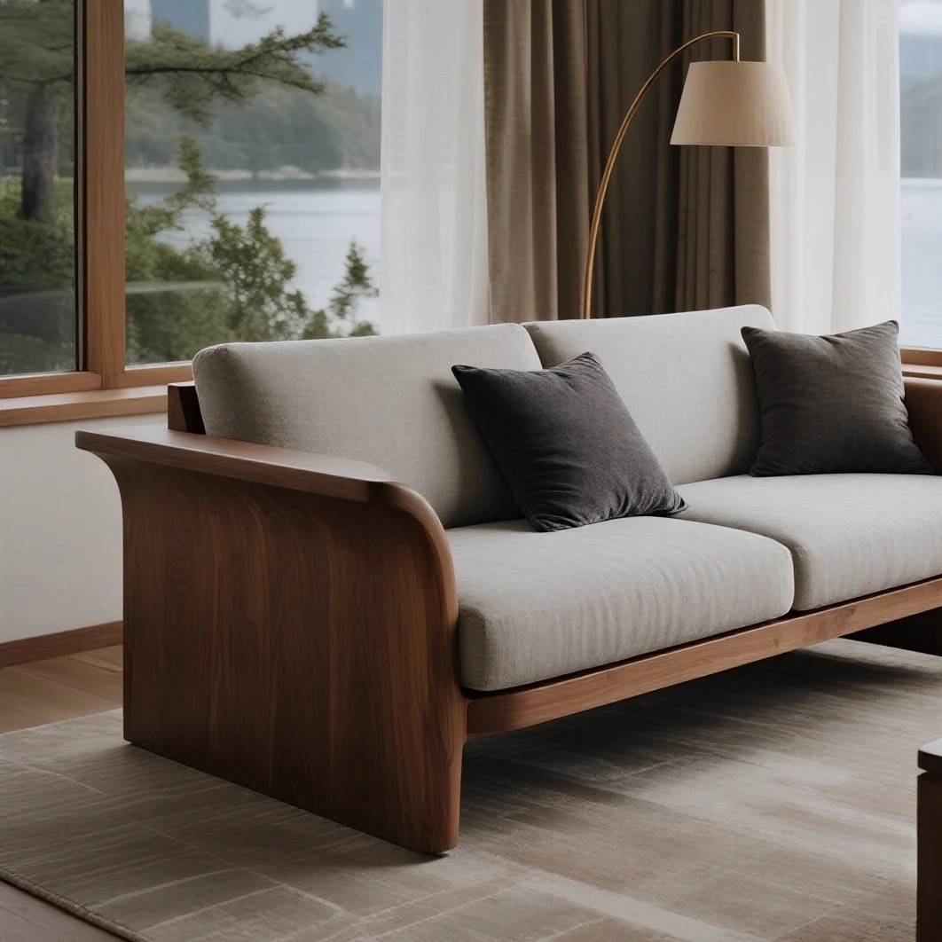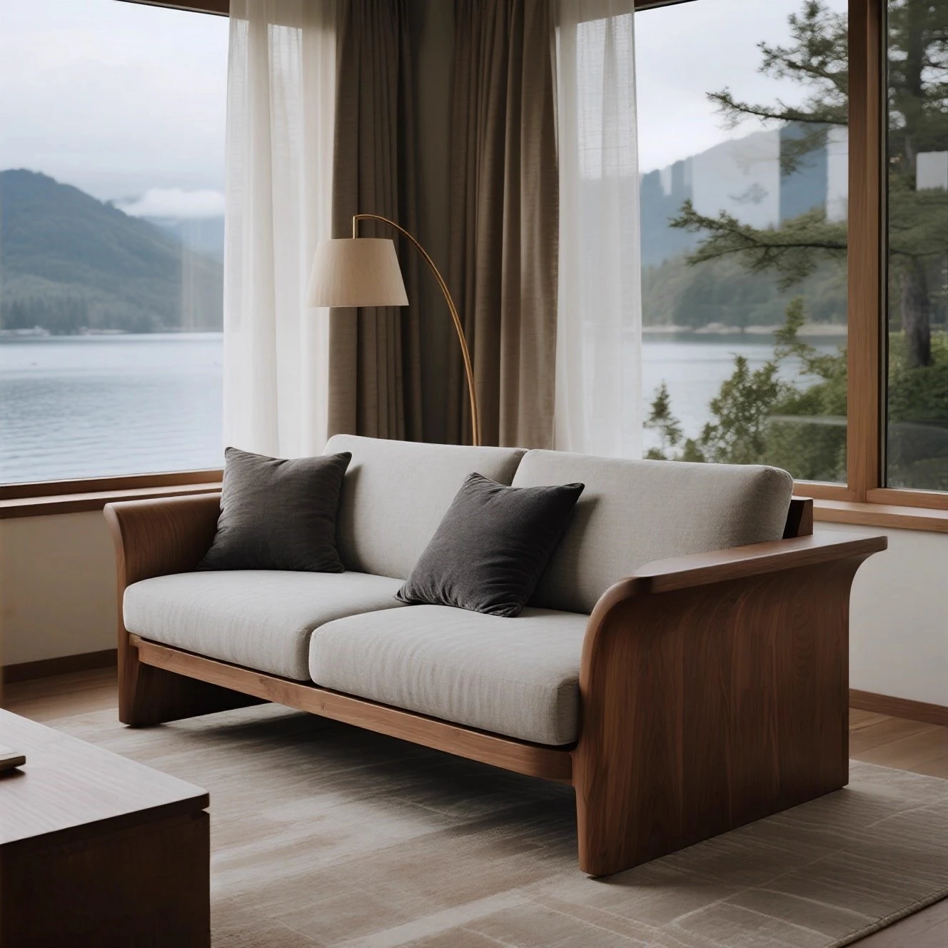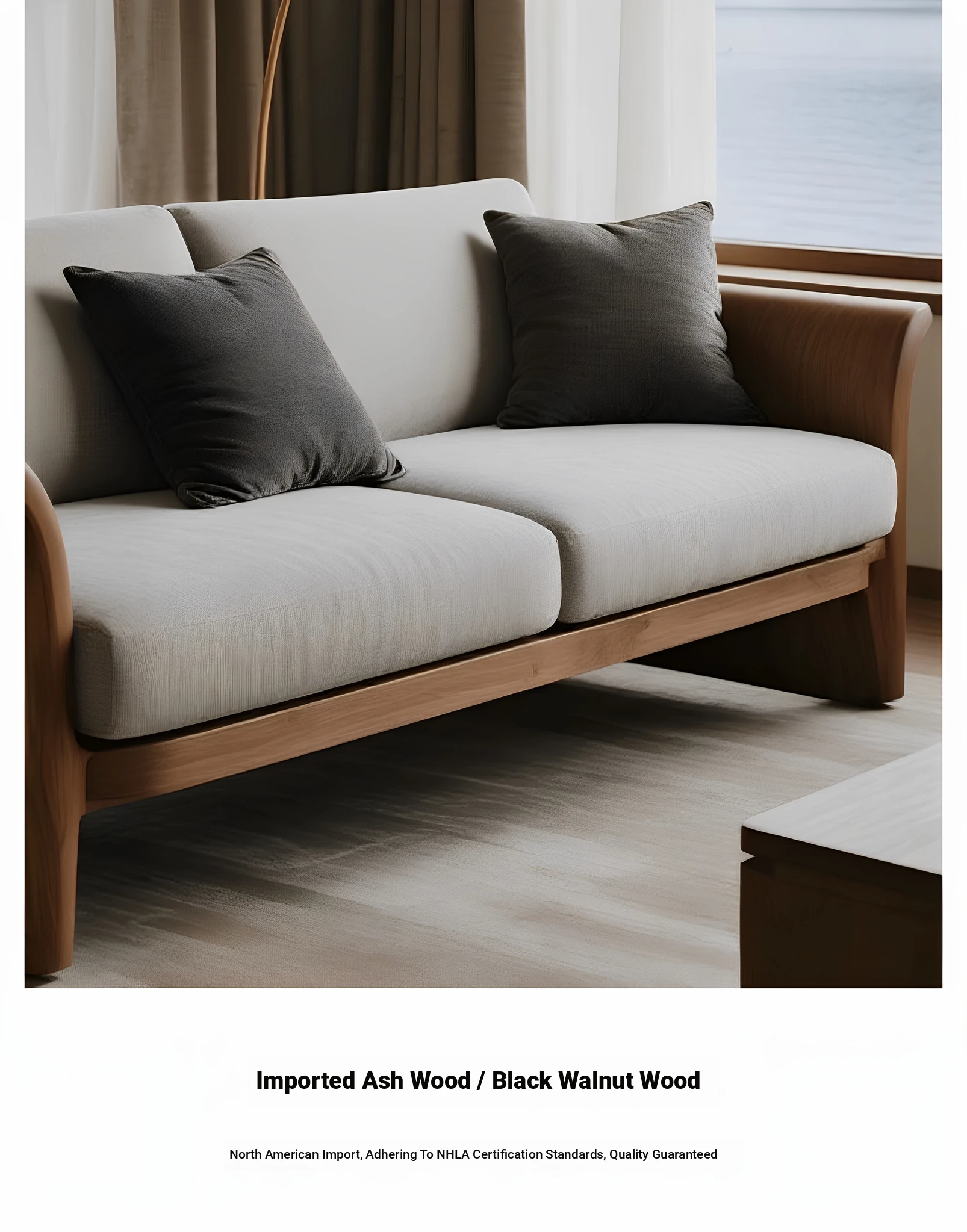 High-End Minimalist Zen Style Ash Wood Sofa - Luxurious Home Living Room Furniture in North American Black Walnut Solid Wood Design