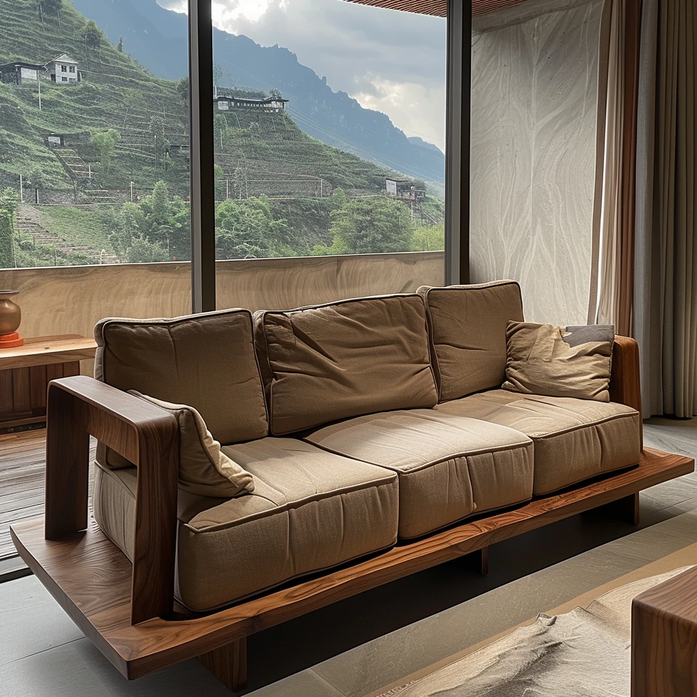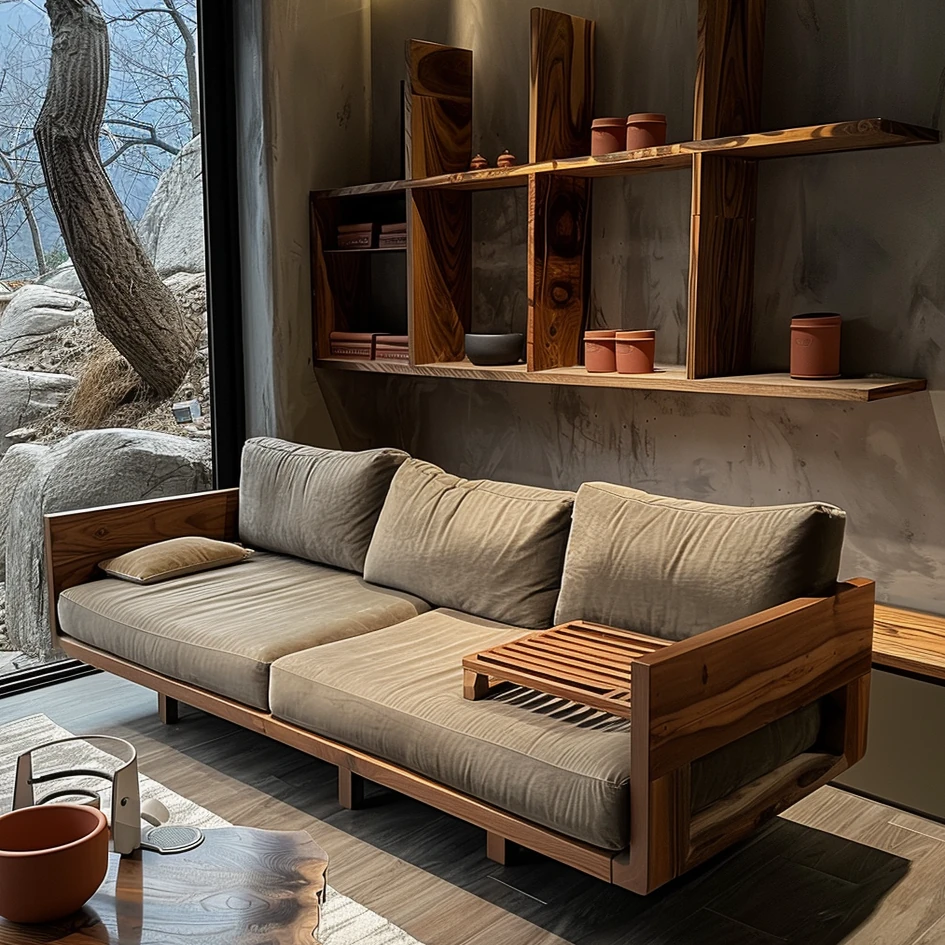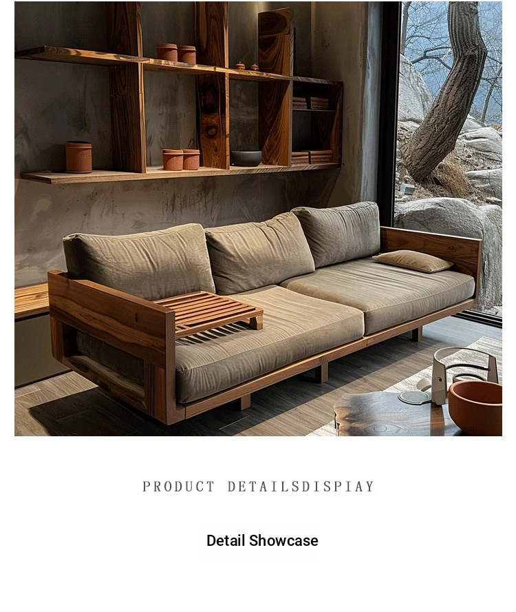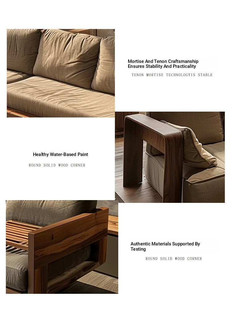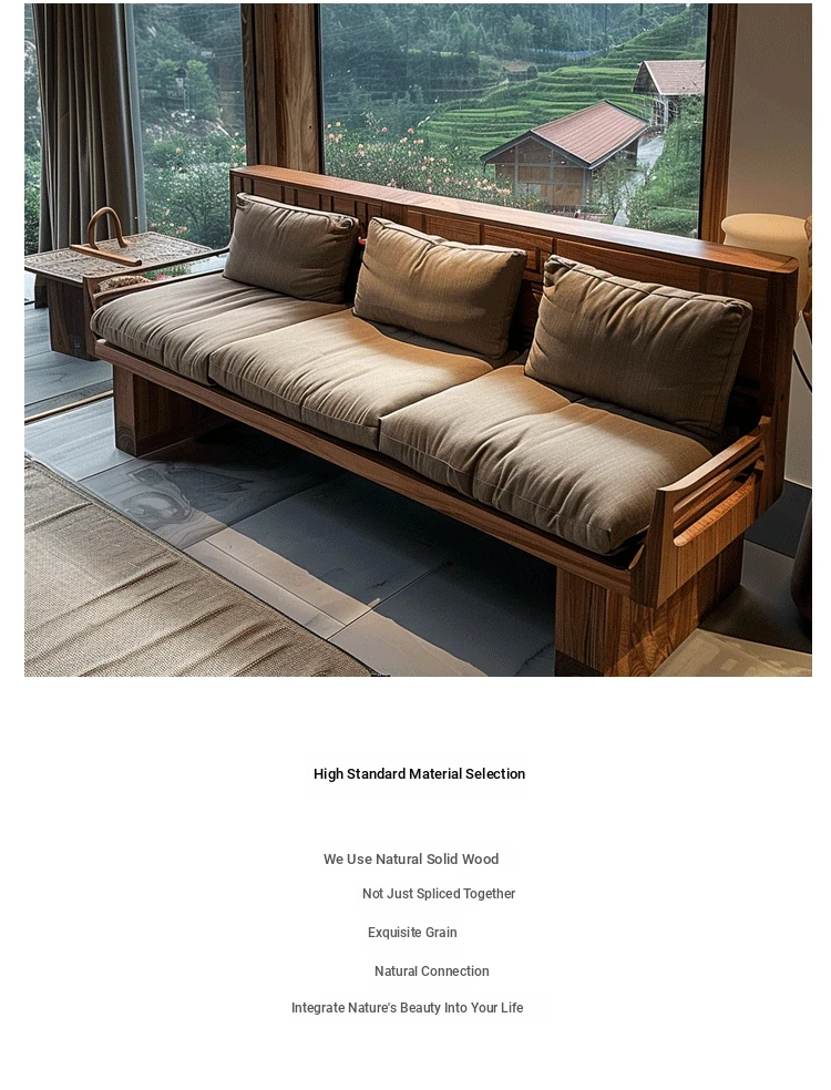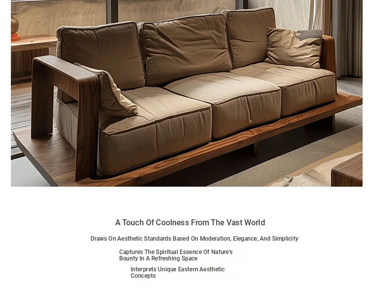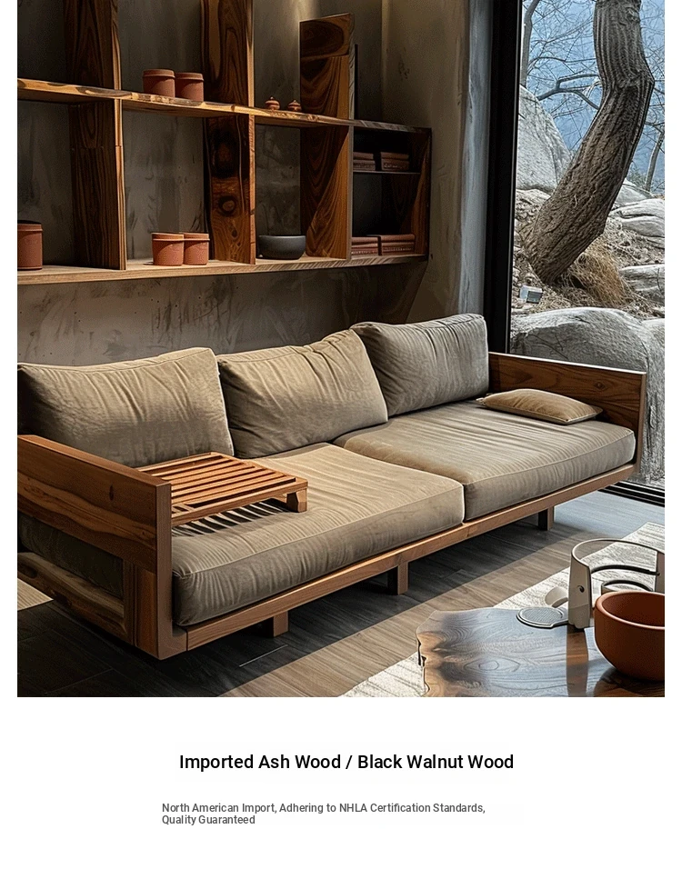 High-End Minimalist Zen Style Sofa in White Ash Wood - Luxurious North American Walnut Solid Wood Furniture for Your Living Room