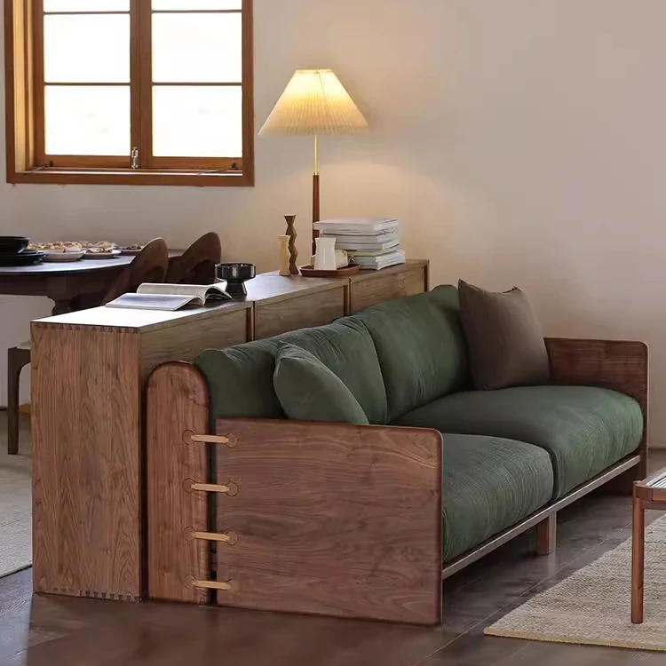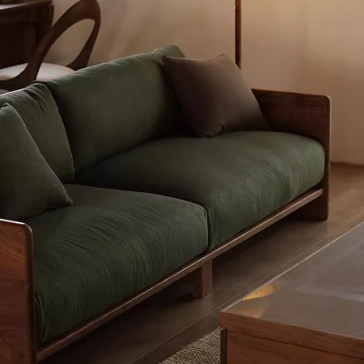 High-End New Chinese Style Ash Wood Sofa - Luxurious Zen Home Living Room Furniture with North American Walnut Solid Wood Construction