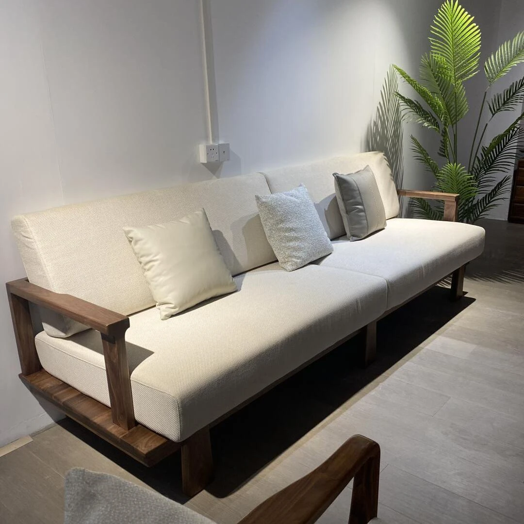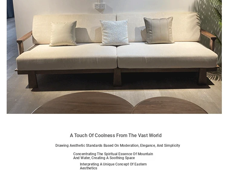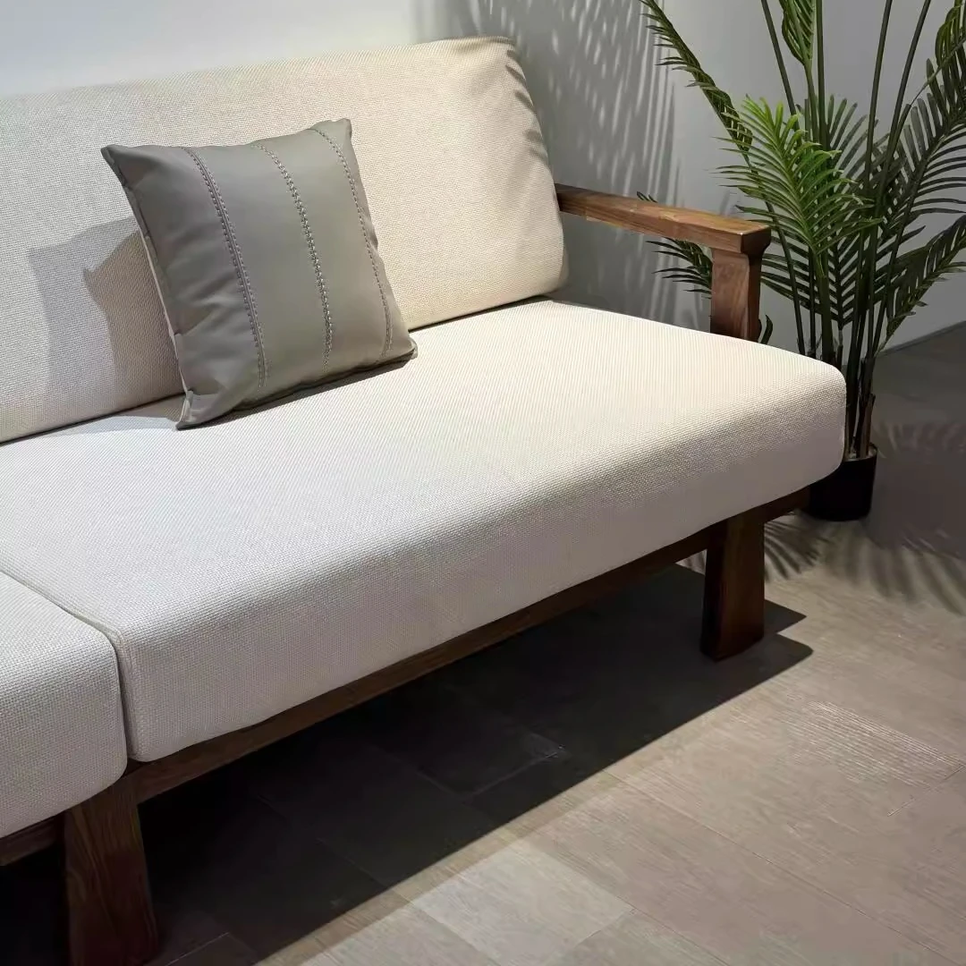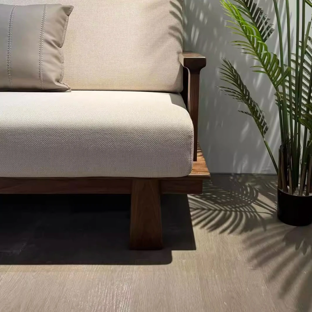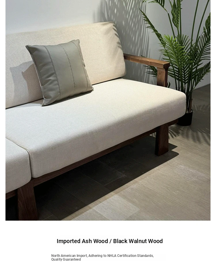 High-End New Chinese Style Ash Wood Sofa - Luxurious Zen Home Living Room Furniture with North American Walnut Solid Wood Design