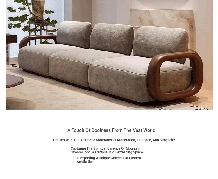 High-End Zen Style Sofa in White Ash Wood - Luxury Home Living Room Furniture with North American Black Walnut Solid Wood, Perfect for Modern Aesthetics and Comfort.