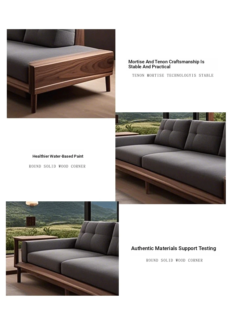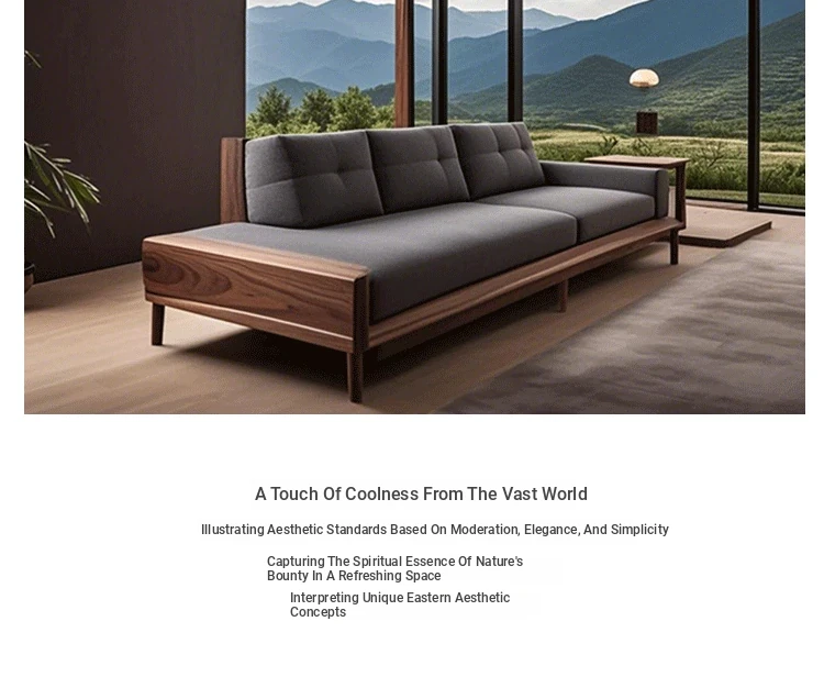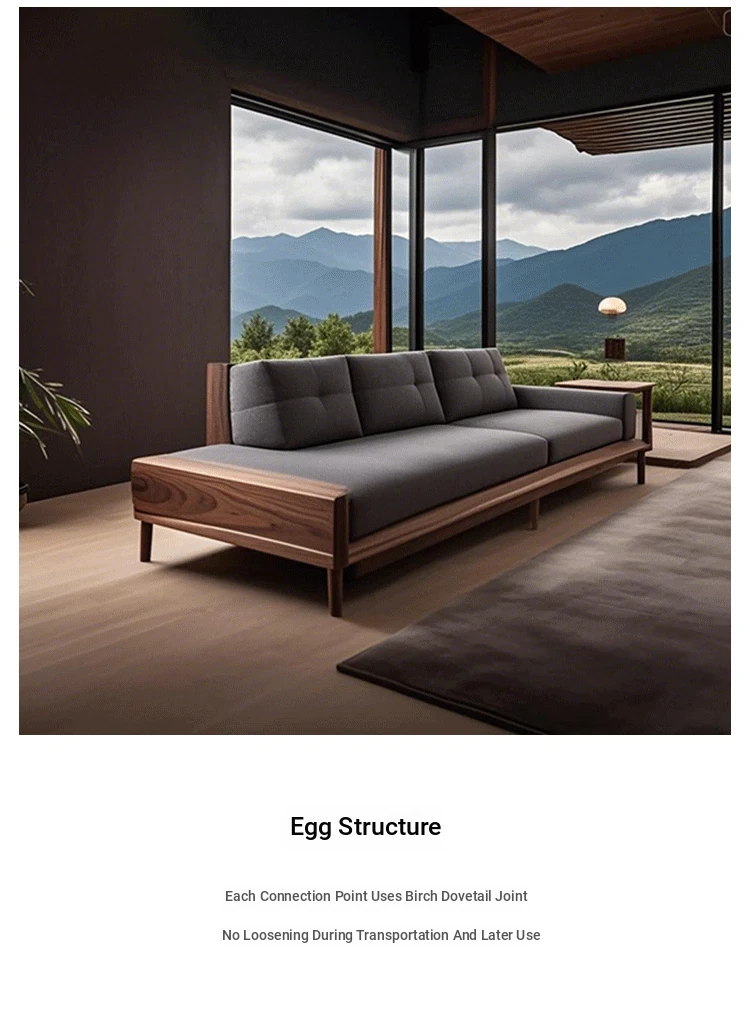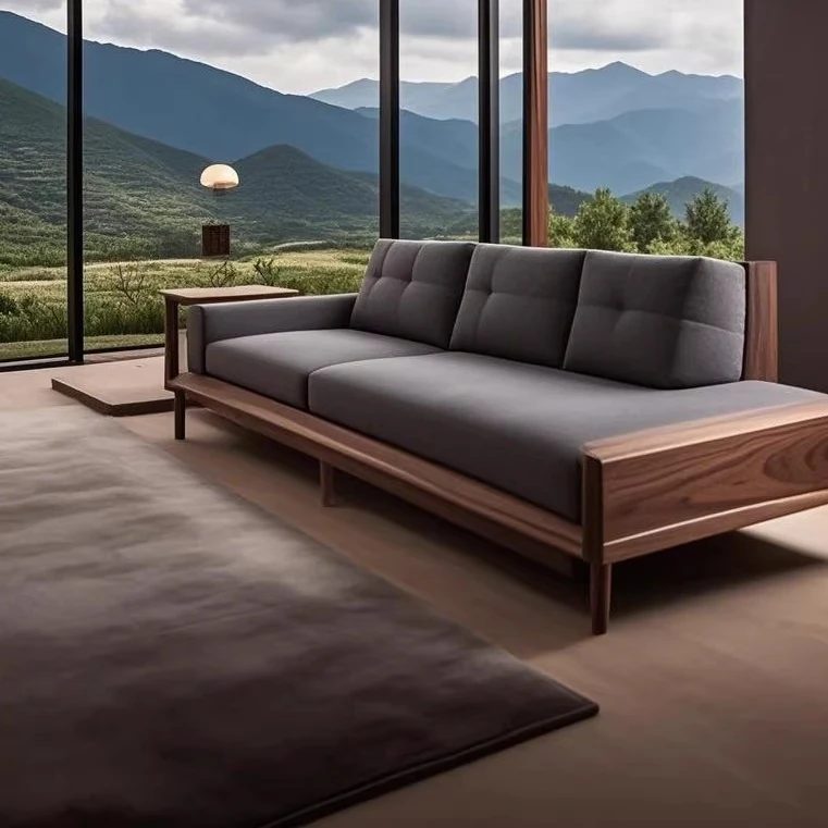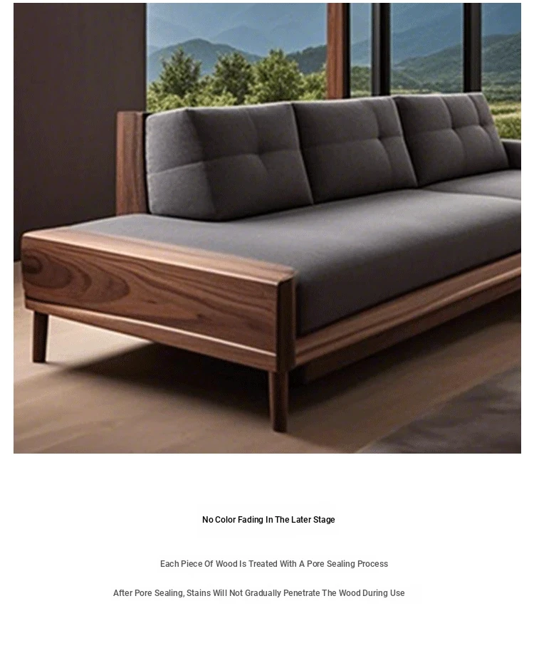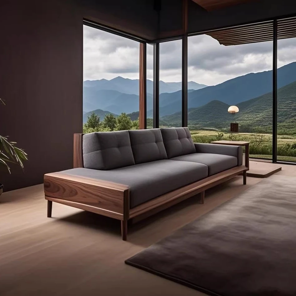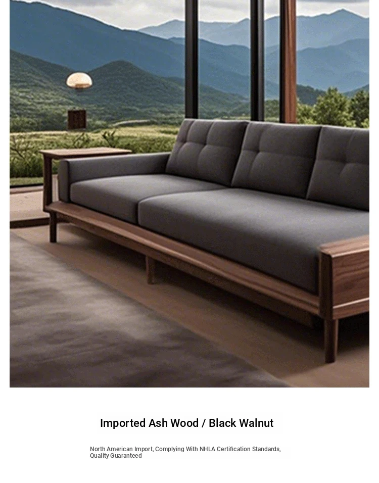 High-End Zen Style White Ash Wood Sofa - Luxurious and Elegant Living Room Furniture Crafted from North American Black Walnut for a Sophisticated Touch in Your Home