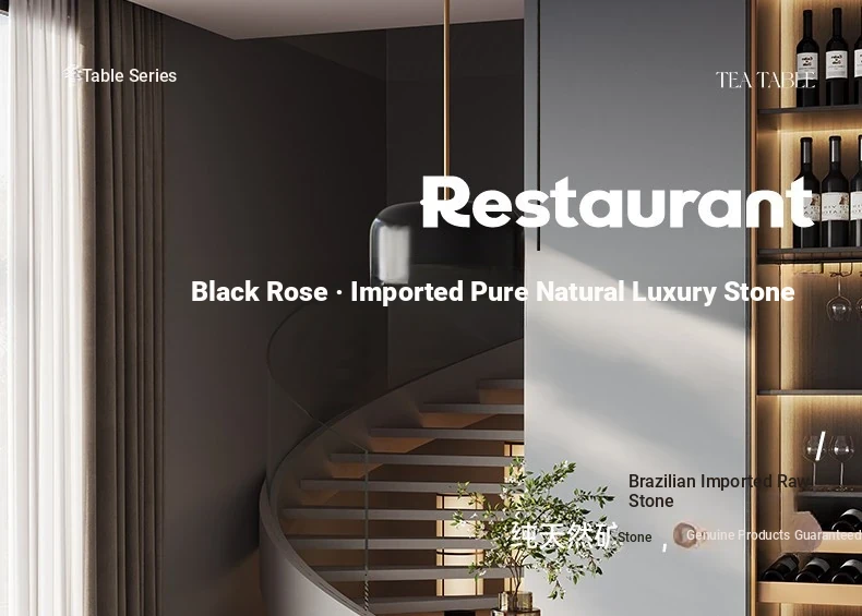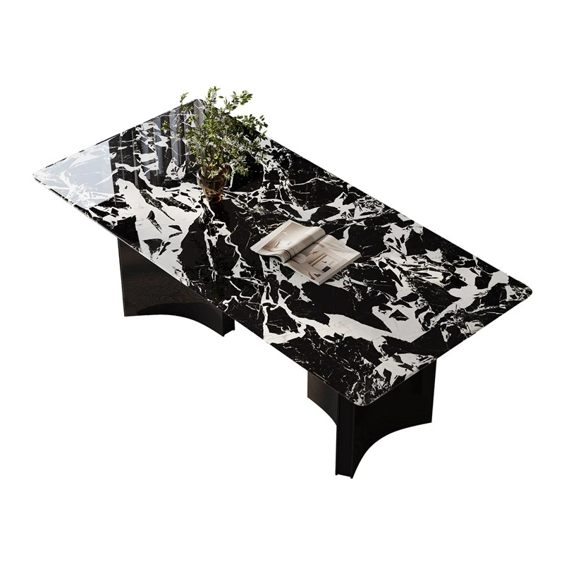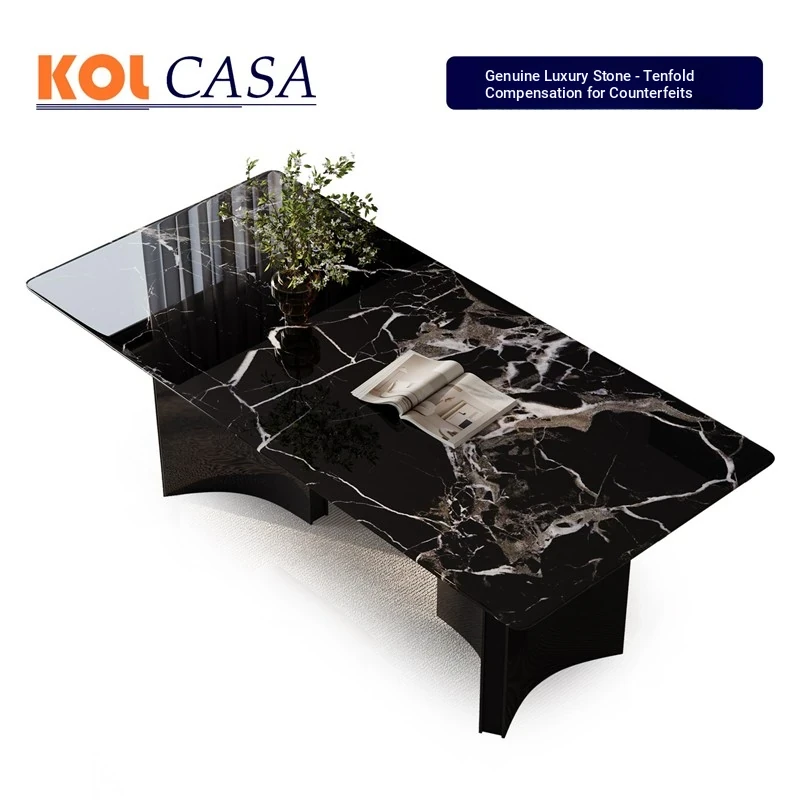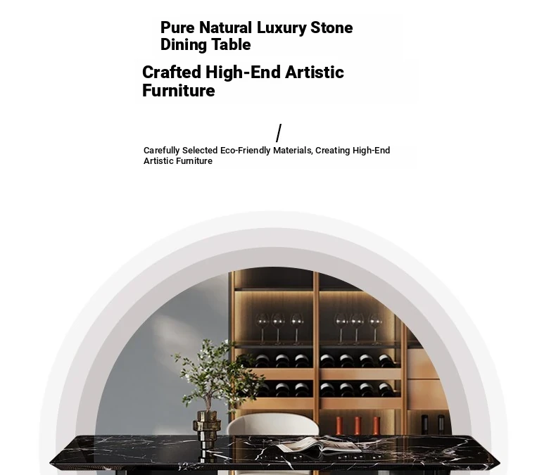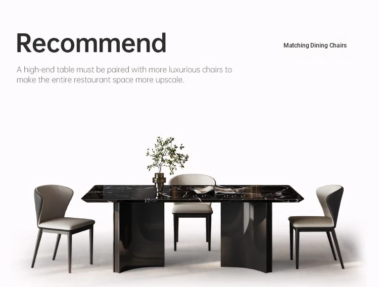 Black rose natural luxury stone dining table + ecological leather dining chair * 8.
