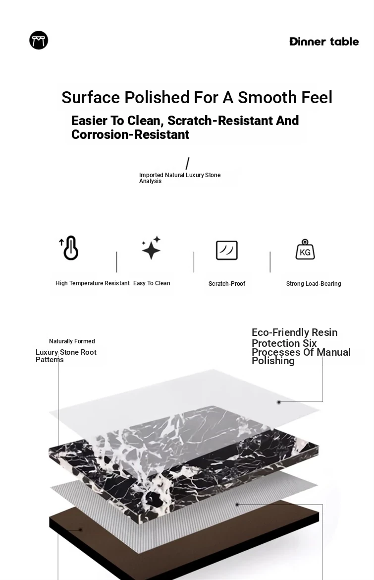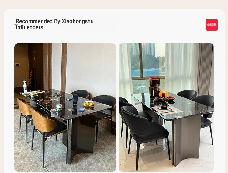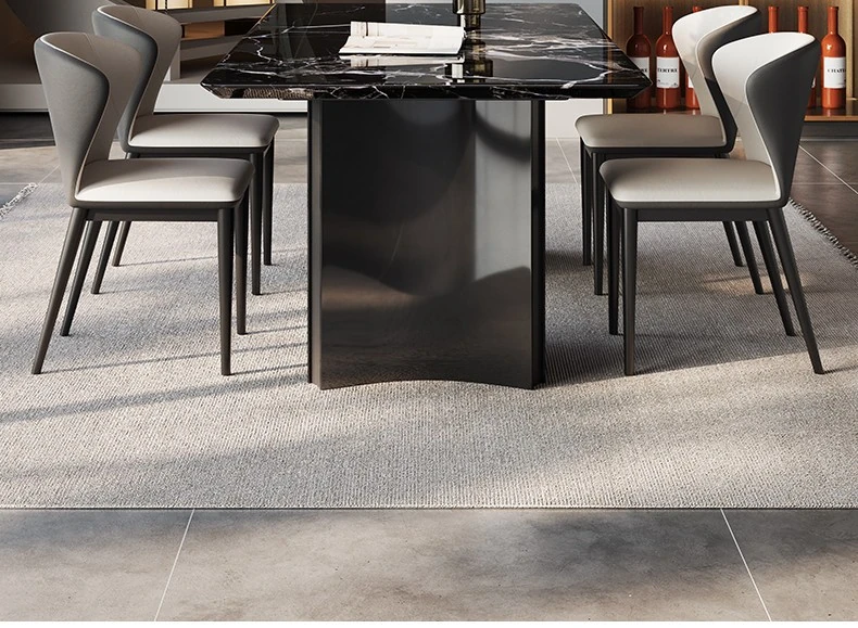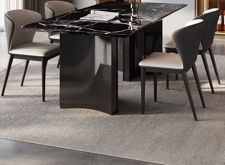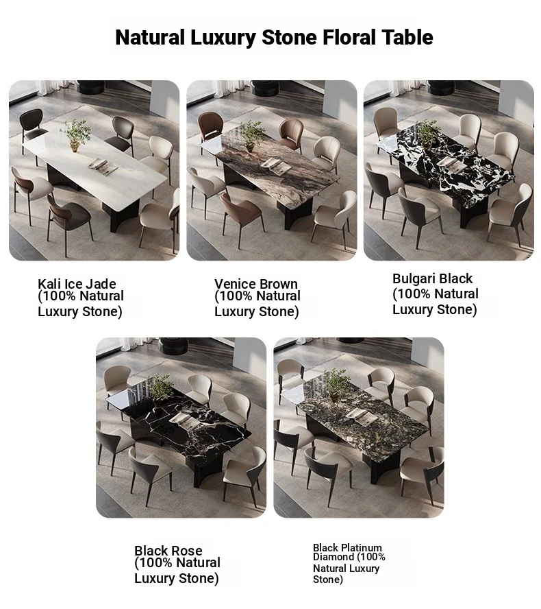 Black Rose Natural Luxury Stone Dining Table + Ecological Leather Dining Chair * 6