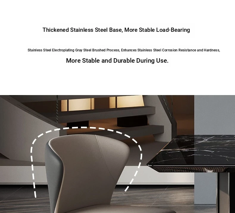 Black Platinum Diamond Luxury Stone Dining Table + Ecological Leather Dining Chair * 8