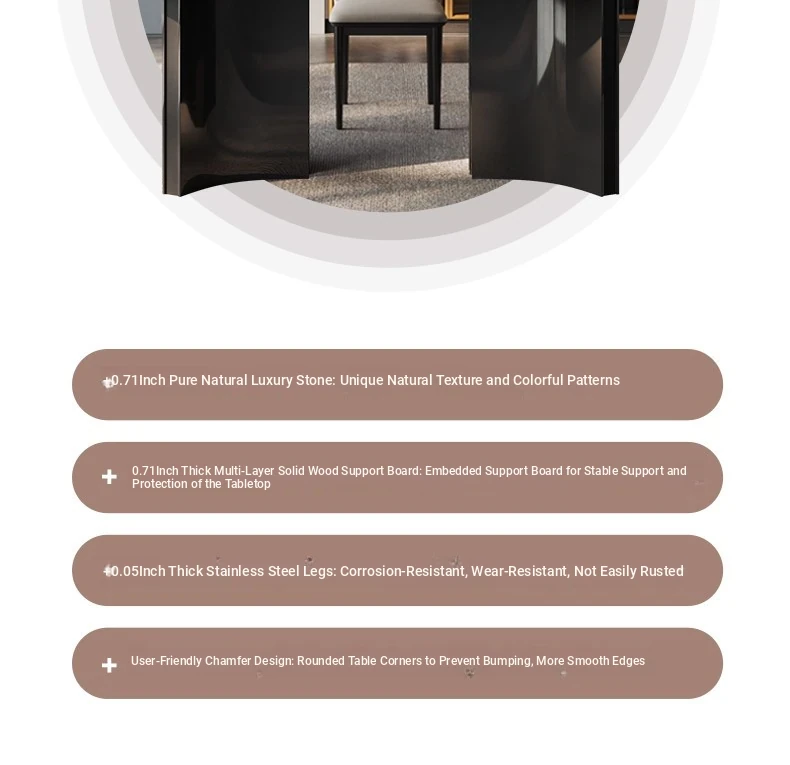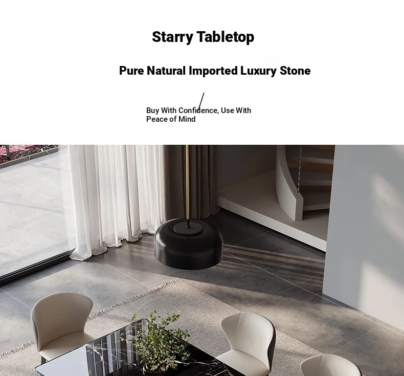 Black Rose Natural Luxury Stone Dining Table + Ecological Leather Dining Chair * 4
