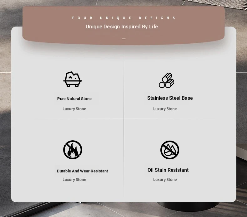 Venice Brown luxury stone dining table + ecological leather dining chair * 4