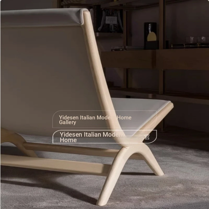 Italian Minimalist Designer Chaise Lounge - Modern Simple Armchair for Living Room & Bedroom, Relaxation Chair, Solid Wood Single Sofa