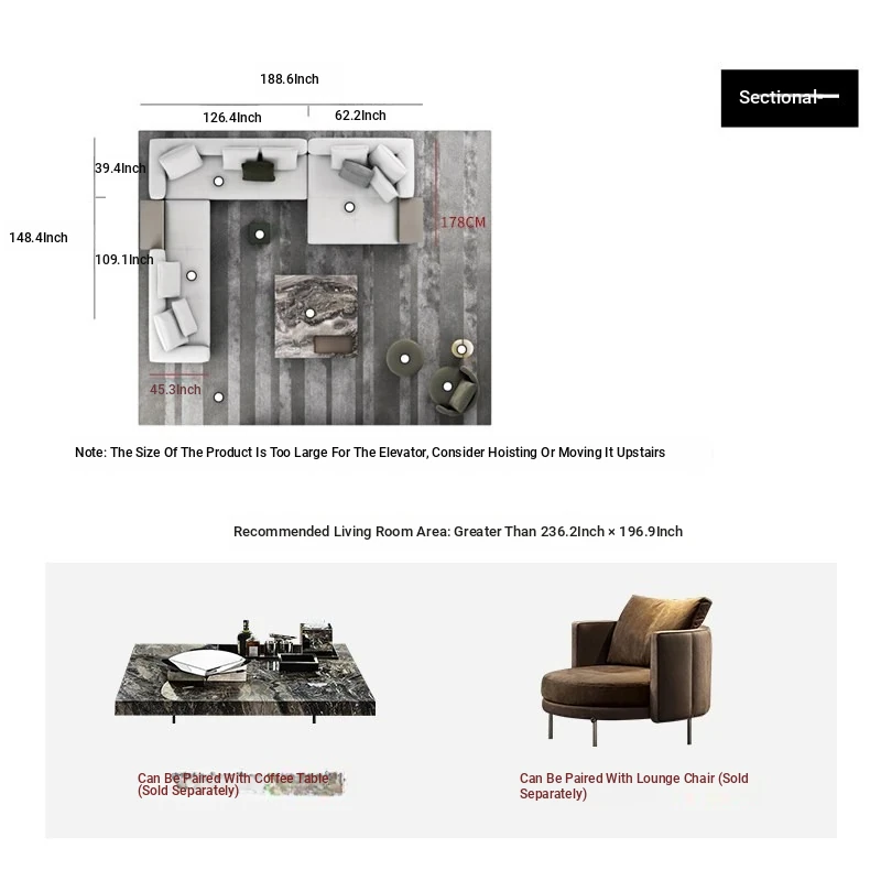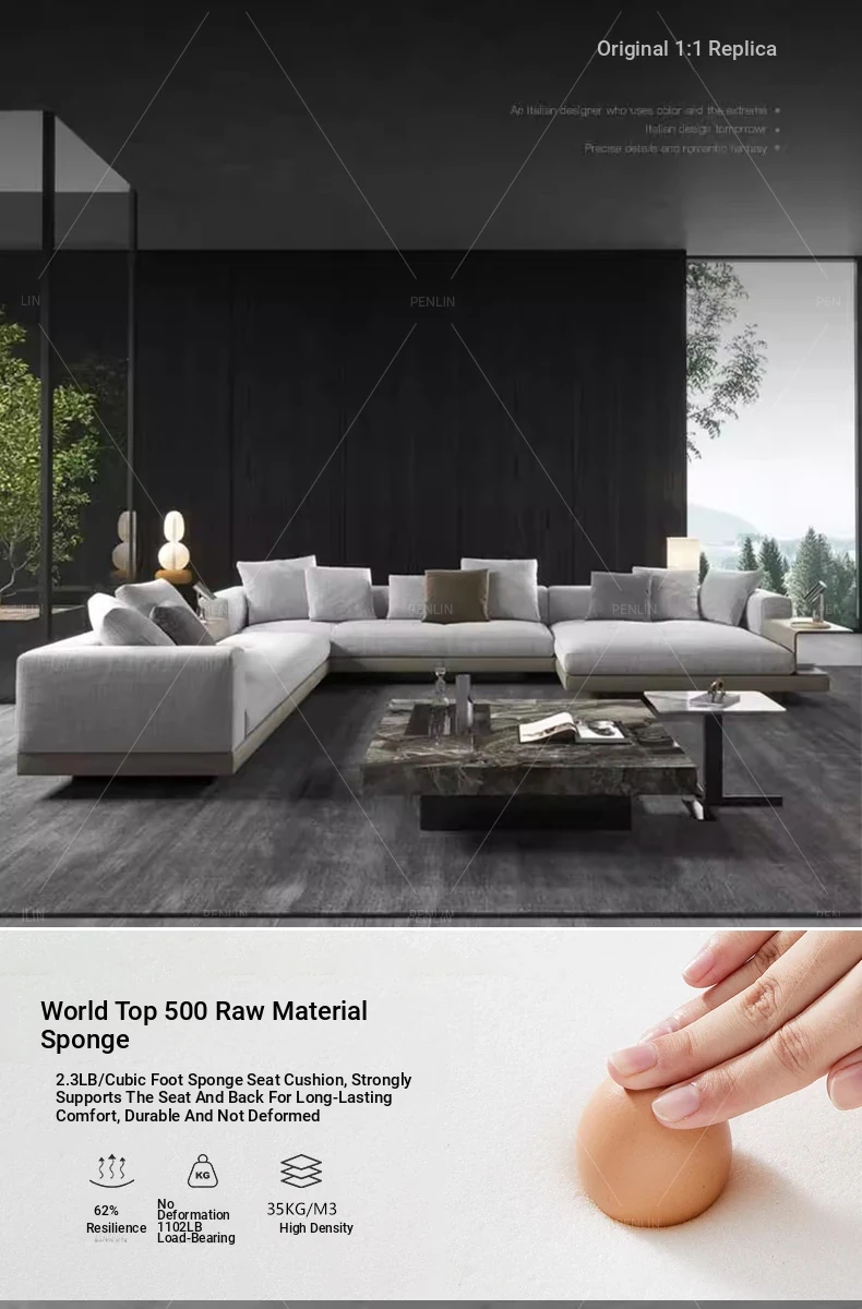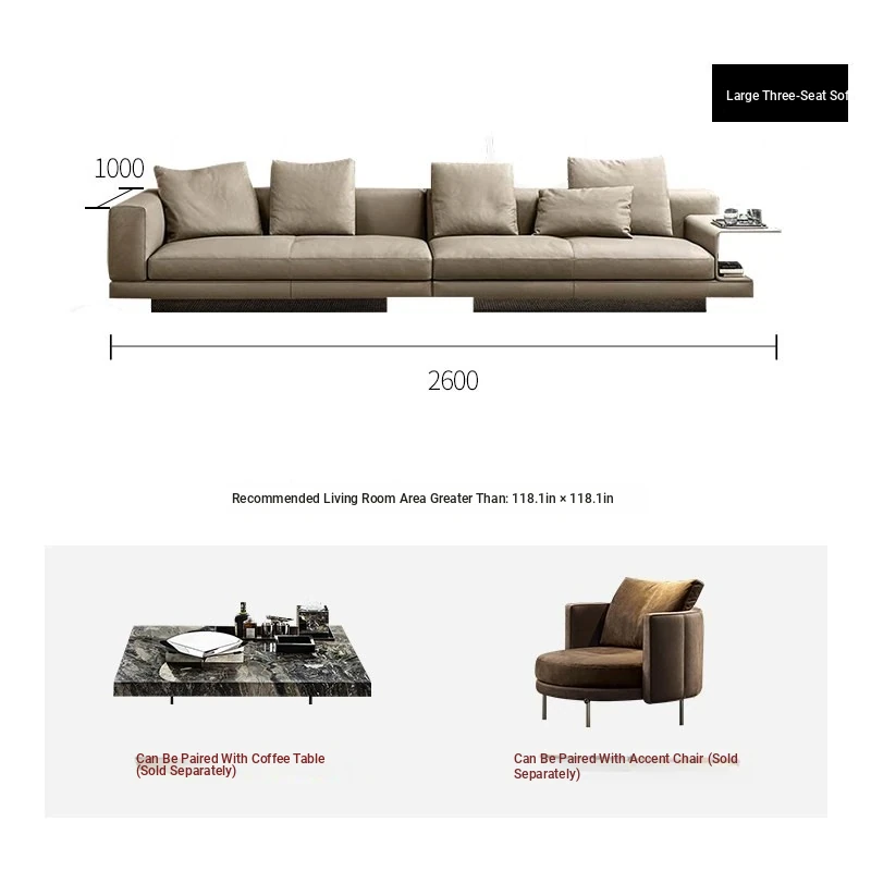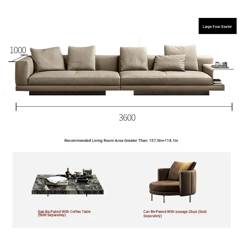 Italian Minimalist Genuine Leather Sofa - Connery Collection for Luxurious Modern Living Rooms, Perfect for Spacious Homes