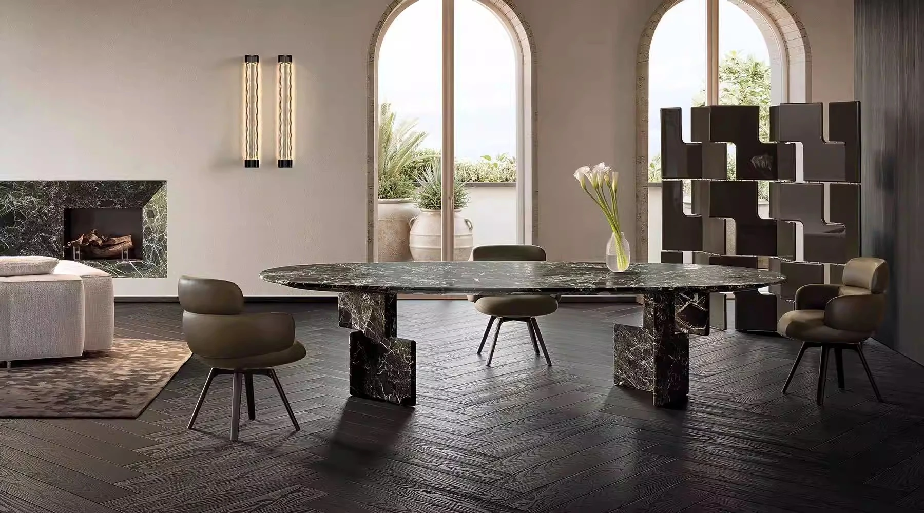 Italian Minimalist Nico Dining Table - Luxurious Kaolin Green Marble, Elegant High-End Design for Villas and Spacious Living Areas, Perfect for Sophisticated Dining Experiences