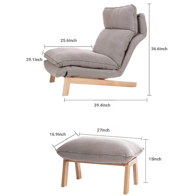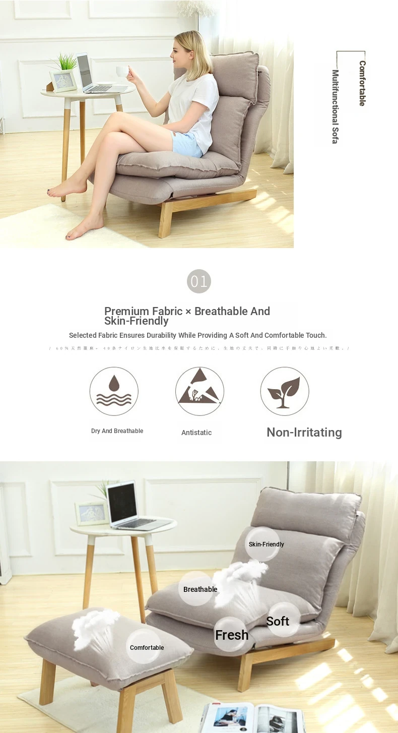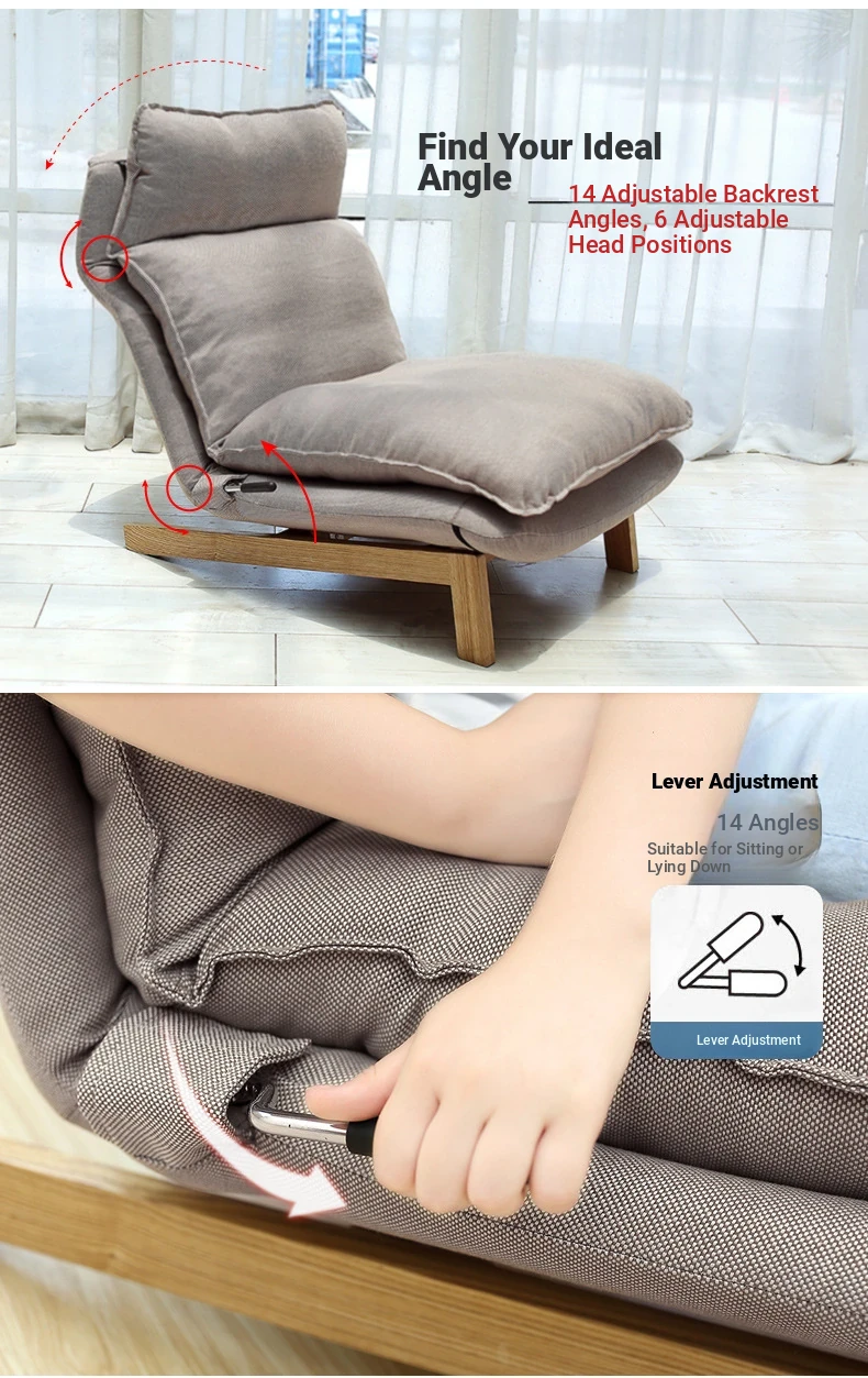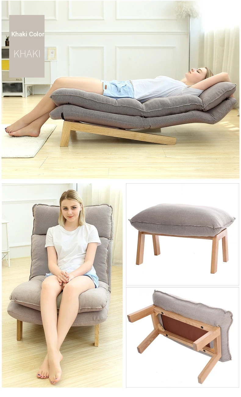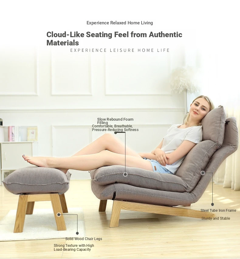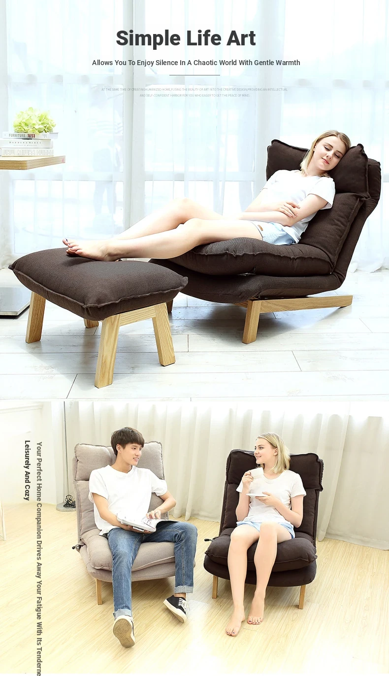 Japanese Style Lazy Sofa Chair - Adjustable Fabric Recliner for Living Room and Bedroom with Footrest - Perfect for Relaxation and Comfort