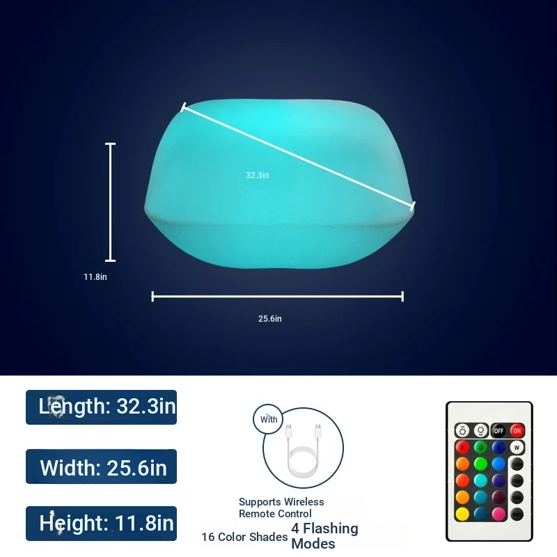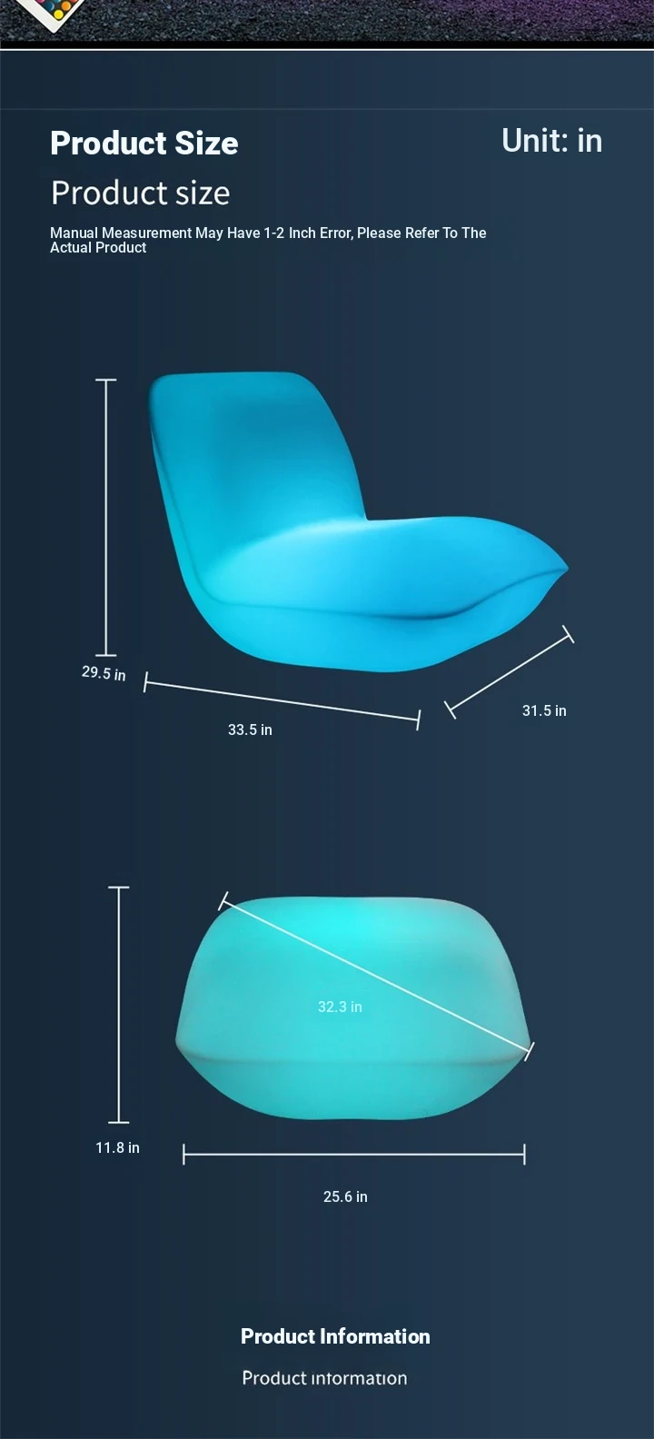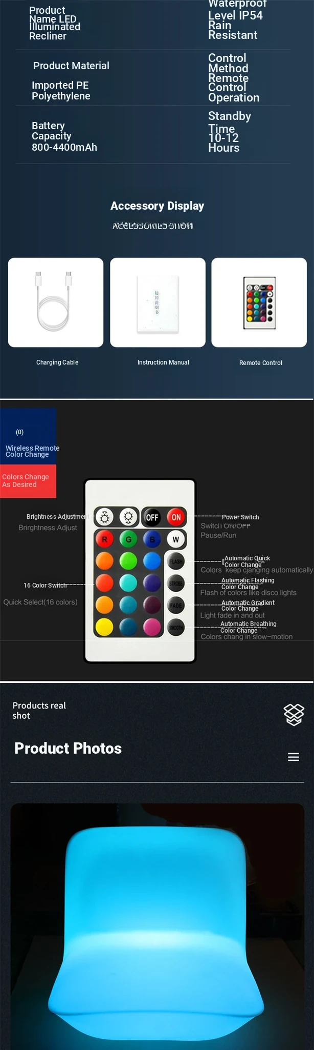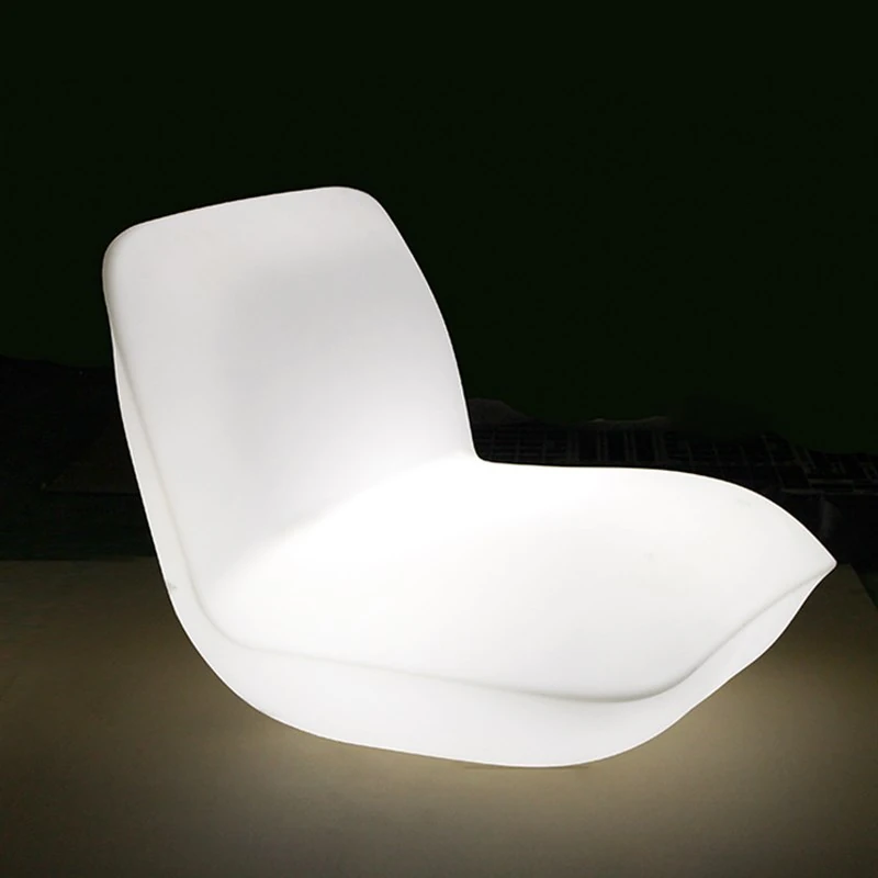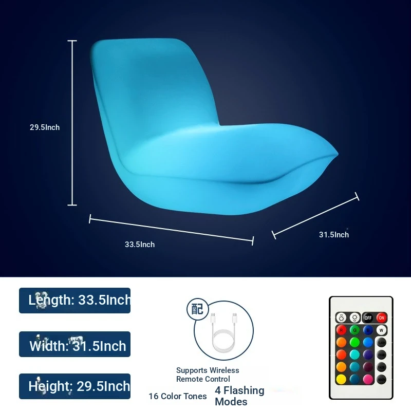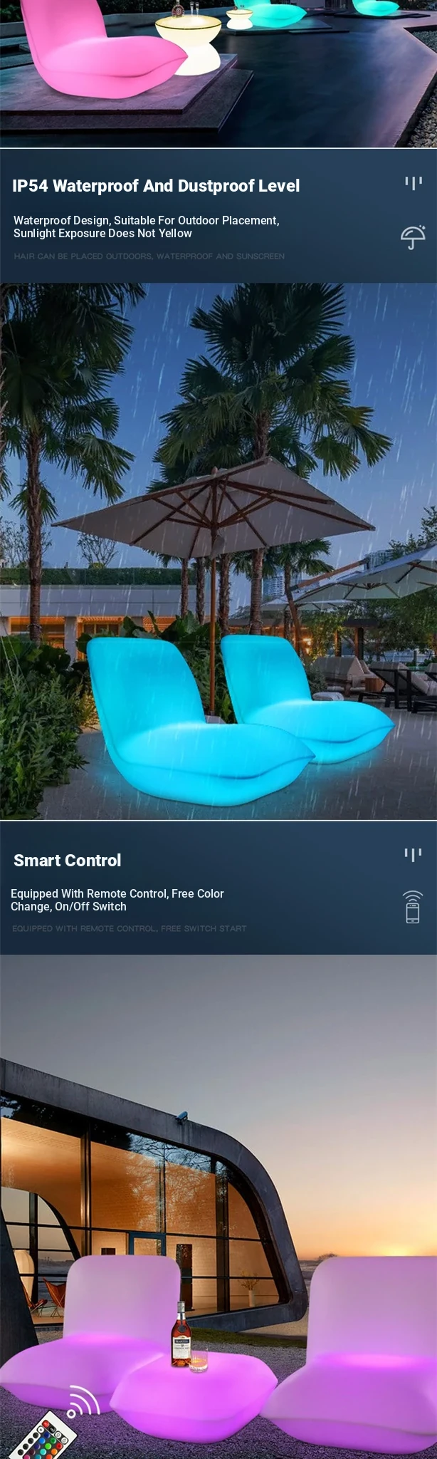 LED Glowing Lounge Chair - Trendy Beach-Style Plastic Sofa with Backrest, Cube Shaped Illuminated Bar Table & Coffee Table for Stunning Atmosphere