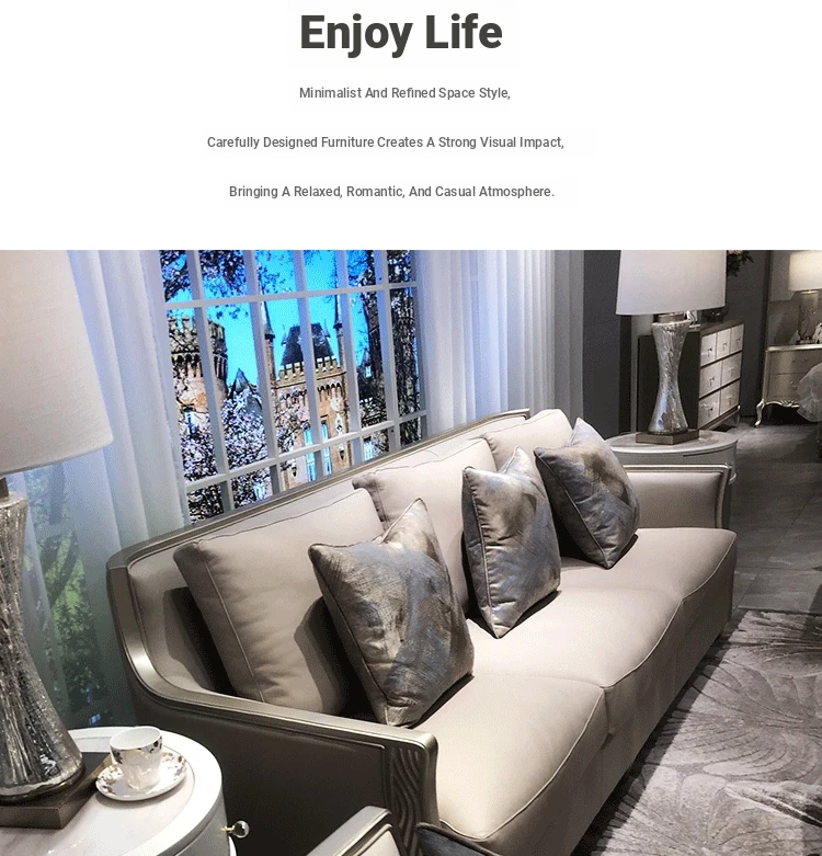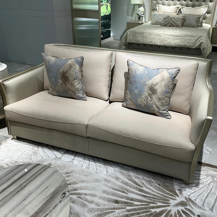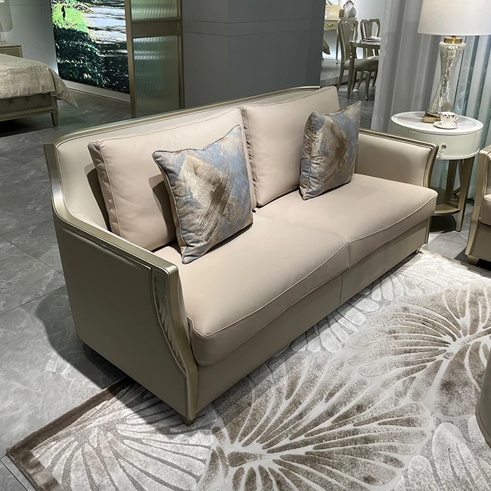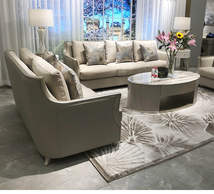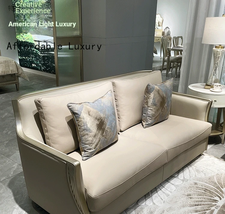 Luxurious American Genuine Leather Sofa Set - Elegant Solid Wood French Style for Living Rooms of All Sizes - High-End 123 Combination for Ultimate Comfort and Style