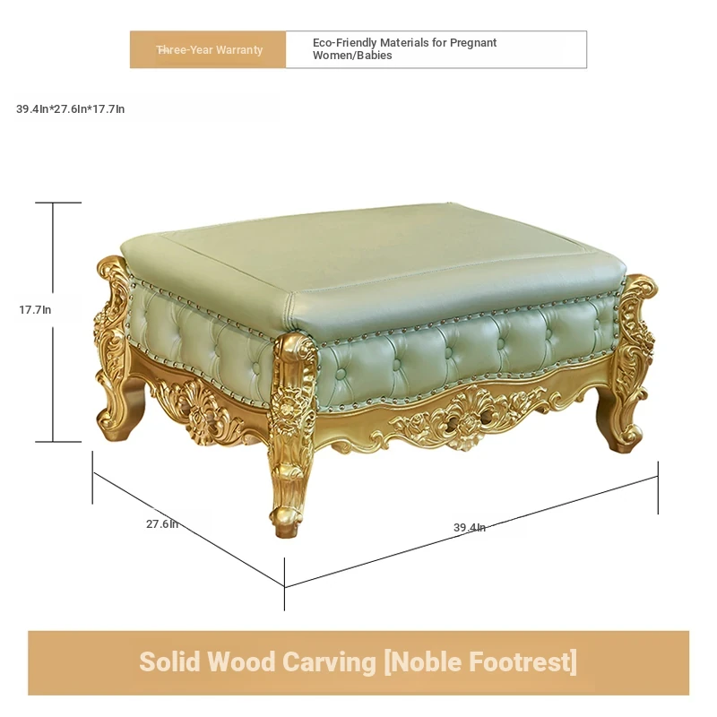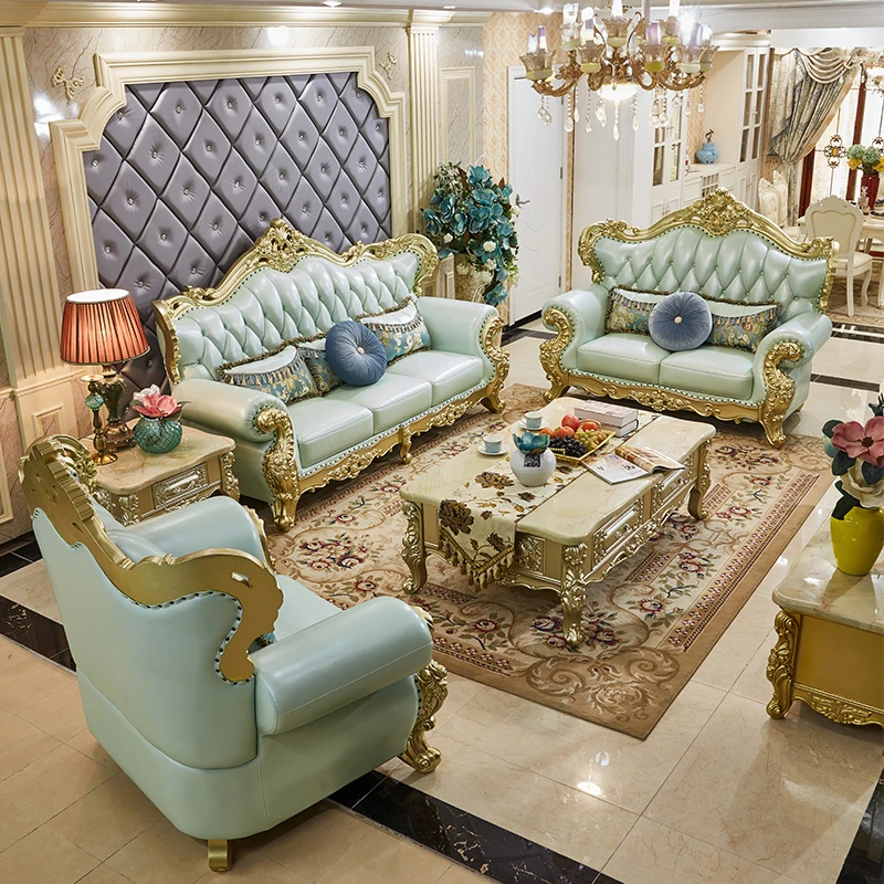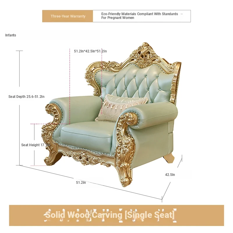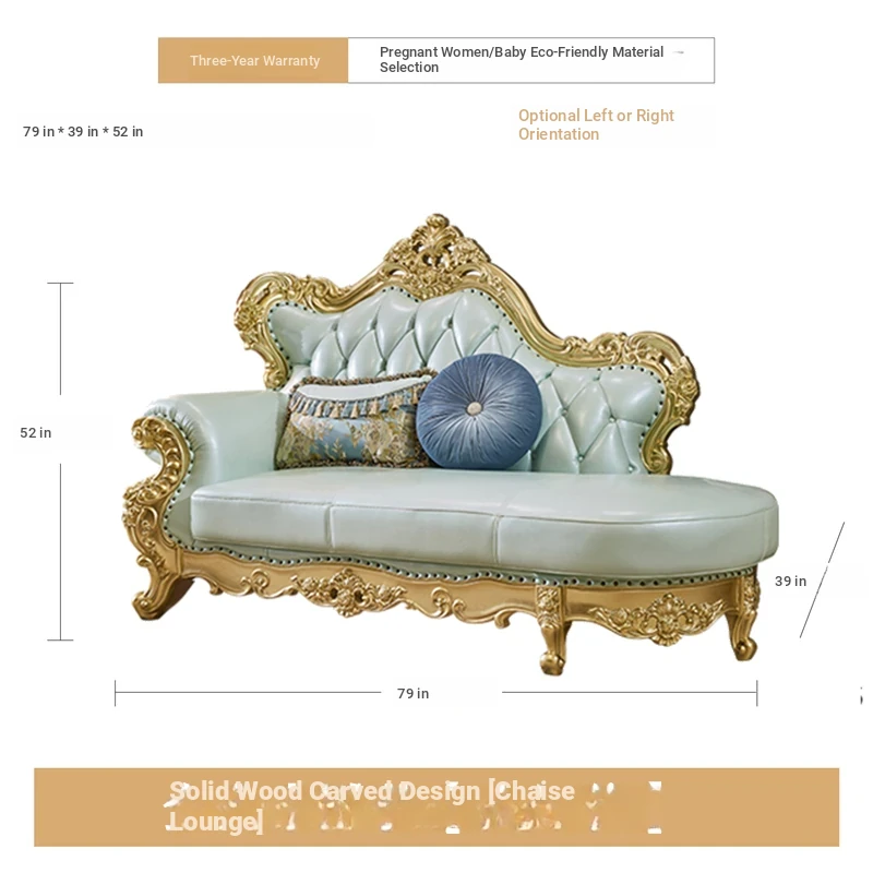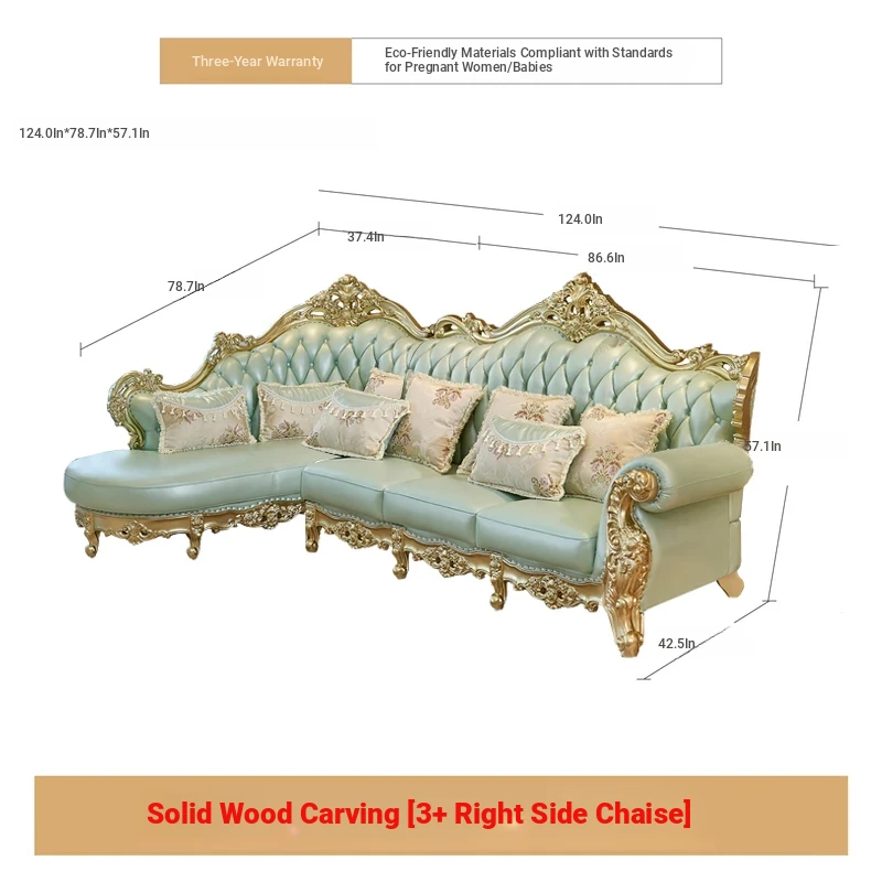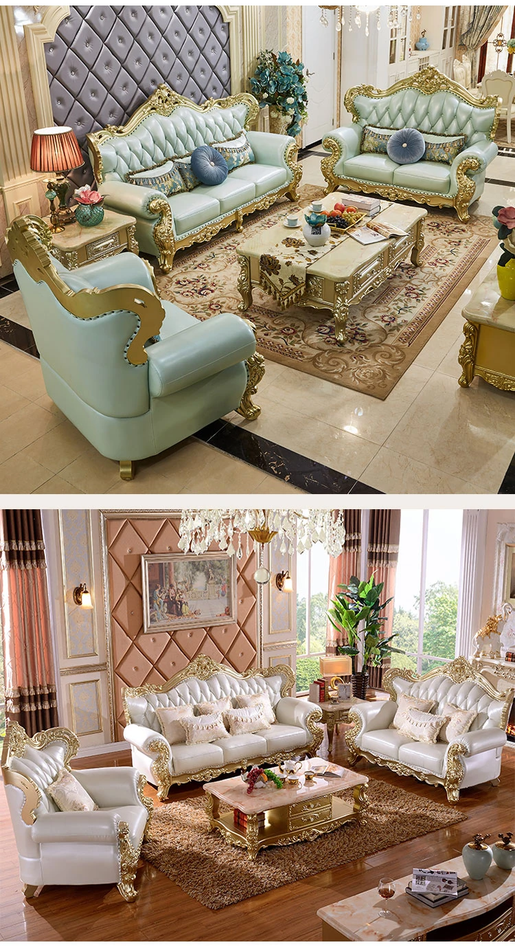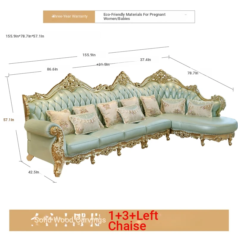 Luxurious European Style Genuine Leather Sofa Set for Large Living Room - Champagne Gold Solid Wood Carved Top Layer Cowhide Corner Sofa for Villa, Perfect for Elegant Interiors