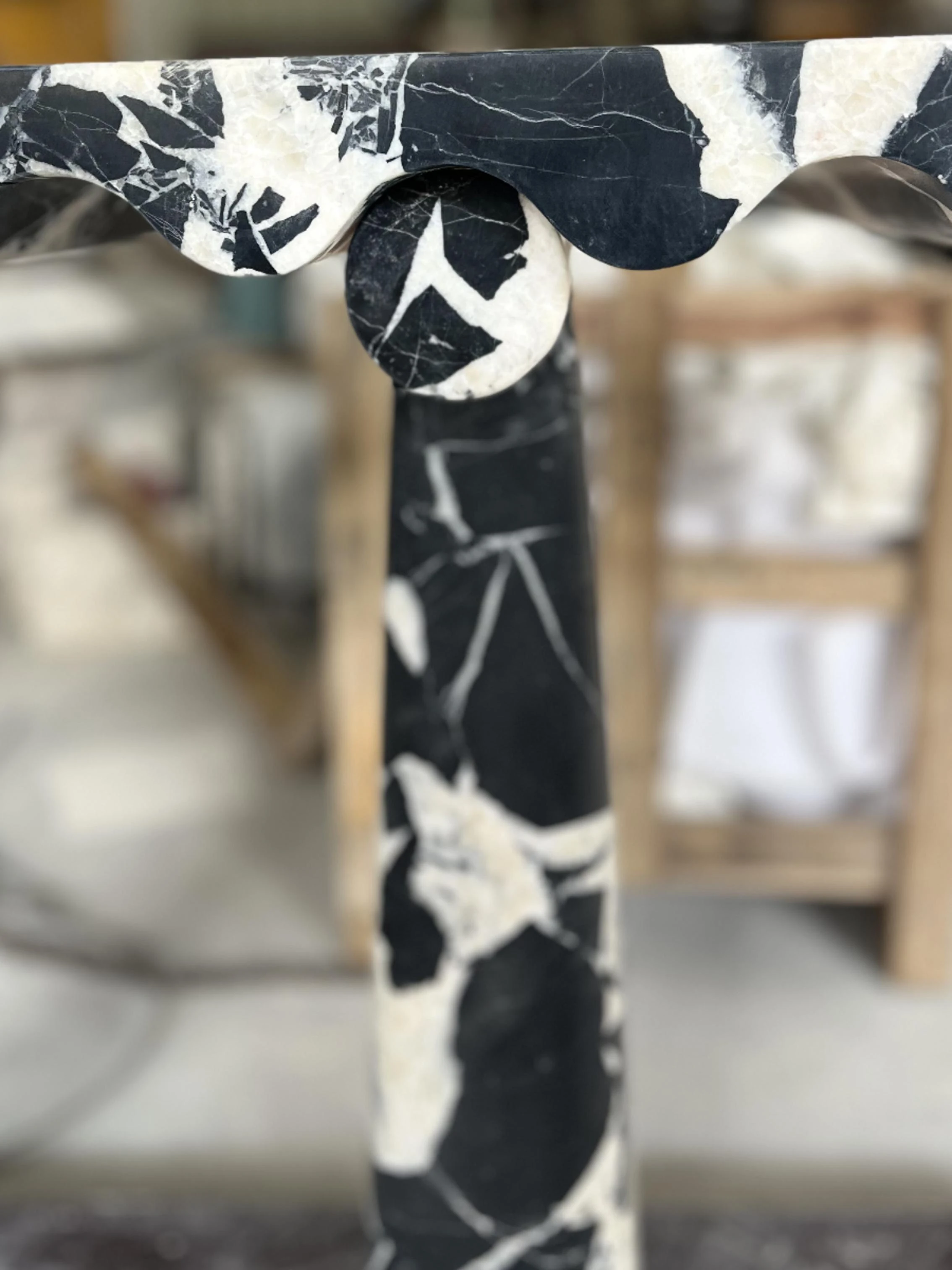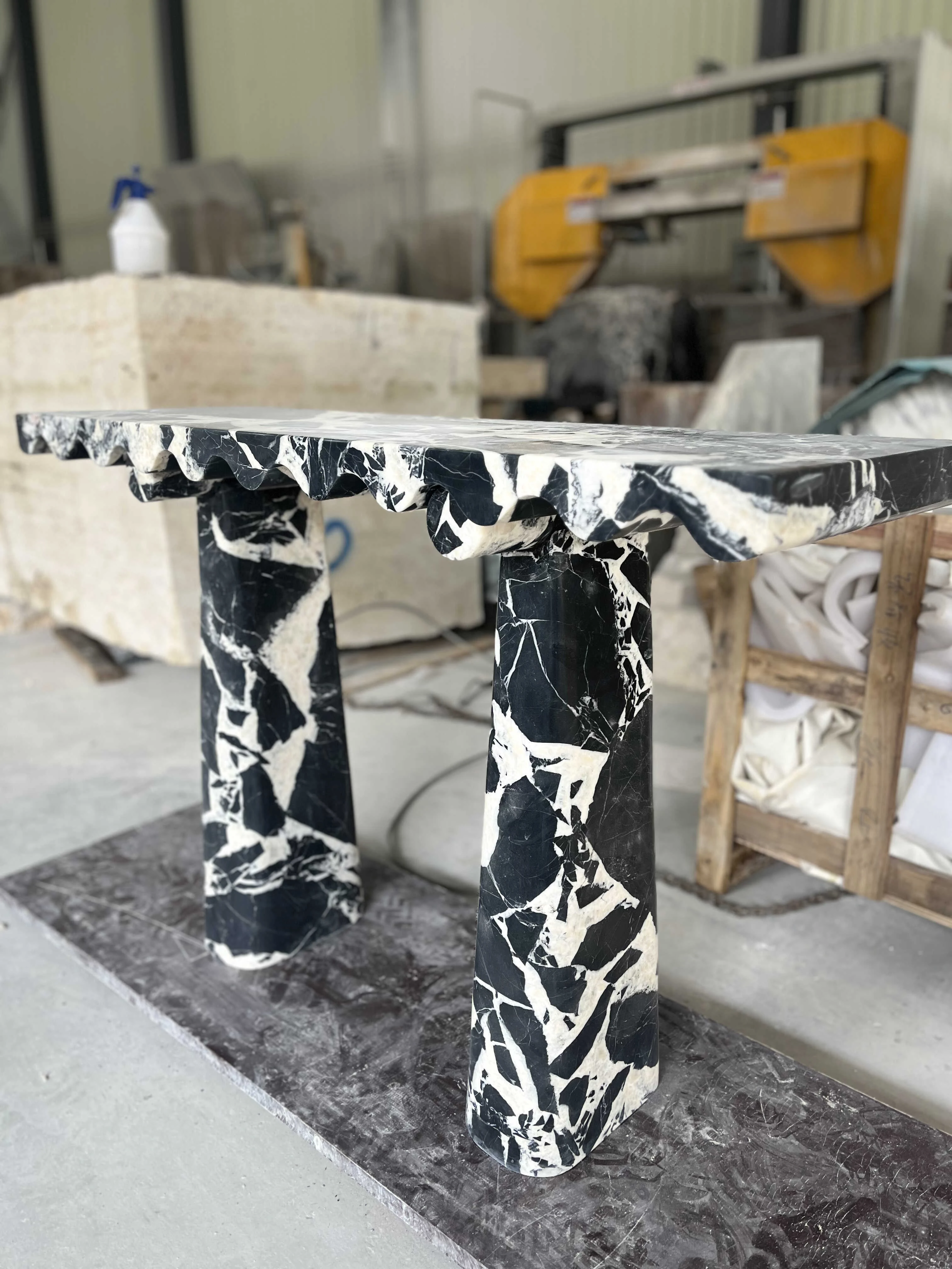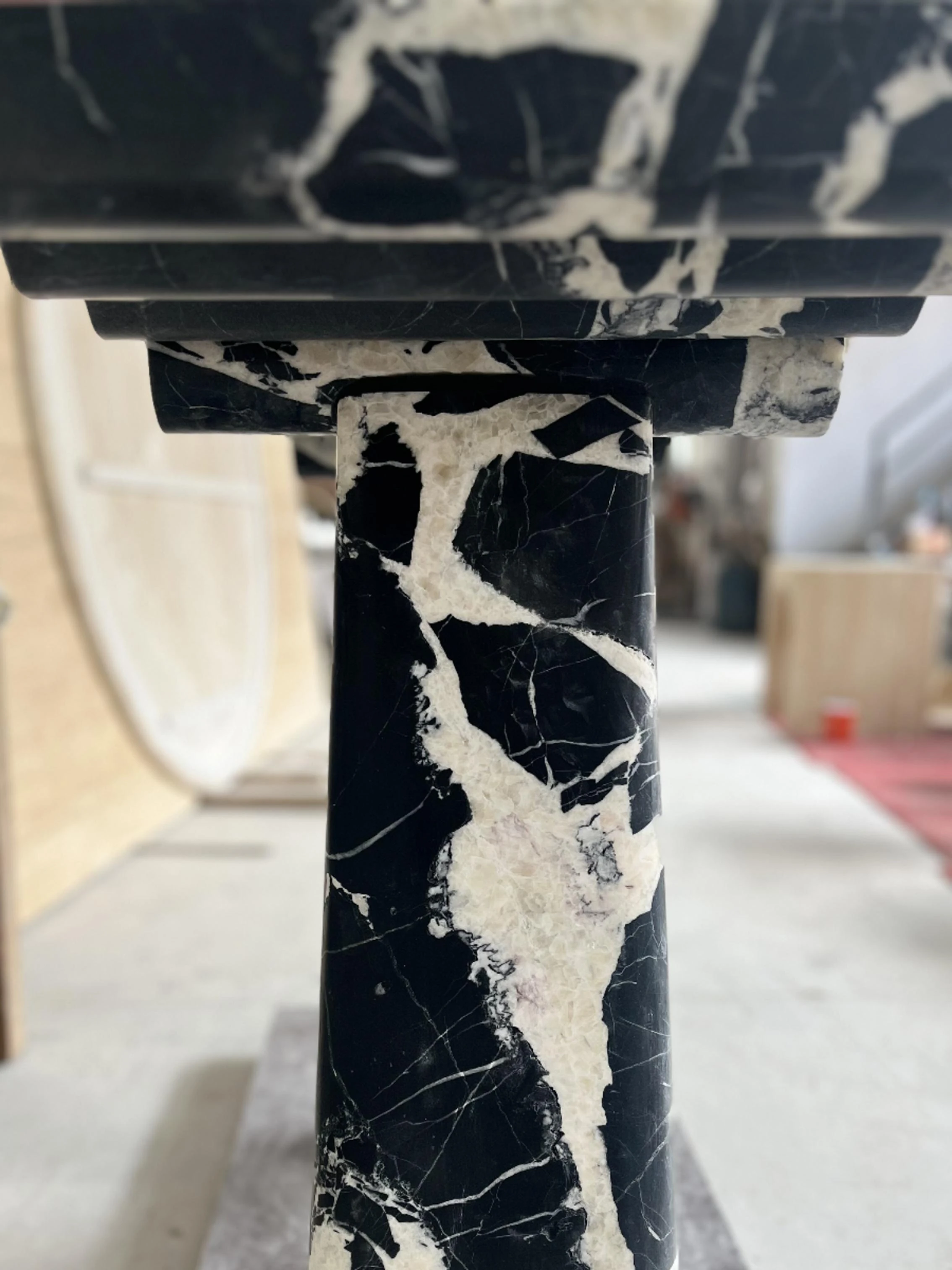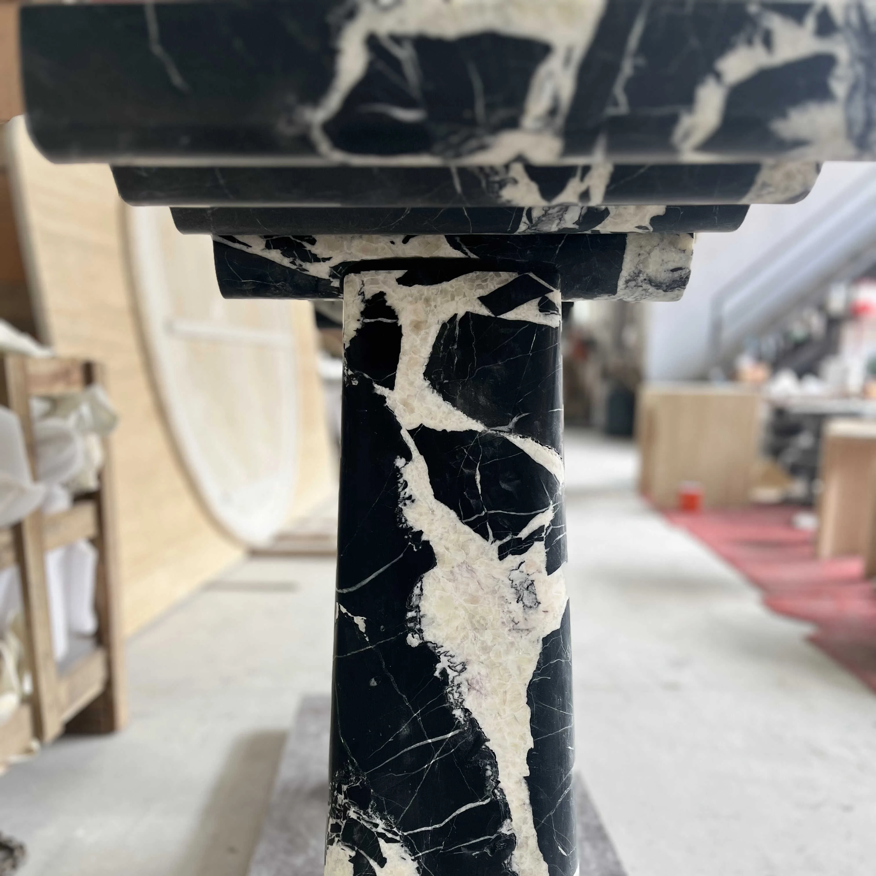 Luxurious French-Style Black Napoleon Marble Side Table - Exquisite Bulgari-Inspired Natural Stone Furniture for Upscale Homes