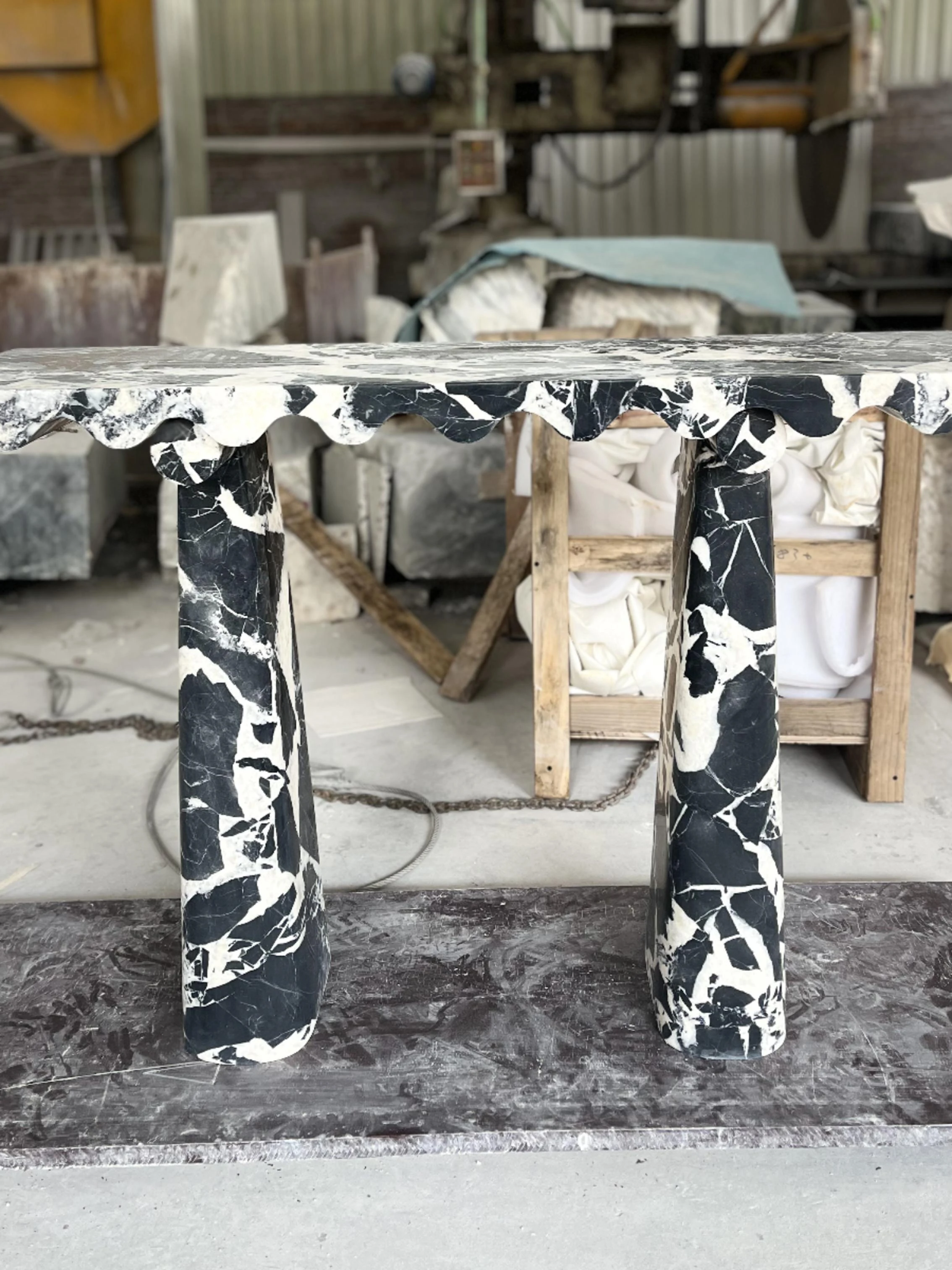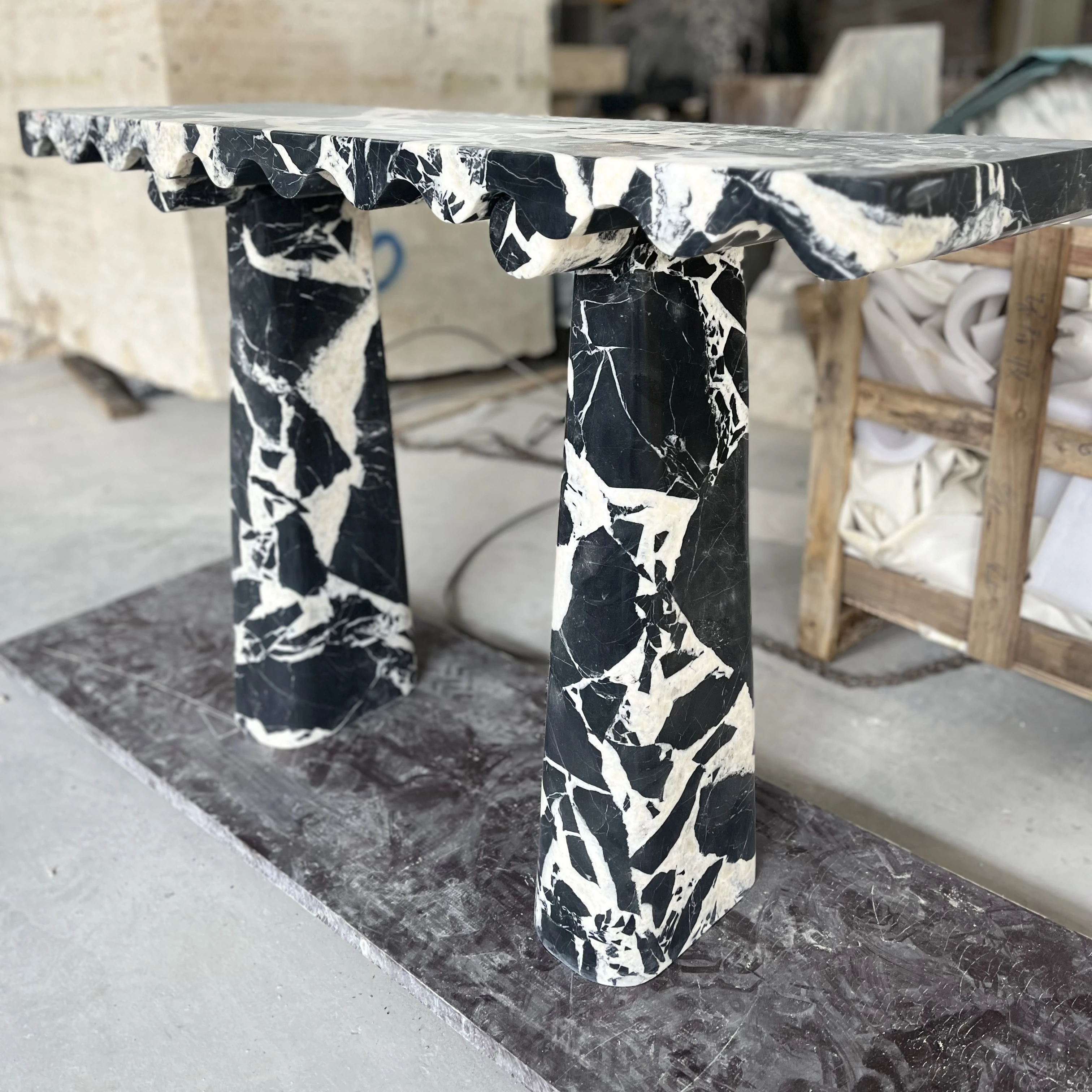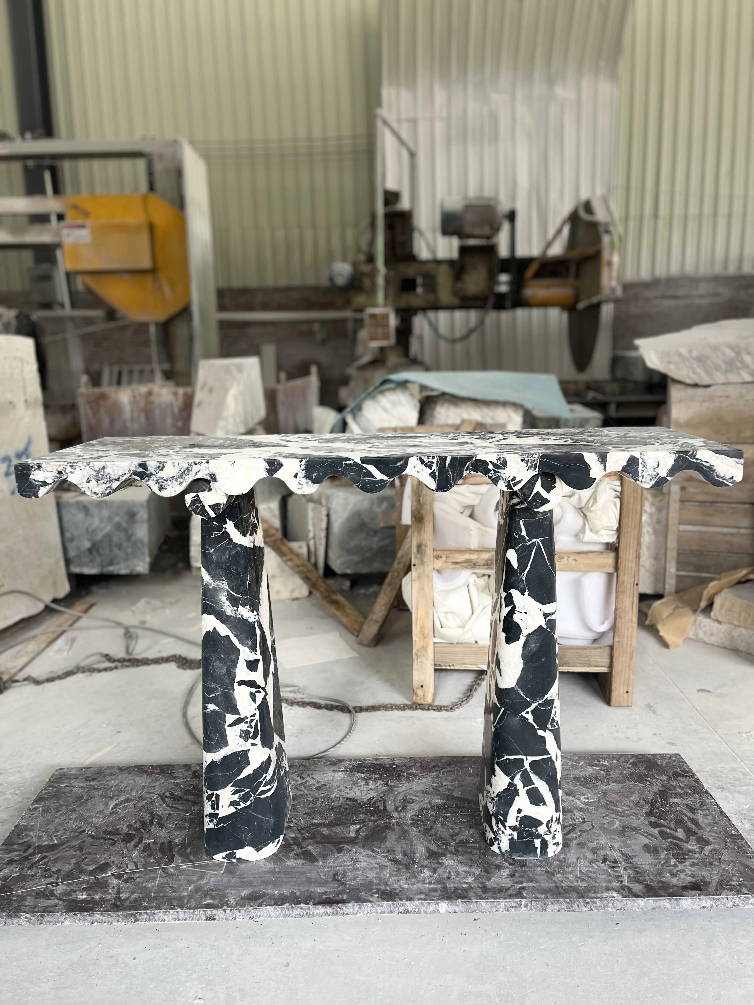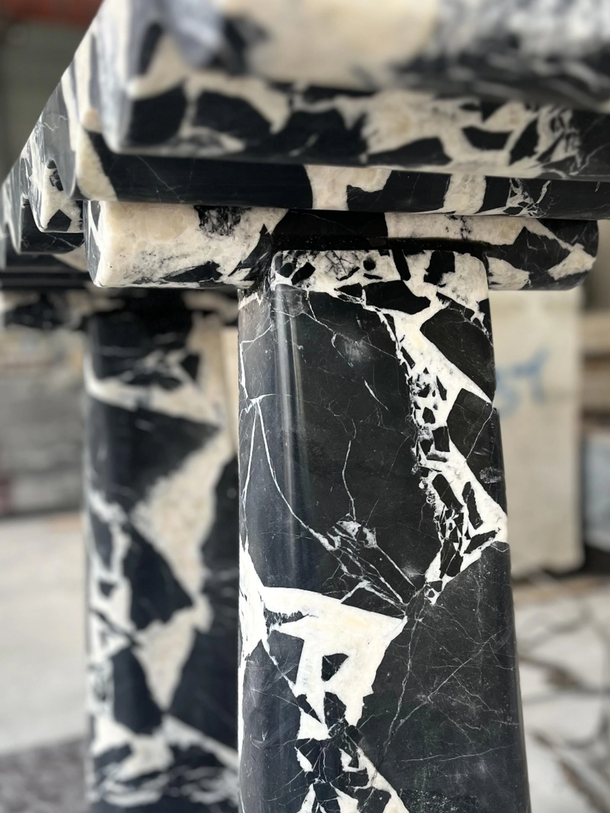 Luxurious French-Style Black Napoleon Marble Side Table - Exquisite Bulgari-Inspired Natural Stone Furniture for Upscale Homes