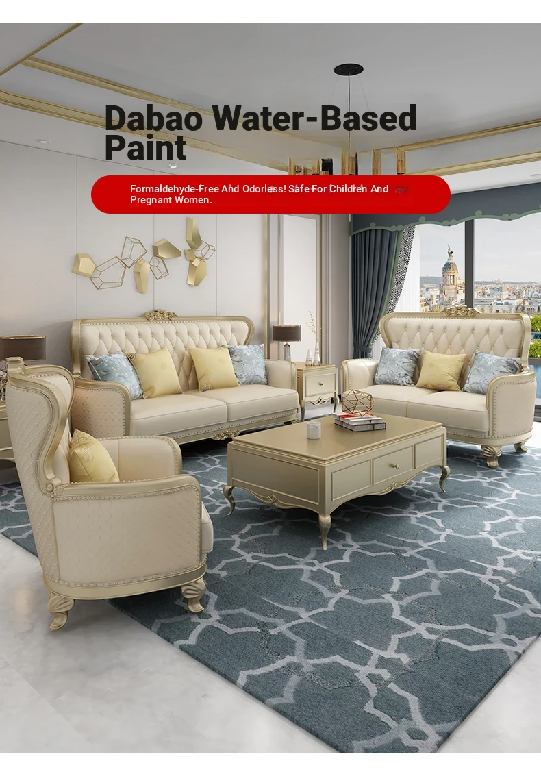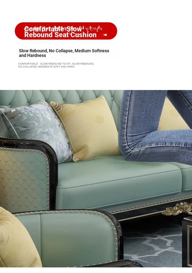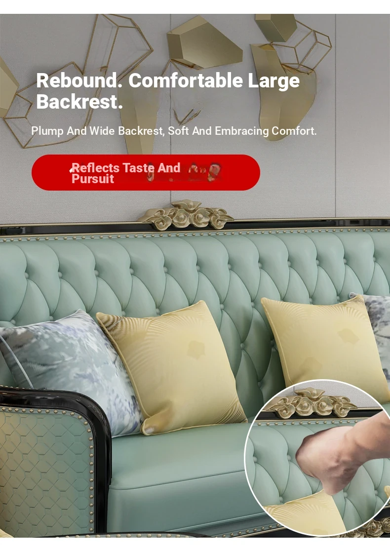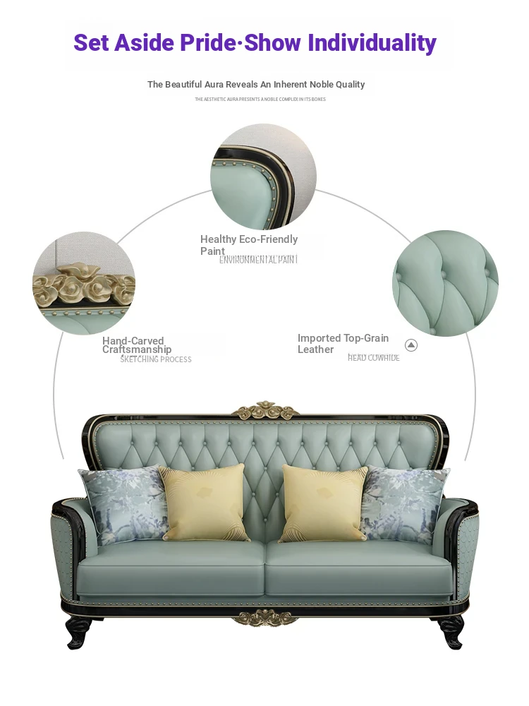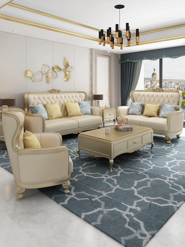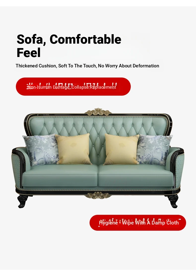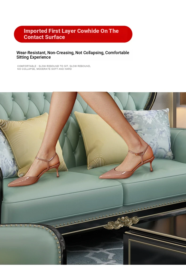 Luxury American Genuine Leather Sofa Set for Modern Villas - Elegant European Style Solid Wood Furniture for Spacious Living Rooms, Perfect for a Chic and Cozy Atmosphere.