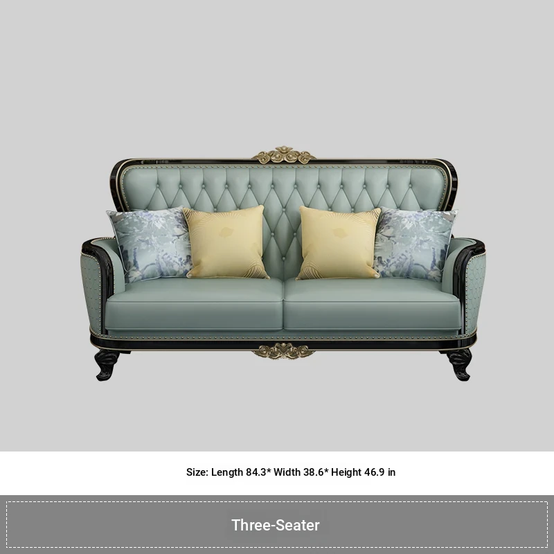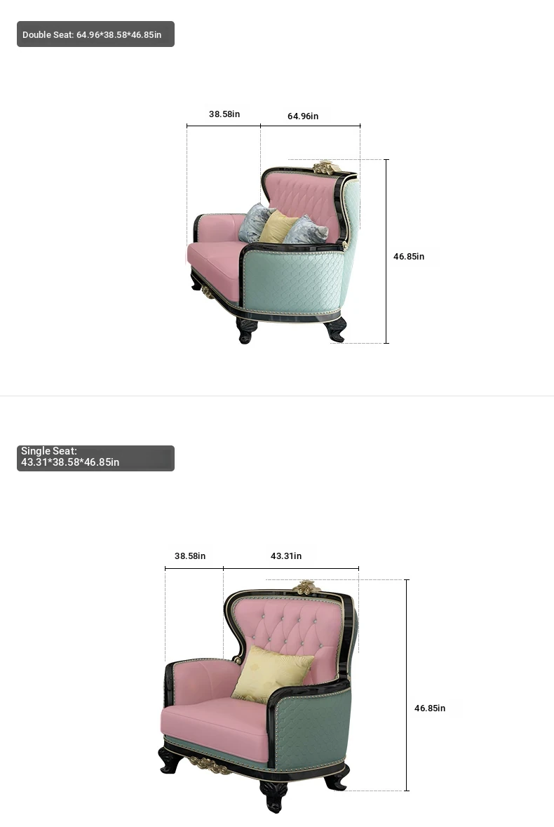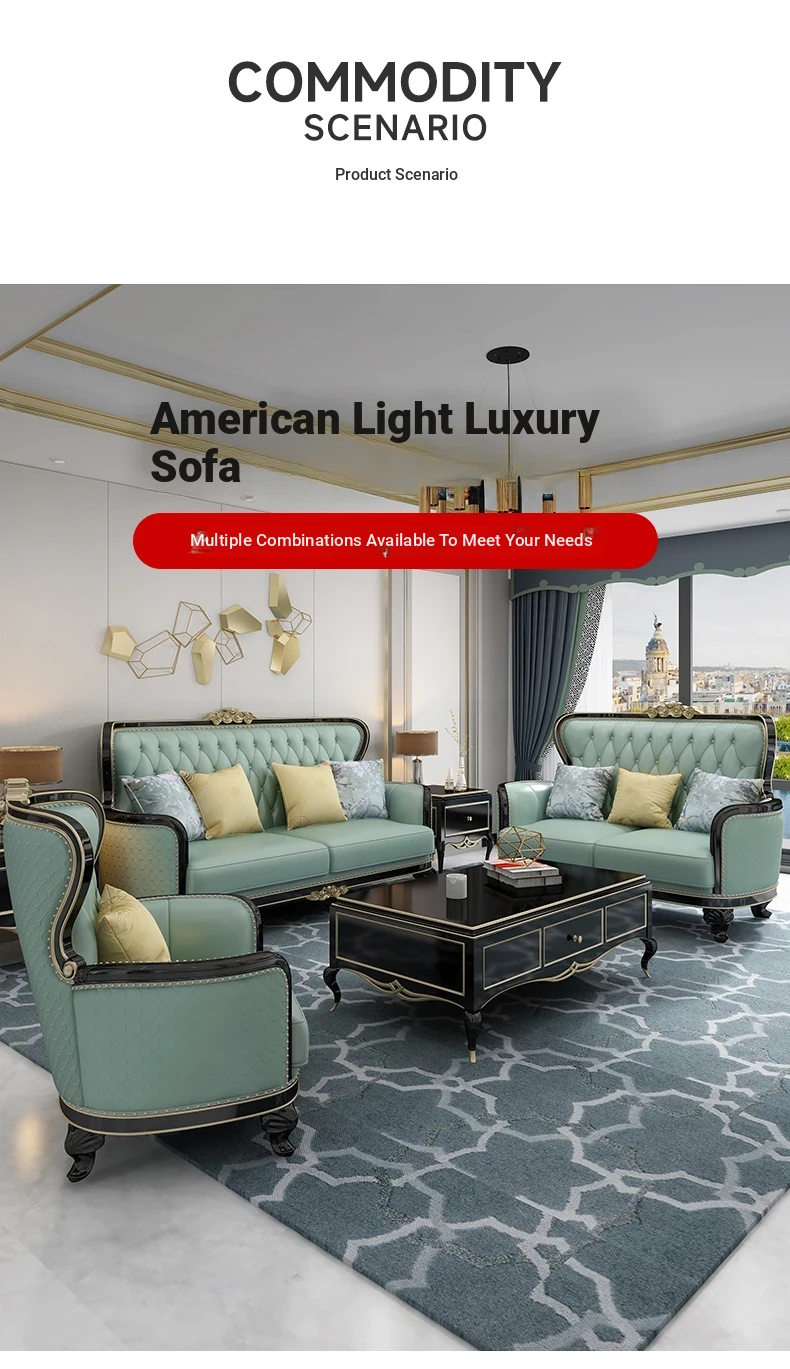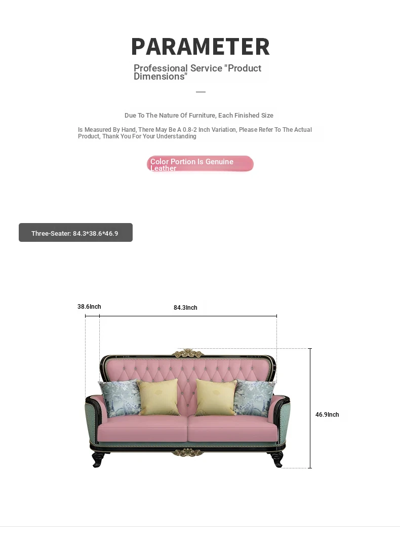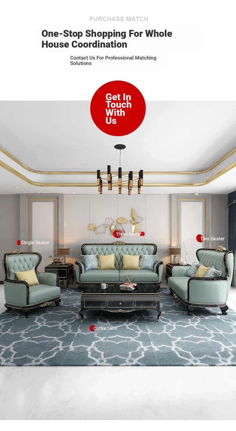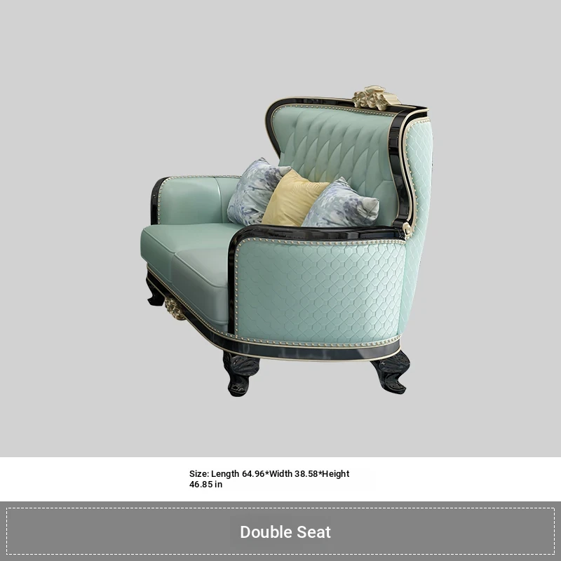 Luxury American Genuine Leather Sofa Set for Modern Villas - Elegant European Style Solid Wood Furniture for Spacious Living Rooms, Perfect for a Chic and Cozy Atmosphere.