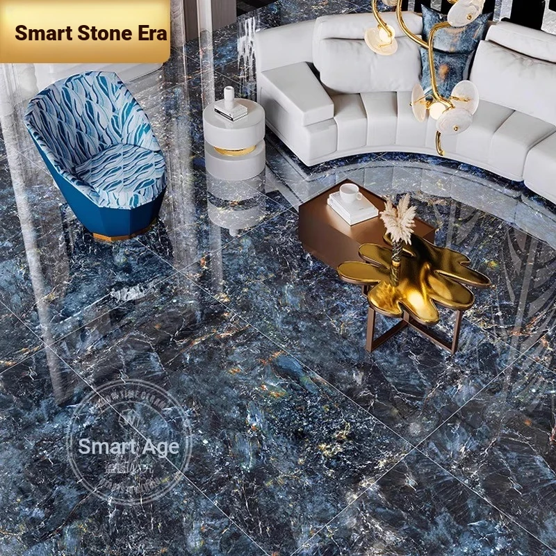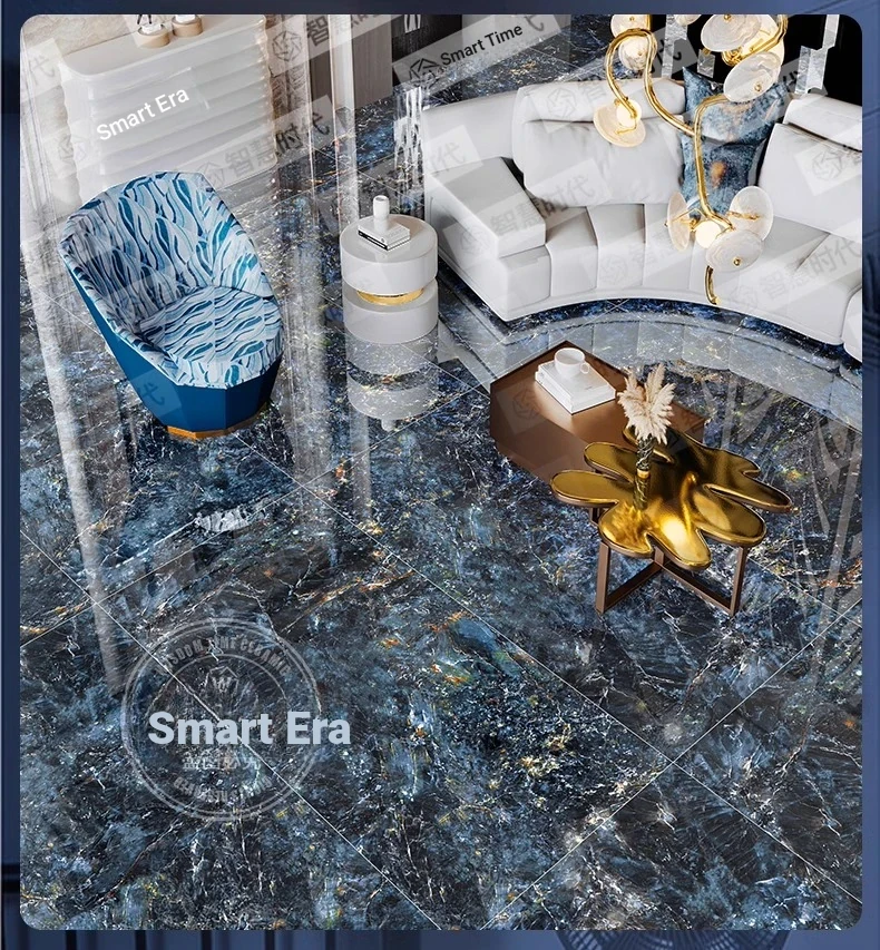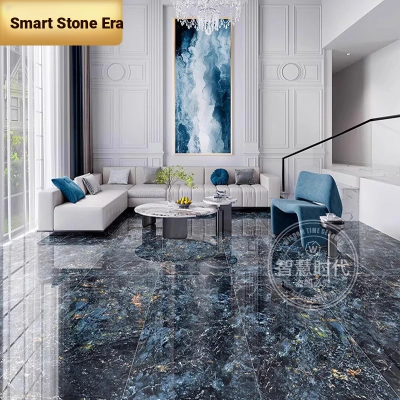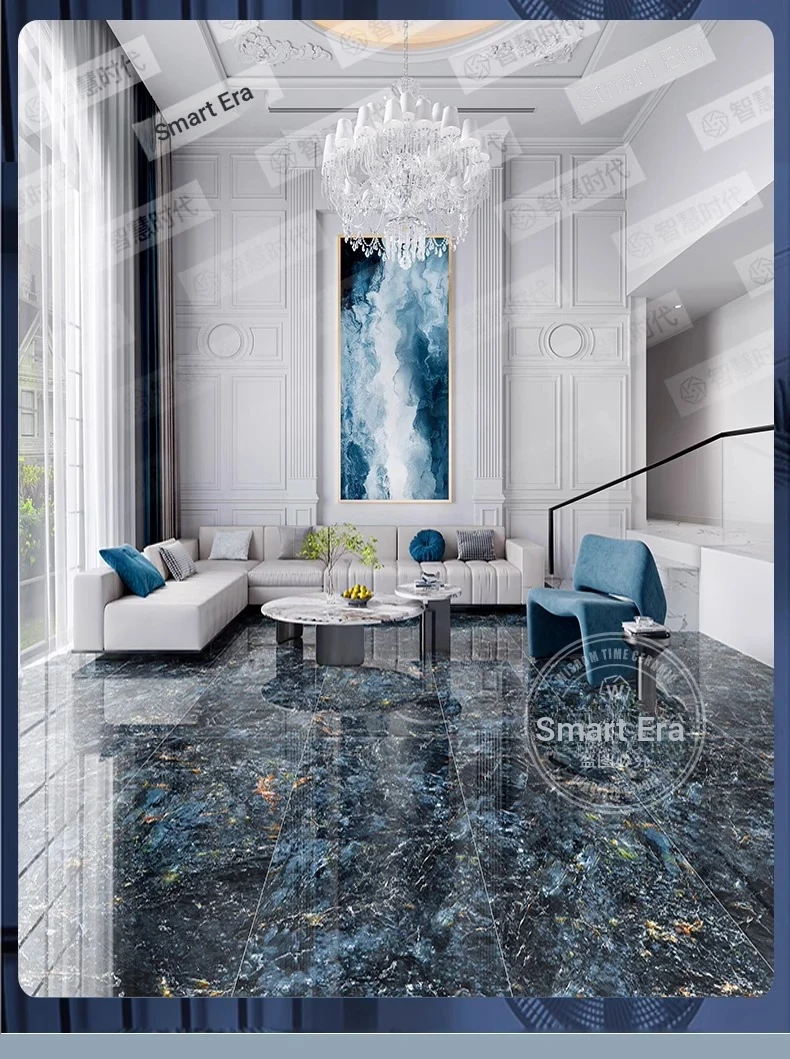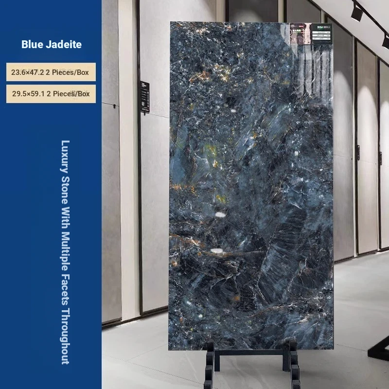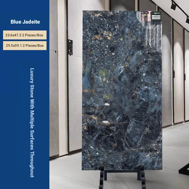 Luxury Blue Jadeite Porcelain Tiles - Stunning Blue Marble Effect Large Slabs (750x1500mm) for Elegant Floor, Accent Walls, Dining Tables, and Countertops