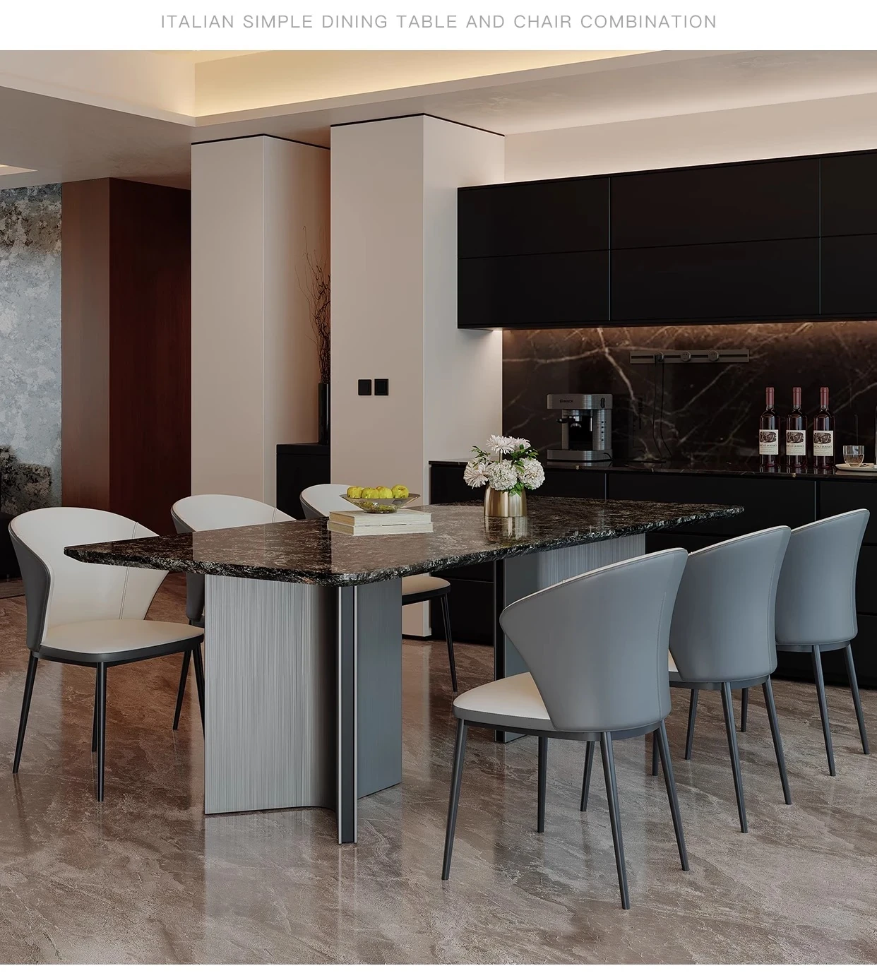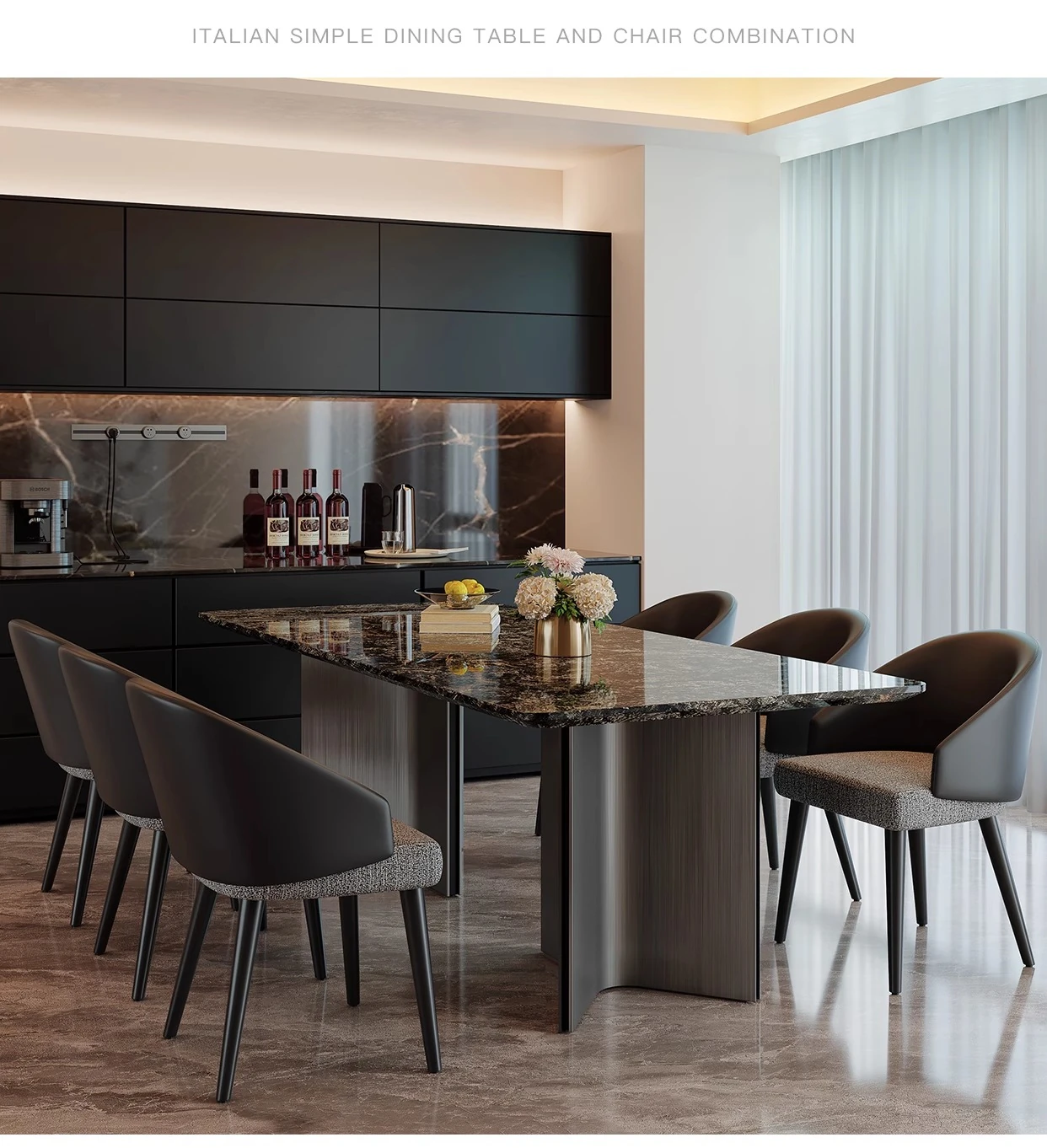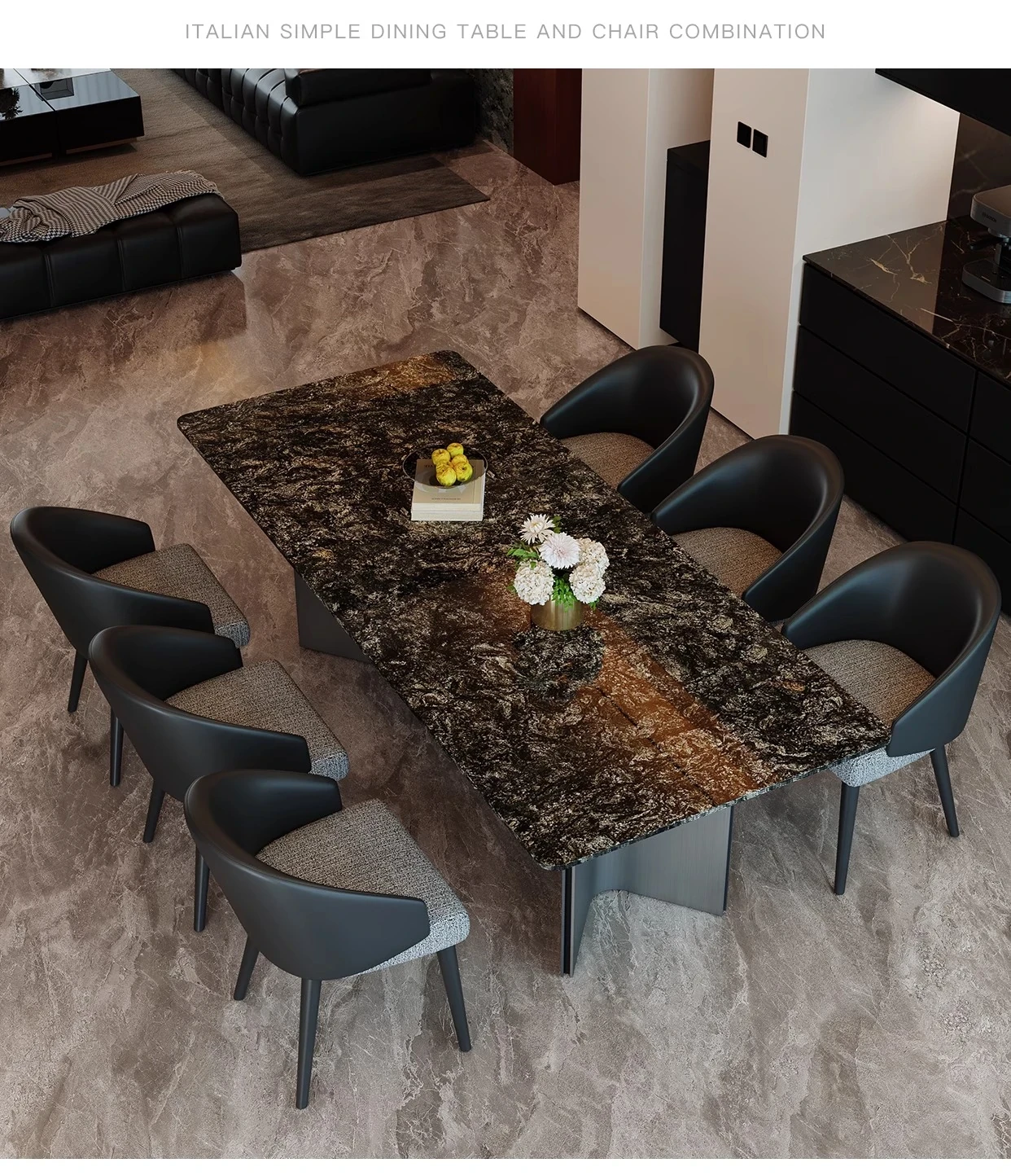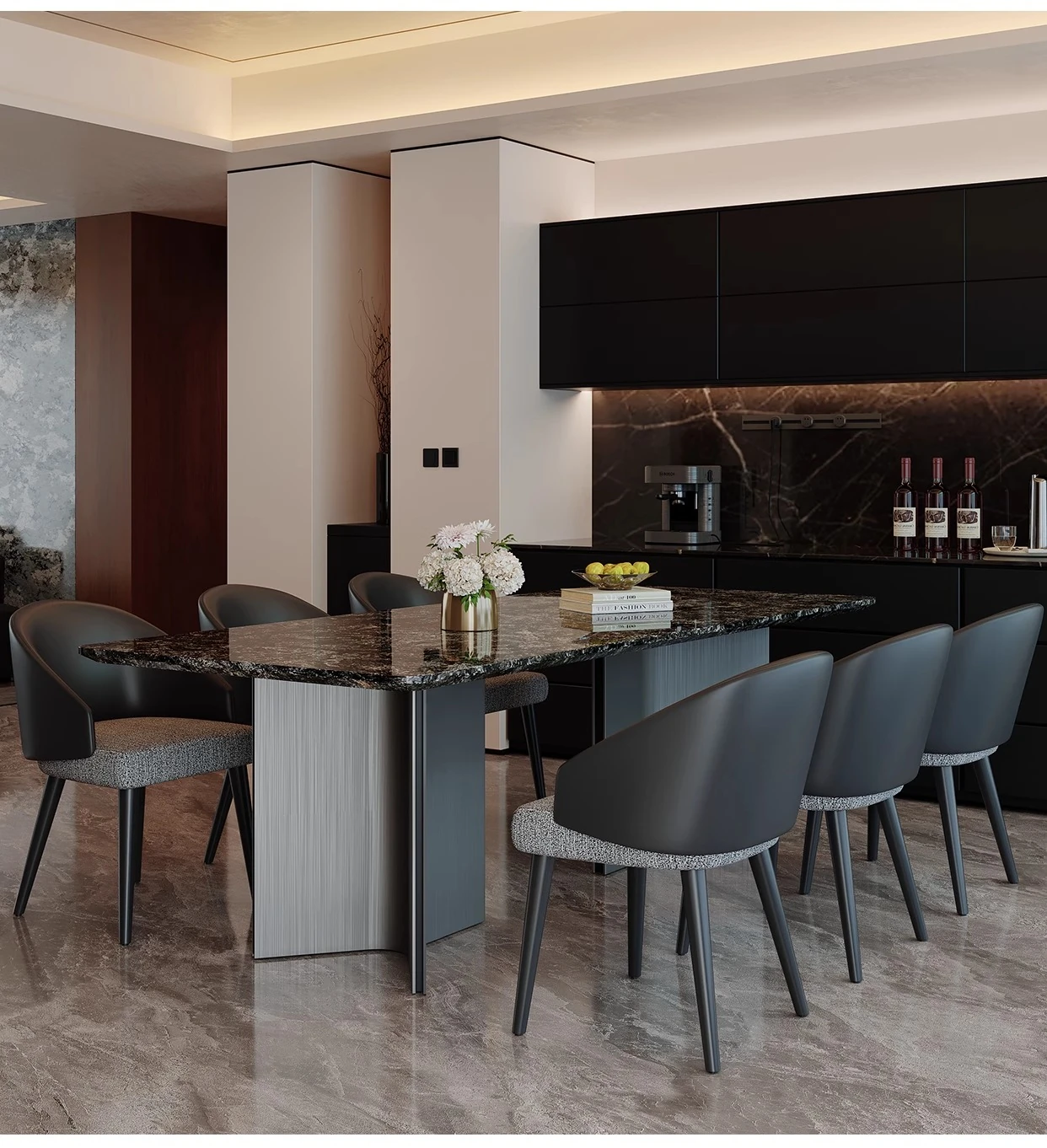 Luxury Natural Platinum Diamond Marble Dining Table and Chair Set - Rectangular Villa Dining Table for High-End Apartment Living