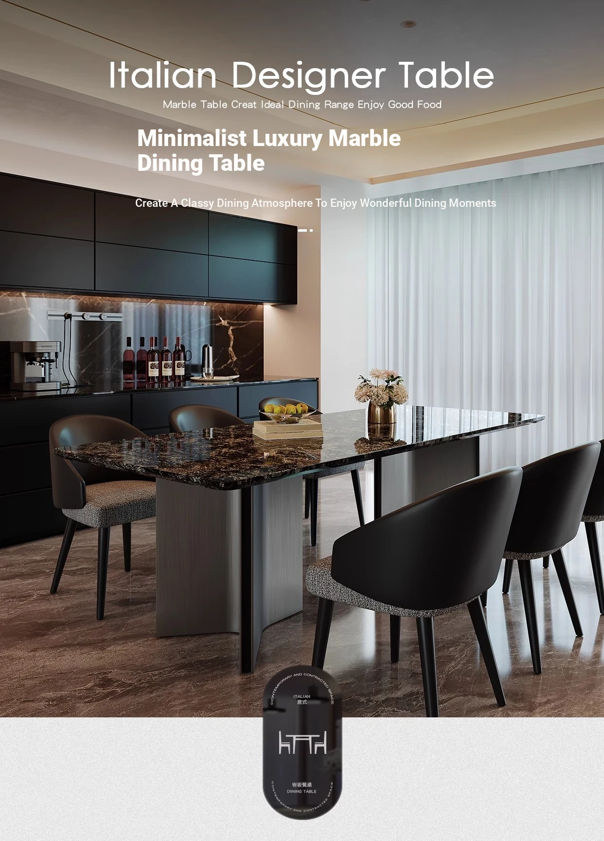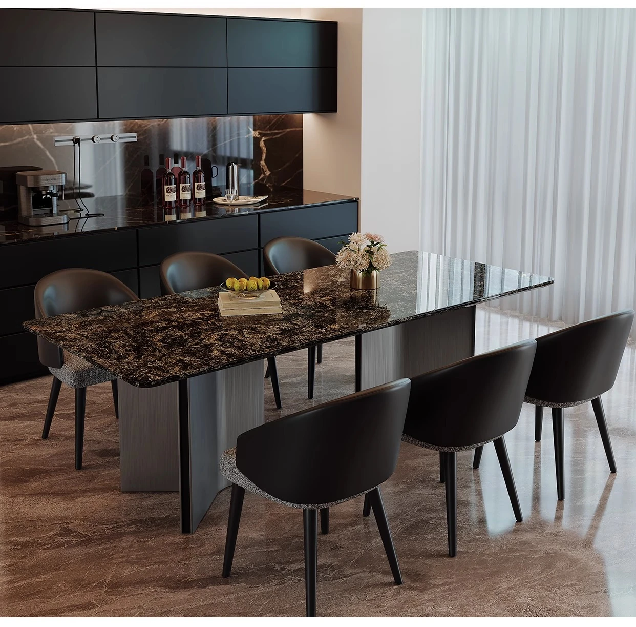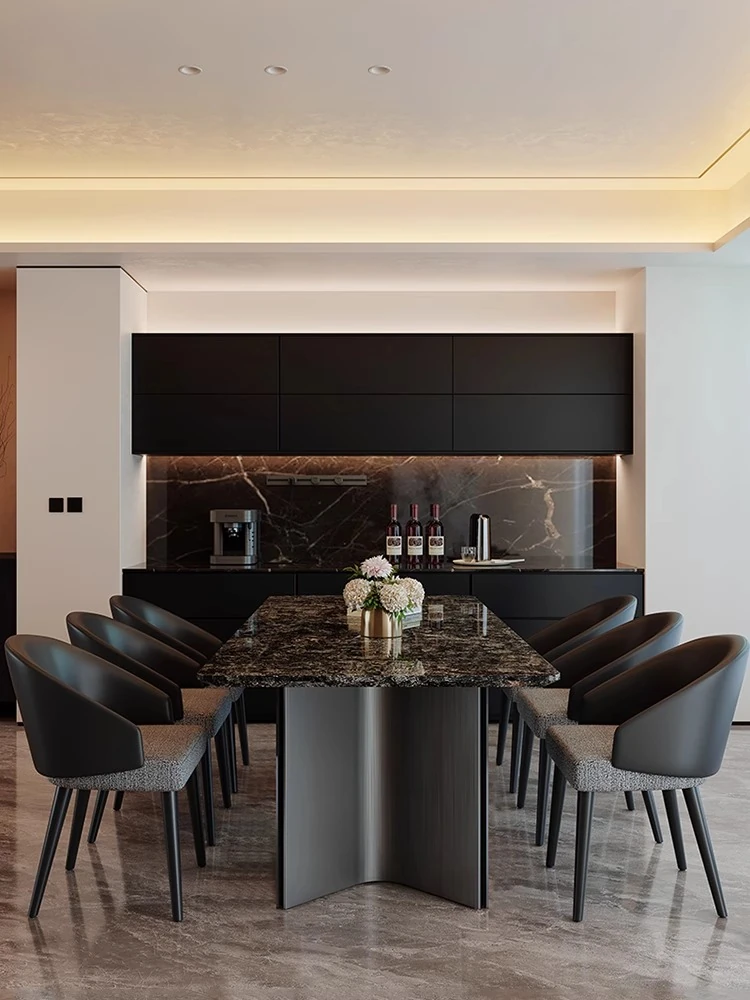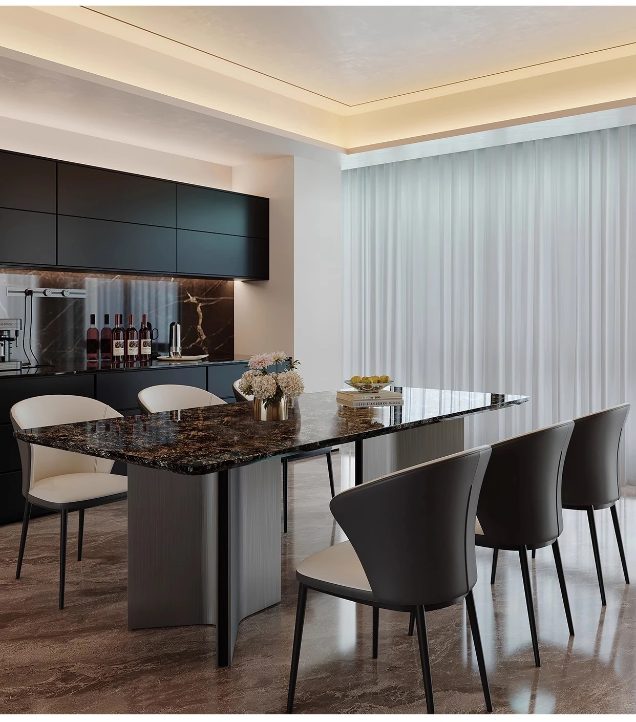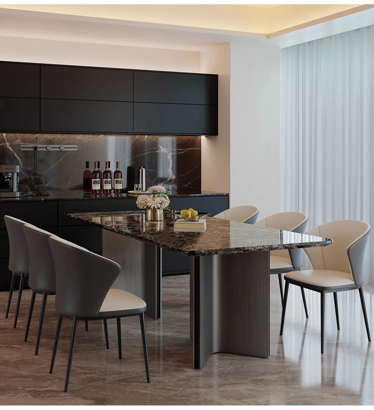 Luxury Natural Platinum Diamond Marble Dining Table and Chair Set - Rectangular Villa Dining Table for High-End Apartment Living