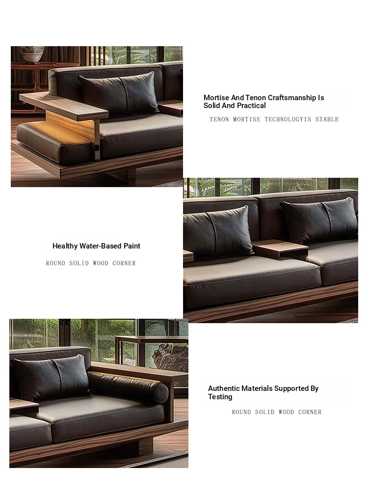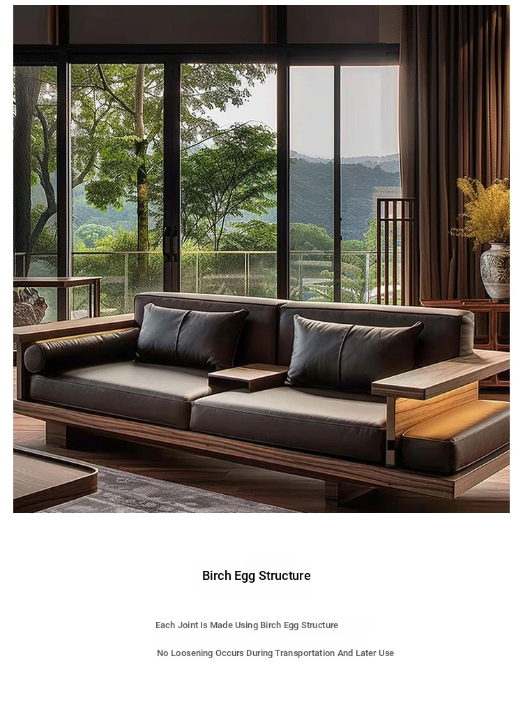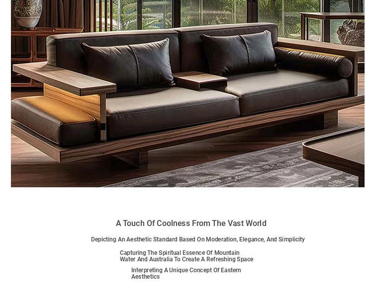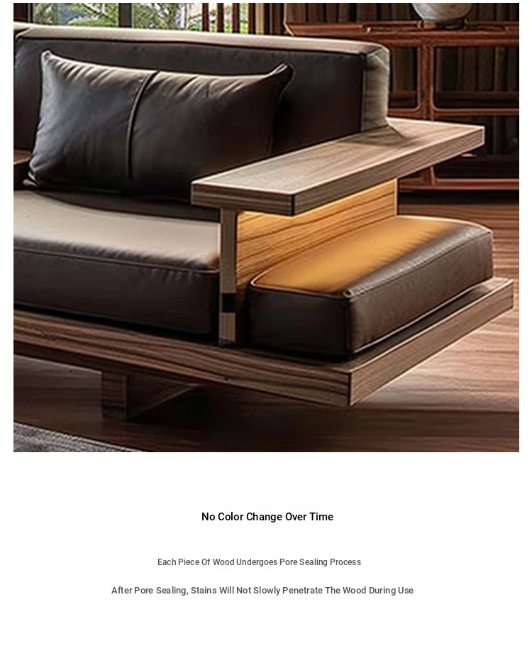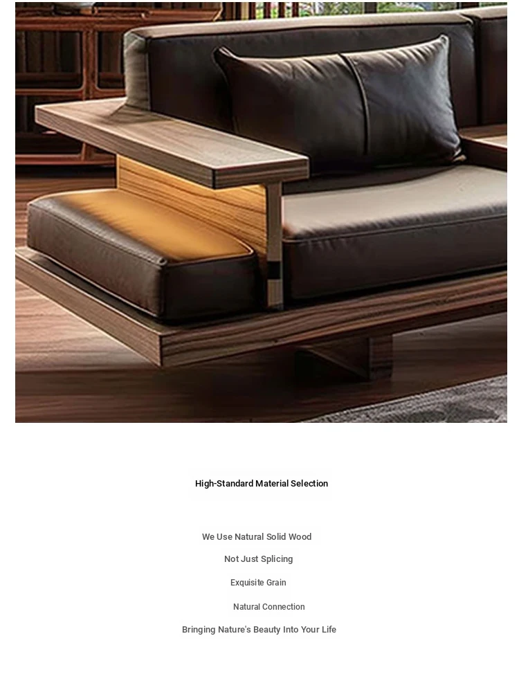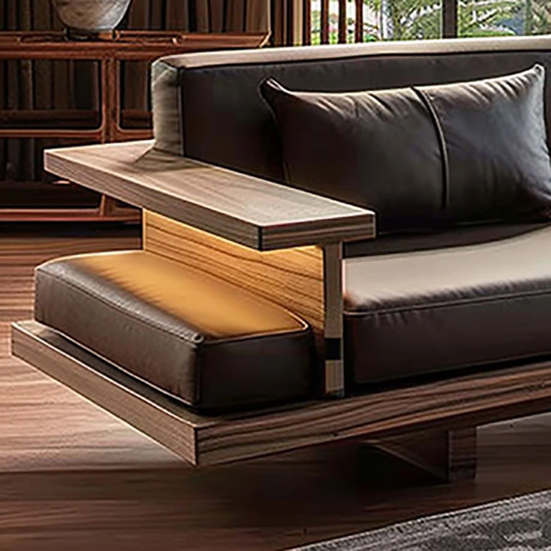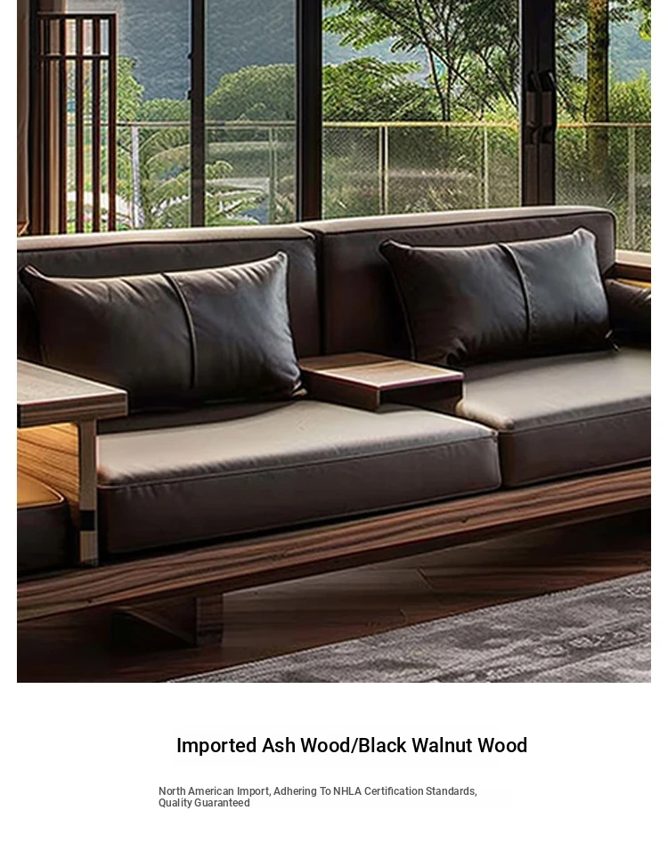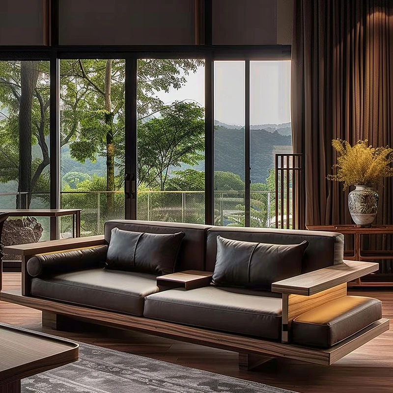 Luxury Zen Style Sofa in Black Walnut and Ash Wood - Premium Solid Wood Furniture for Home, High-End Hotels, Guesthouses, and Offices