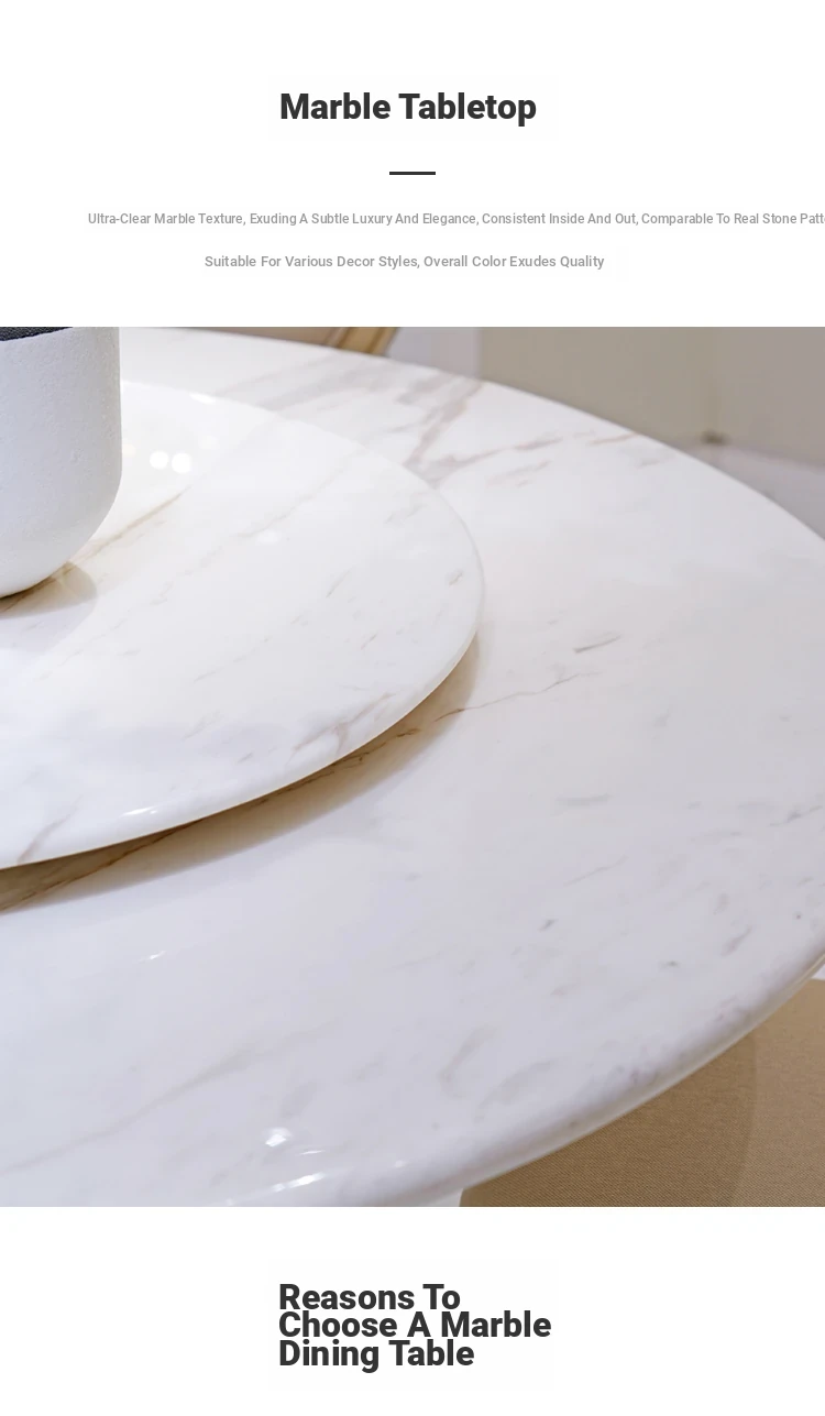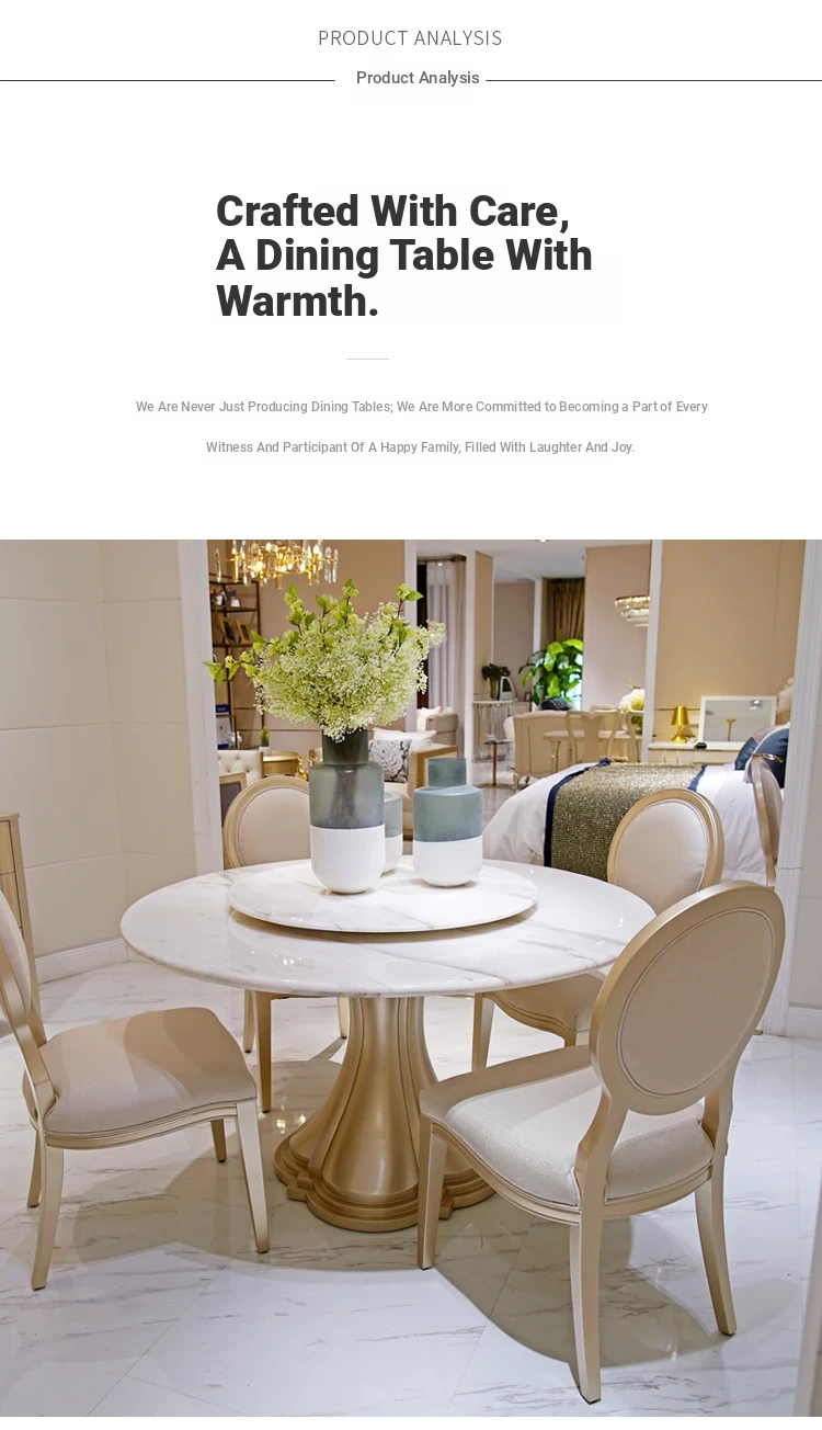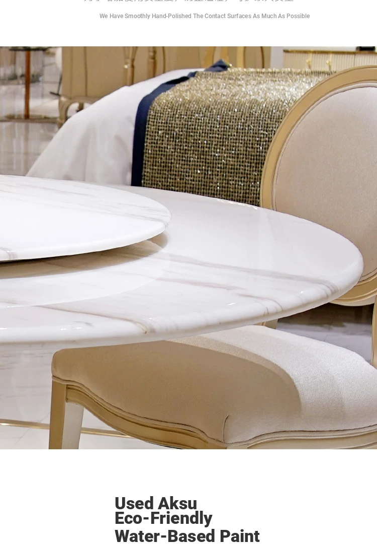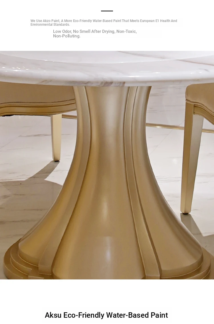 Modern American Luxury Round Natural Marble Dining Table with High-Quality Solid Wood Chairs - Elegant and Stylish Home Furniture Set for Upscale Dining Experience