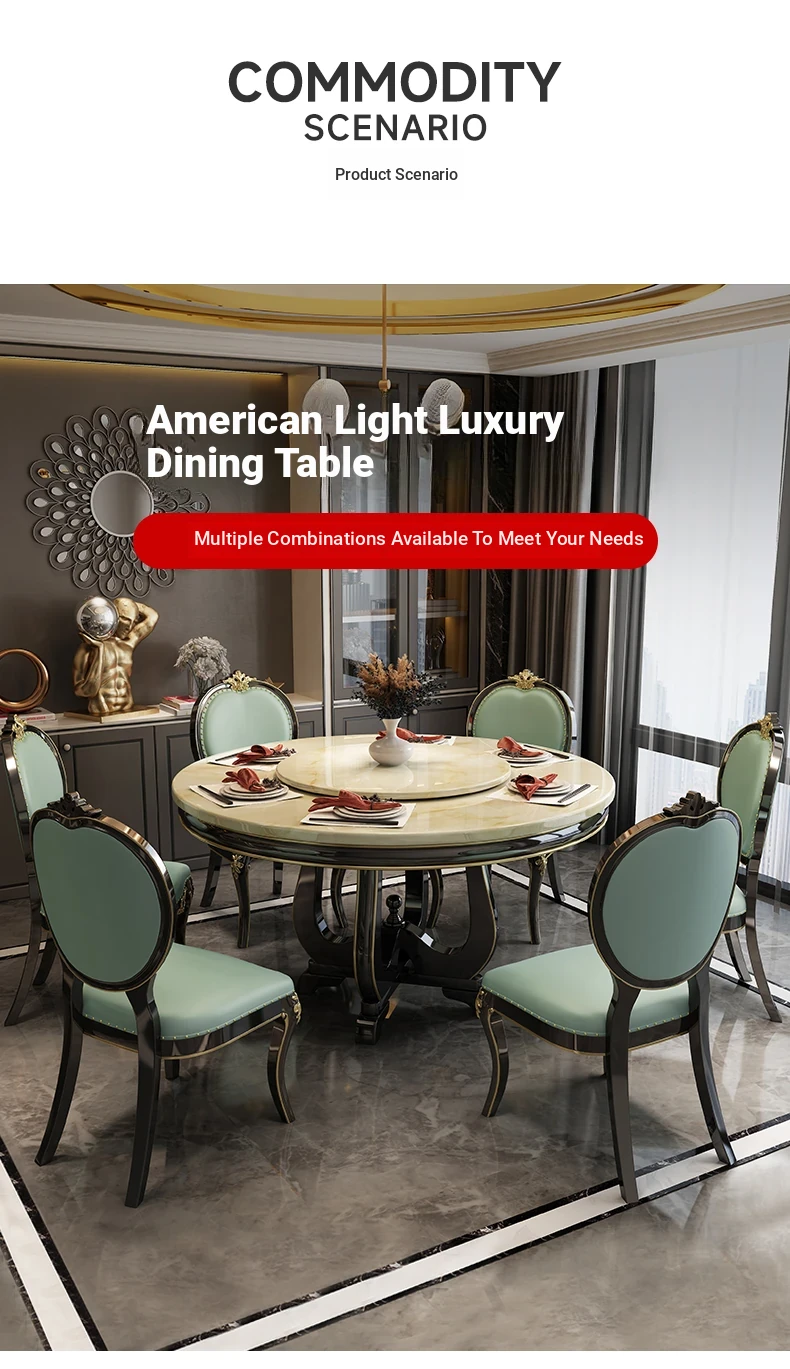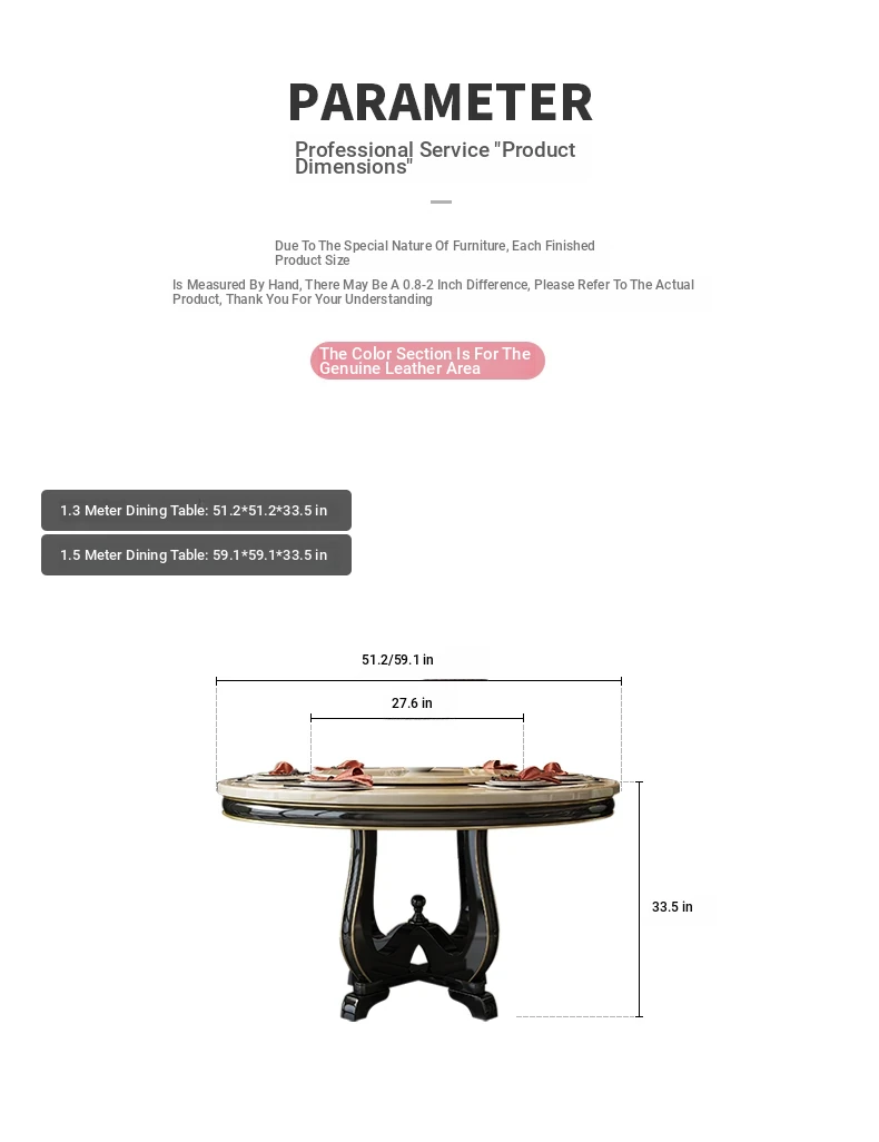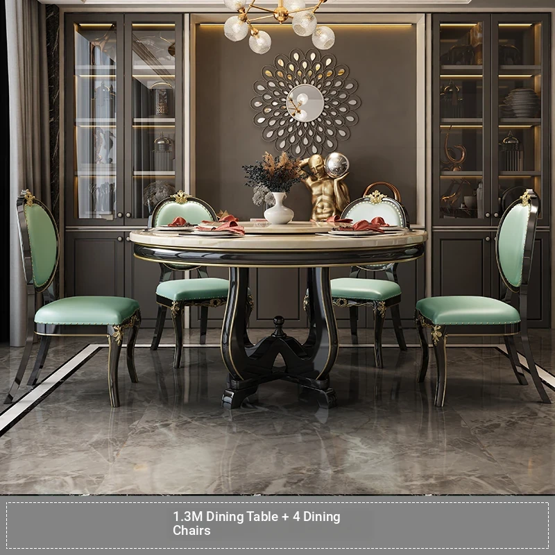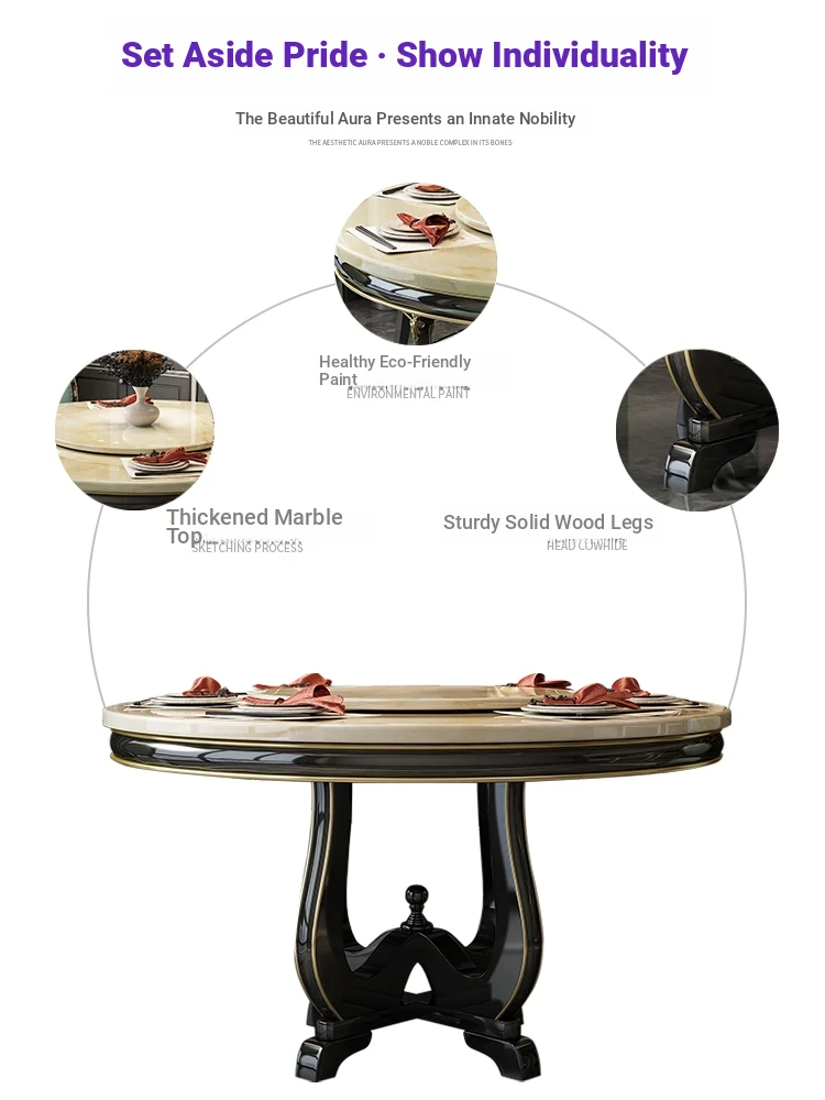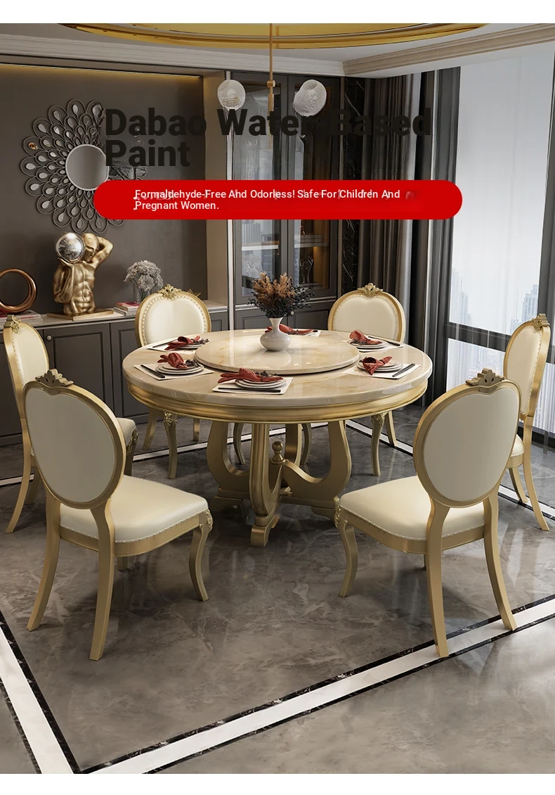 Modern American Solid Wood Dining Table and Chair Set - Minimalist Luxury Round 68-Inch Marble Dining Table for 6, Elegant European Design Furniture