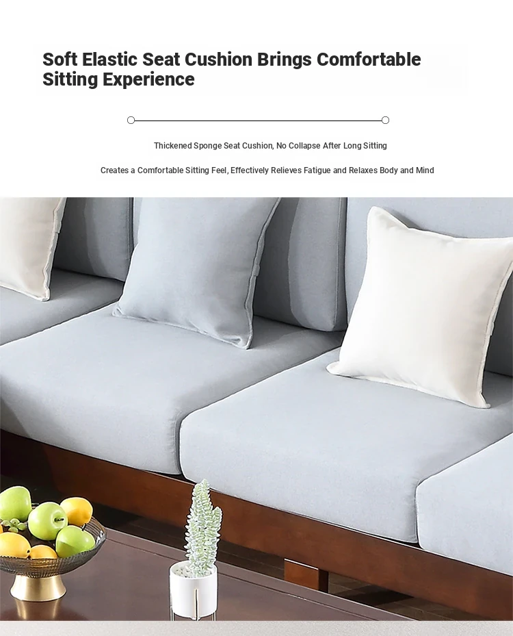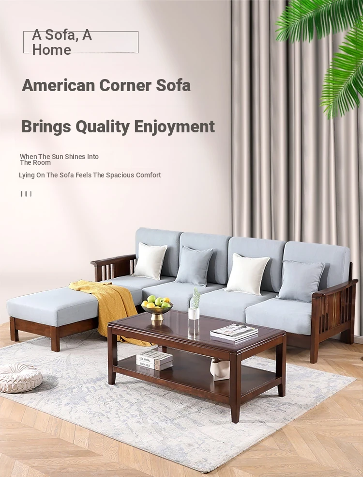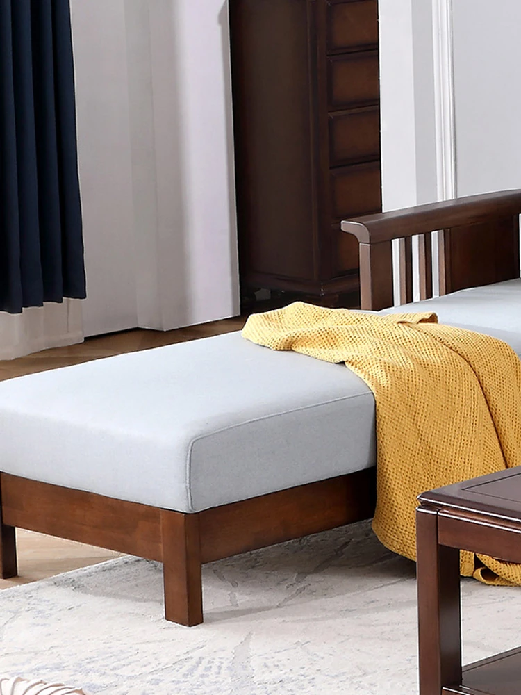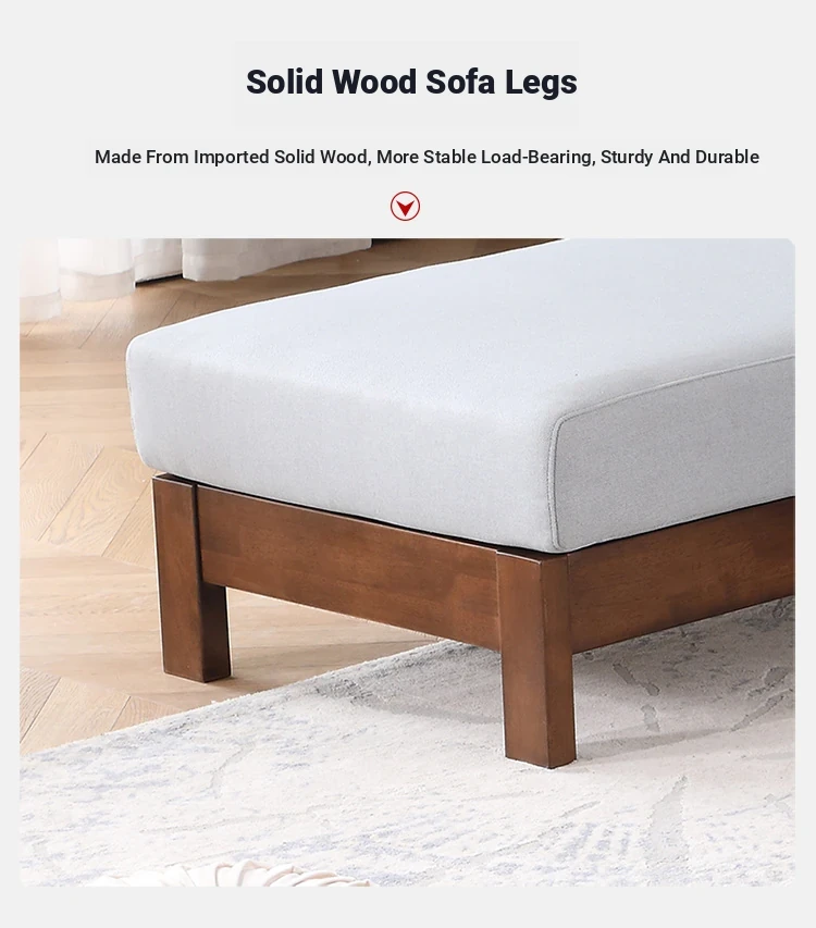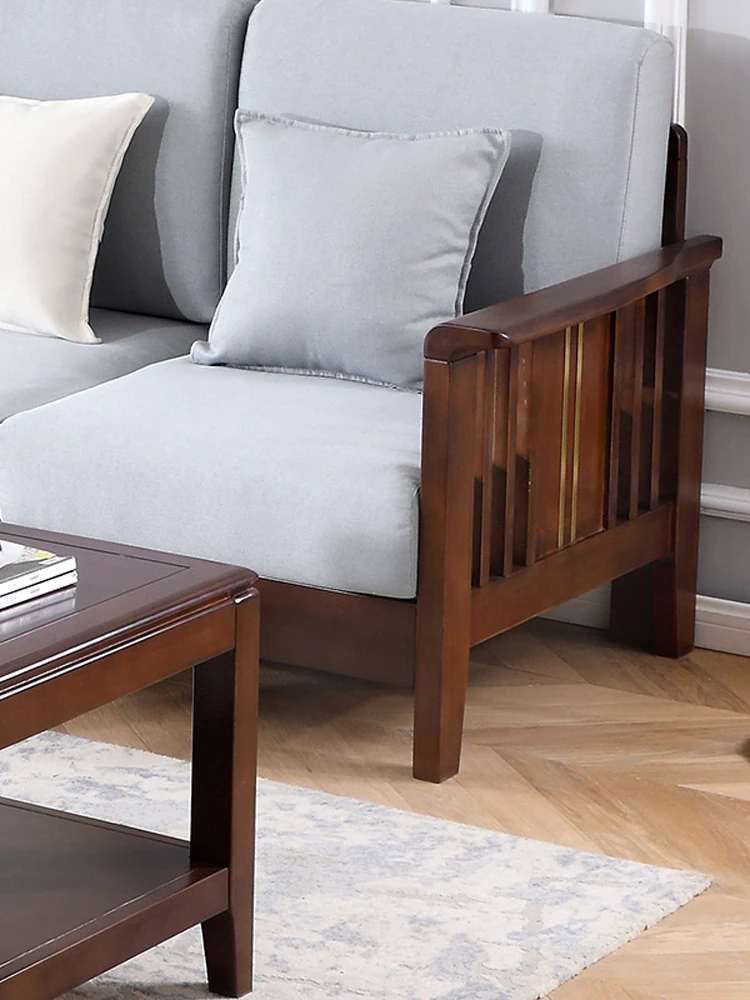Modern American Solid Wood Sofa Set - Minimalist Design for Small and Medium Living Rooms, Featuring Fabric Upholstery and a Comfortable Three-Seat Sofa Bed for Home Use