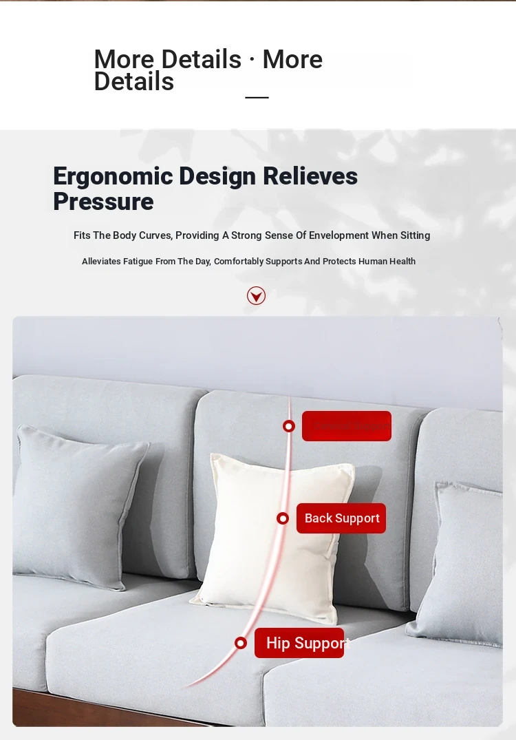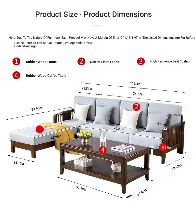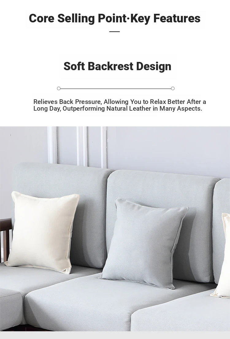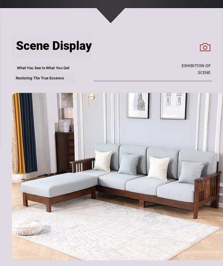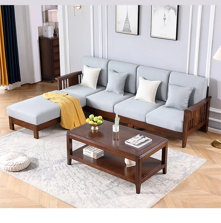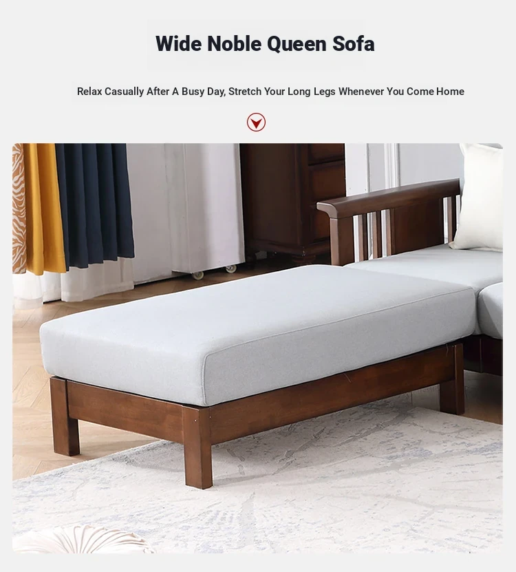 Modern American Solid Wood Sofa Set - Minimalist Design for Small and Medium Living Rooms, Featuring Fabric Upholstery and a Comfortable Three-Seat Sofa Bed for Home Use