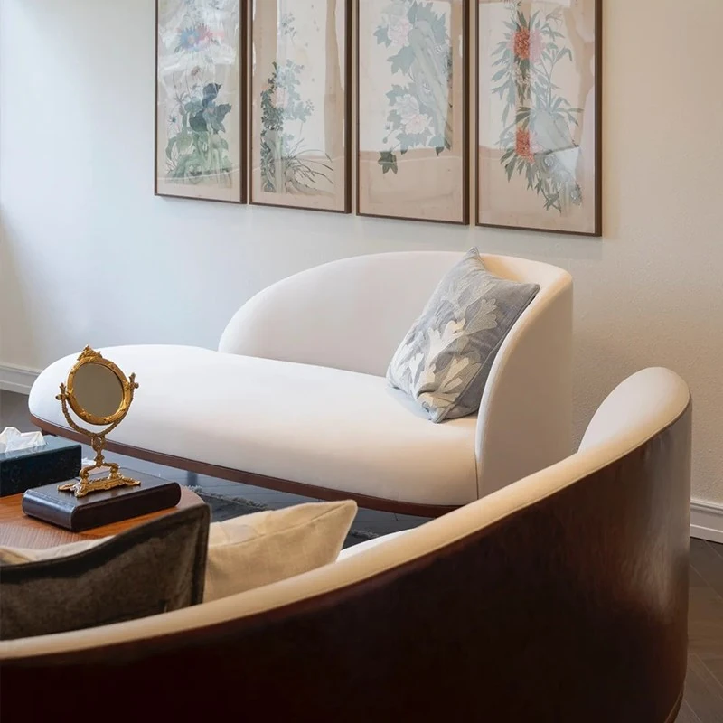 Modern Chinese Style North American Black Walnut Chaise Lounge | Elegant Upholstered Armchair for Living Room | Versatile Solid Wood Sofa Bed for Home Use