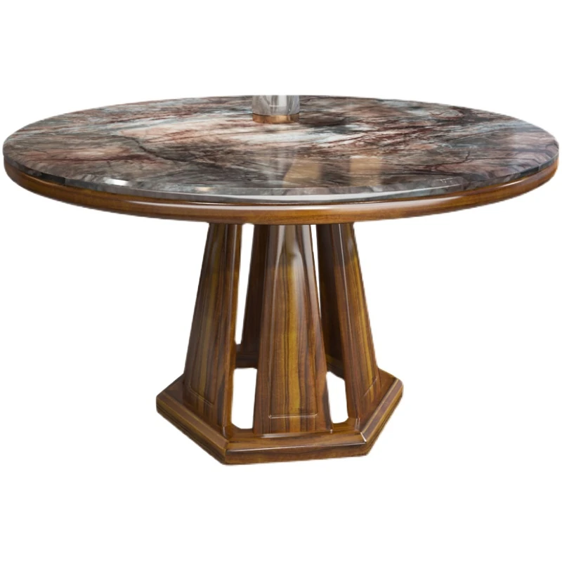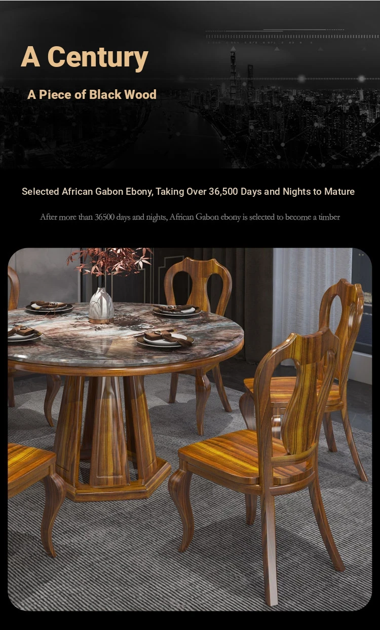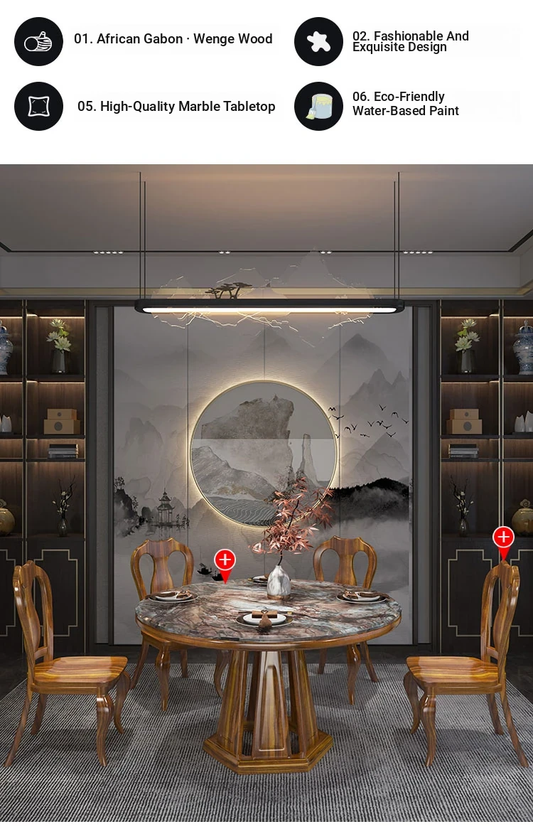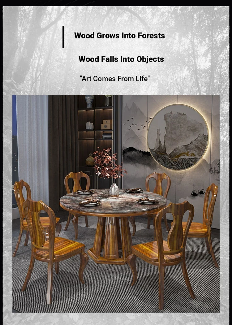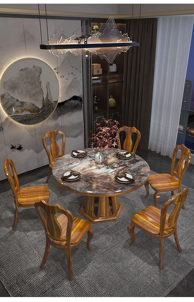 Modern Chinese Style Solid Wood Round Dining Table Set - Elegant Minimalist Design for 6 People, Perfect for Home Dining Experience