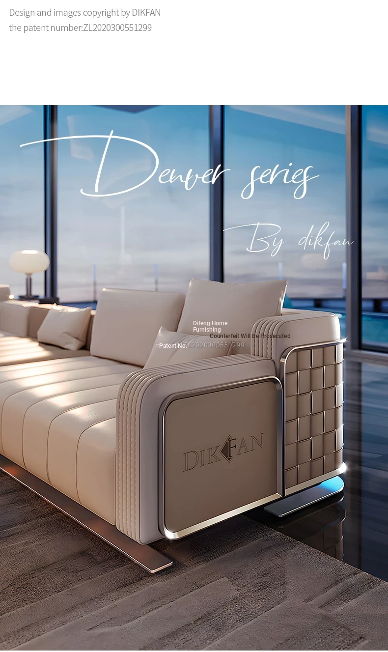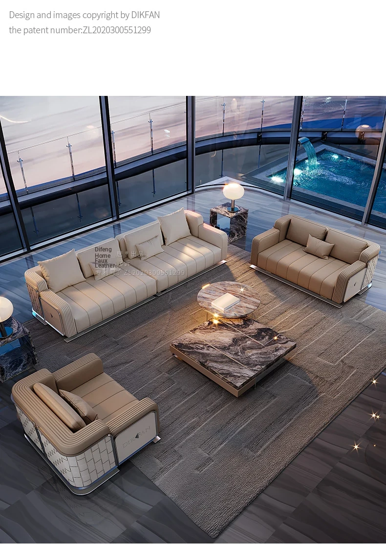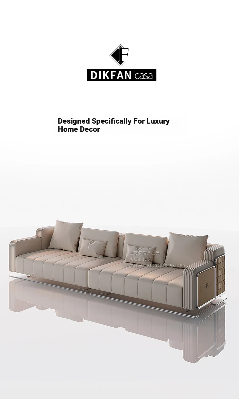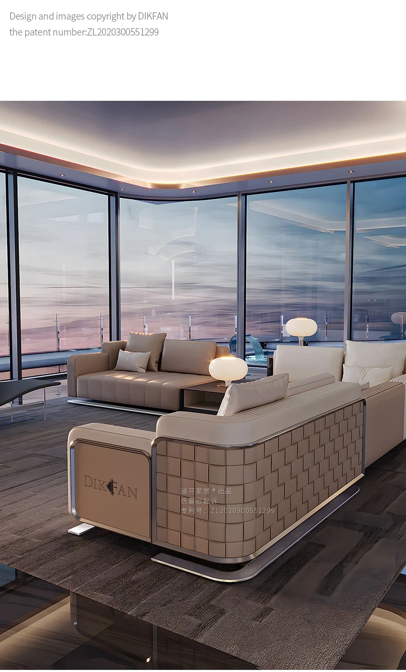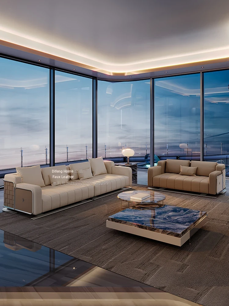 Modern Minimalist Luxury Genuine Leather Sofa Set for Villas and Spacious Living Areas - Elegant High-End Furniture for Your Living Room
