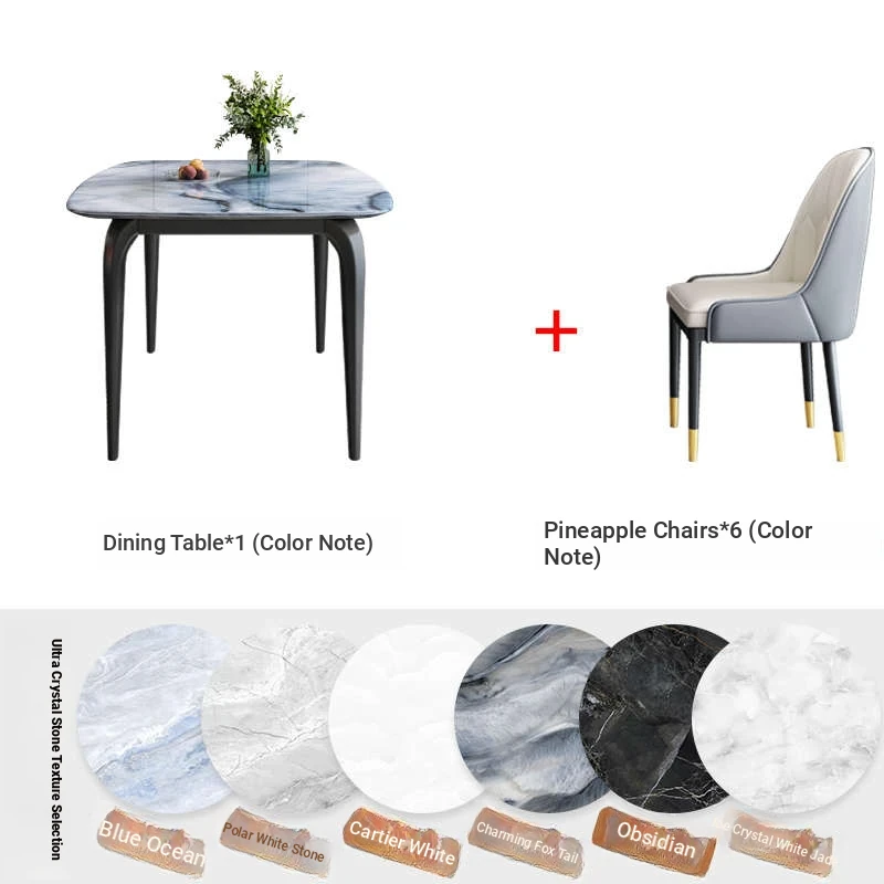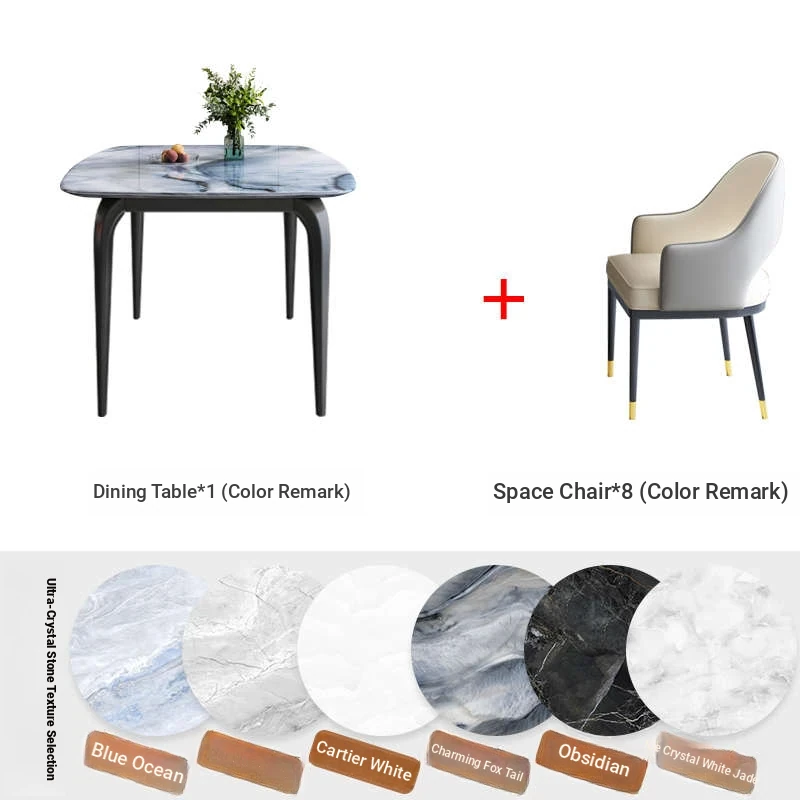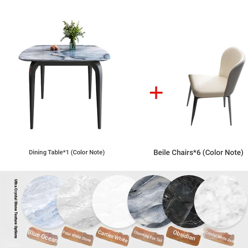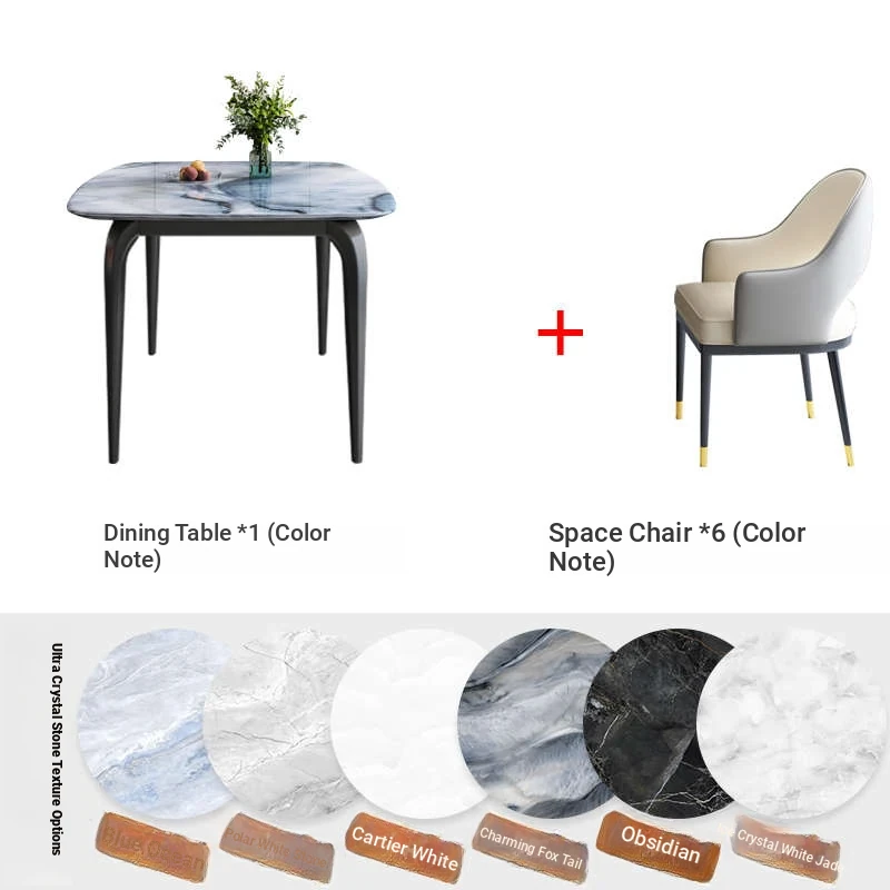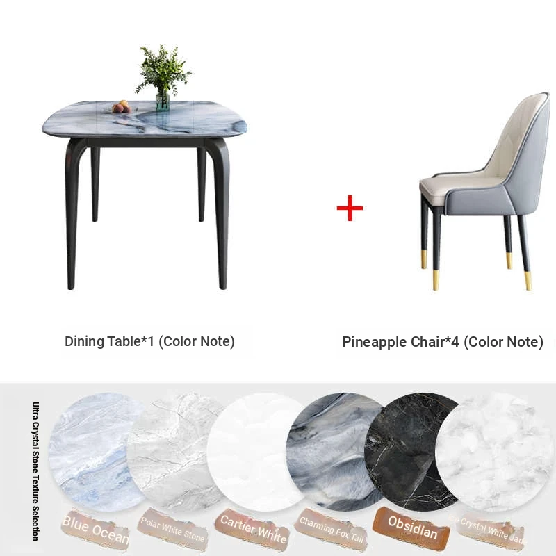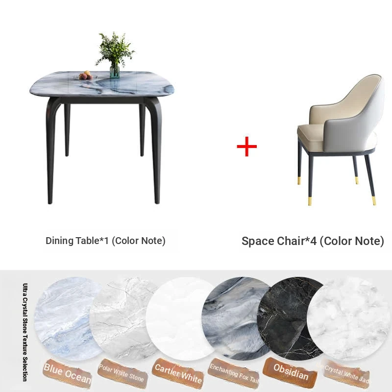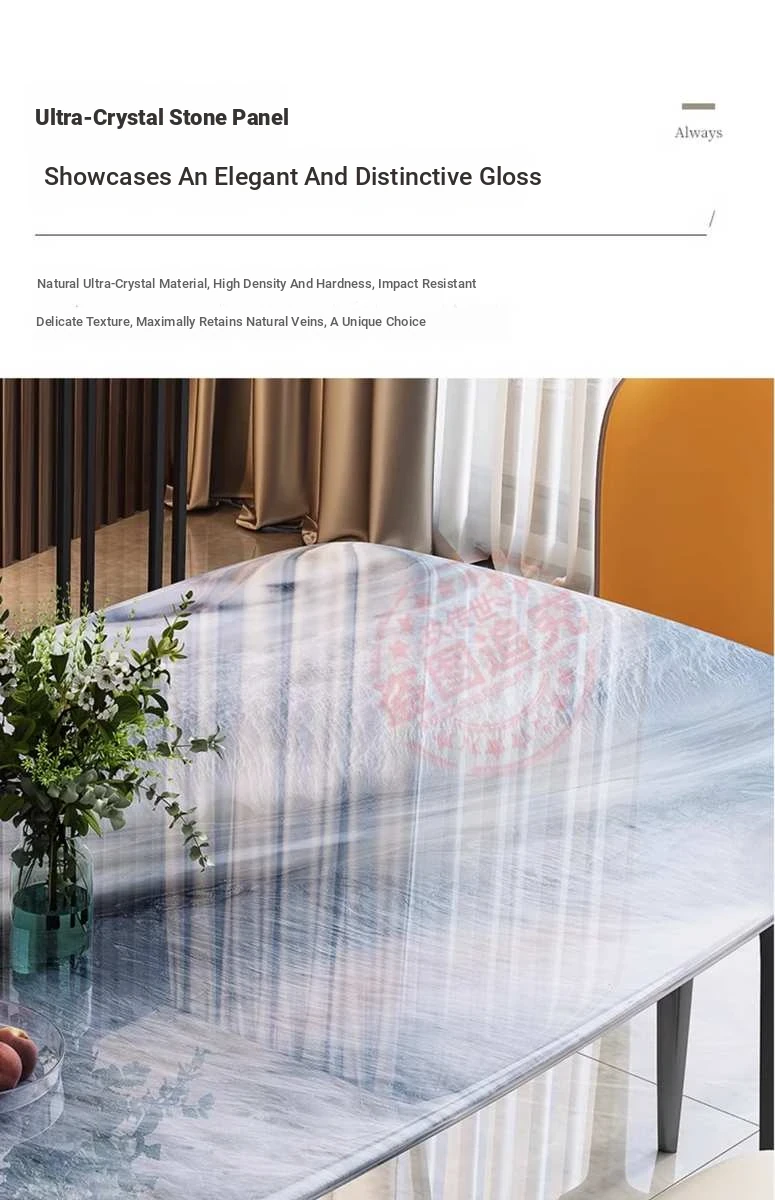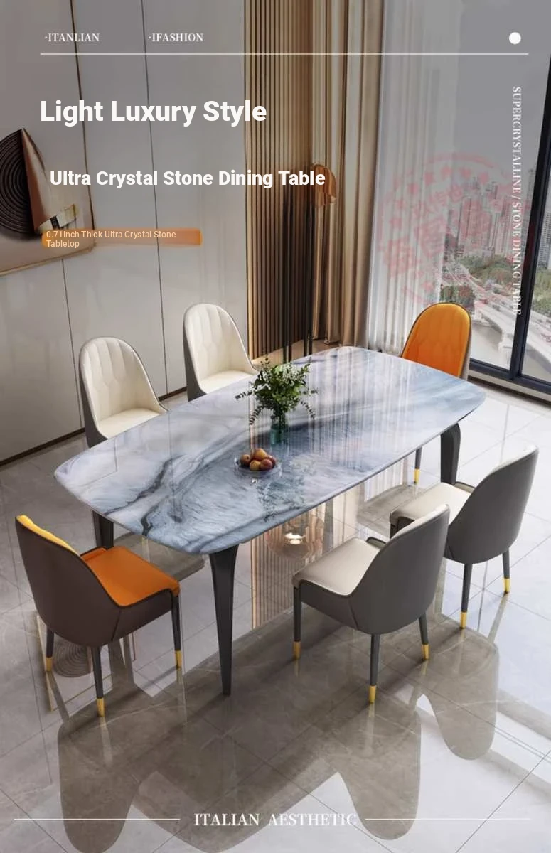 Modern Minimalist Luxury Ultra Crystal Stone Dining Table and Chair Set - Rectangular Marble Dining Table with Elegant Rock Plate Design for Stylish Dining Experiences