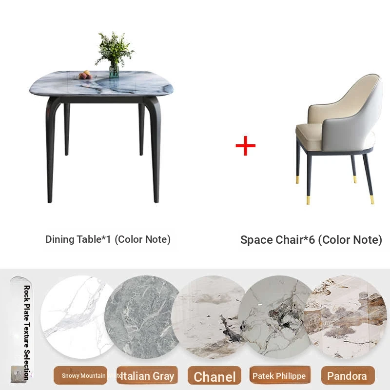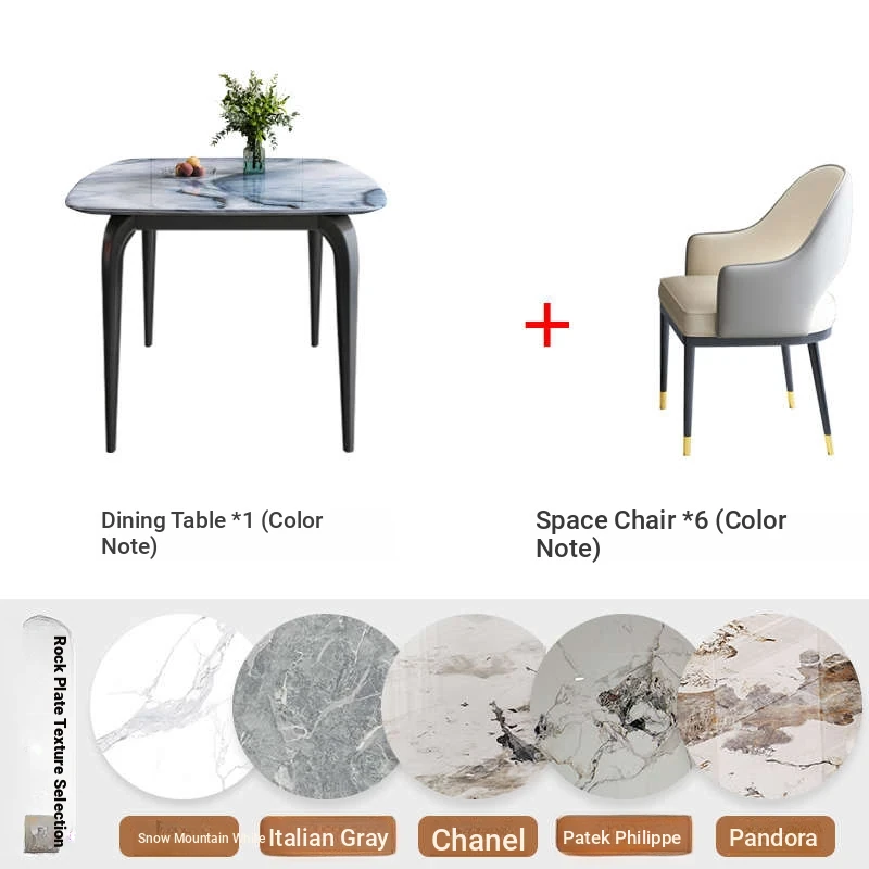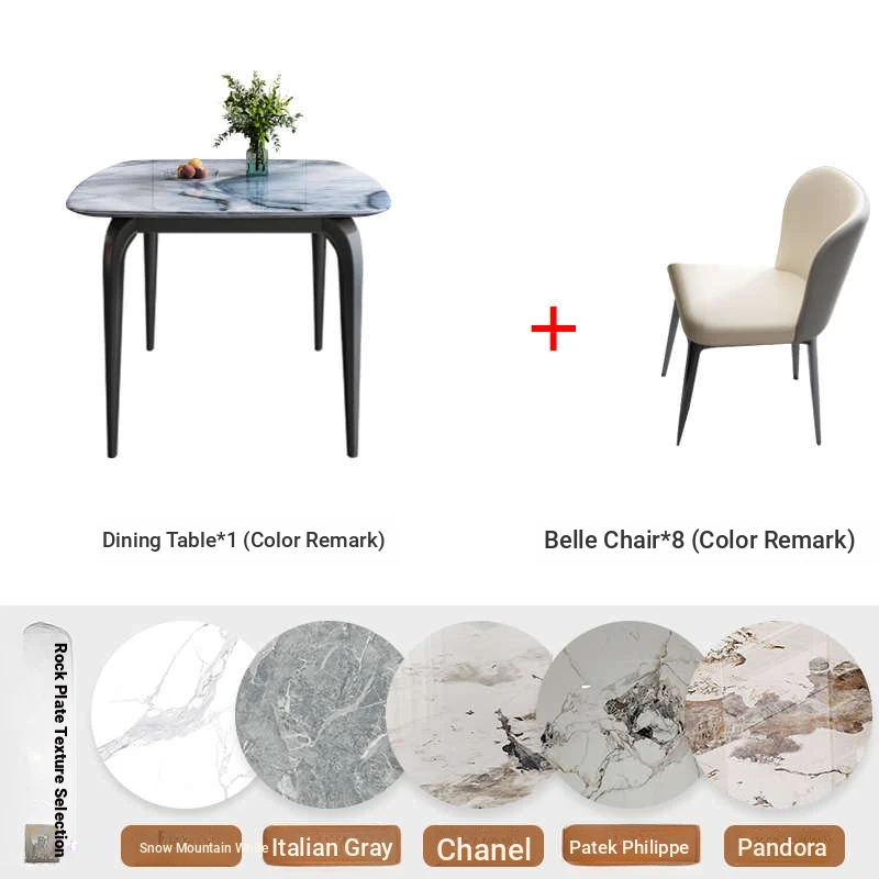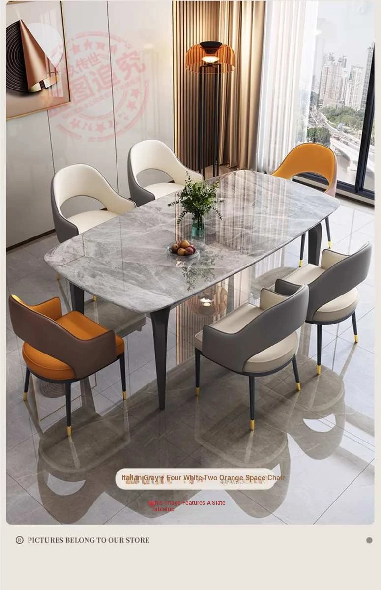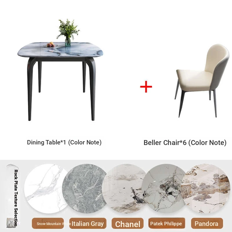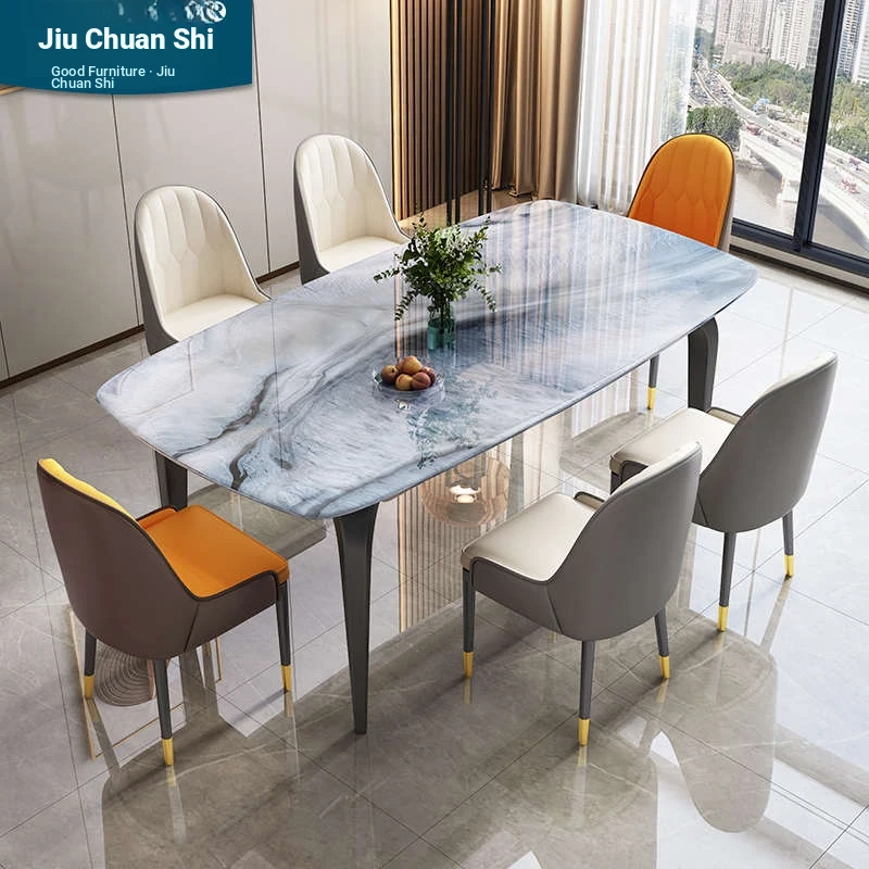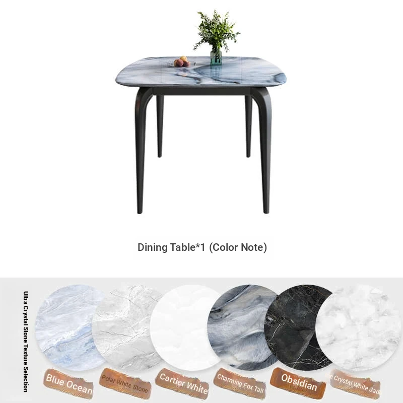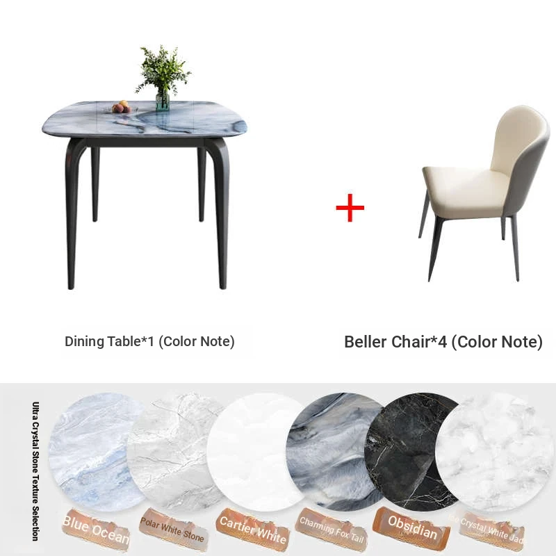Modern Minimalist Luxury Ultra Crystal Stone Dining Table and Chair Set - Rectangular Marble Dining Table with Elegant Rock Plate Design for Stylish Dining Experiences