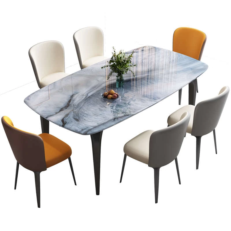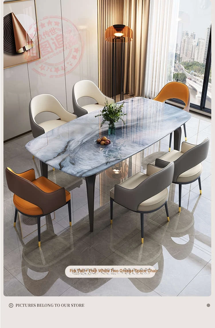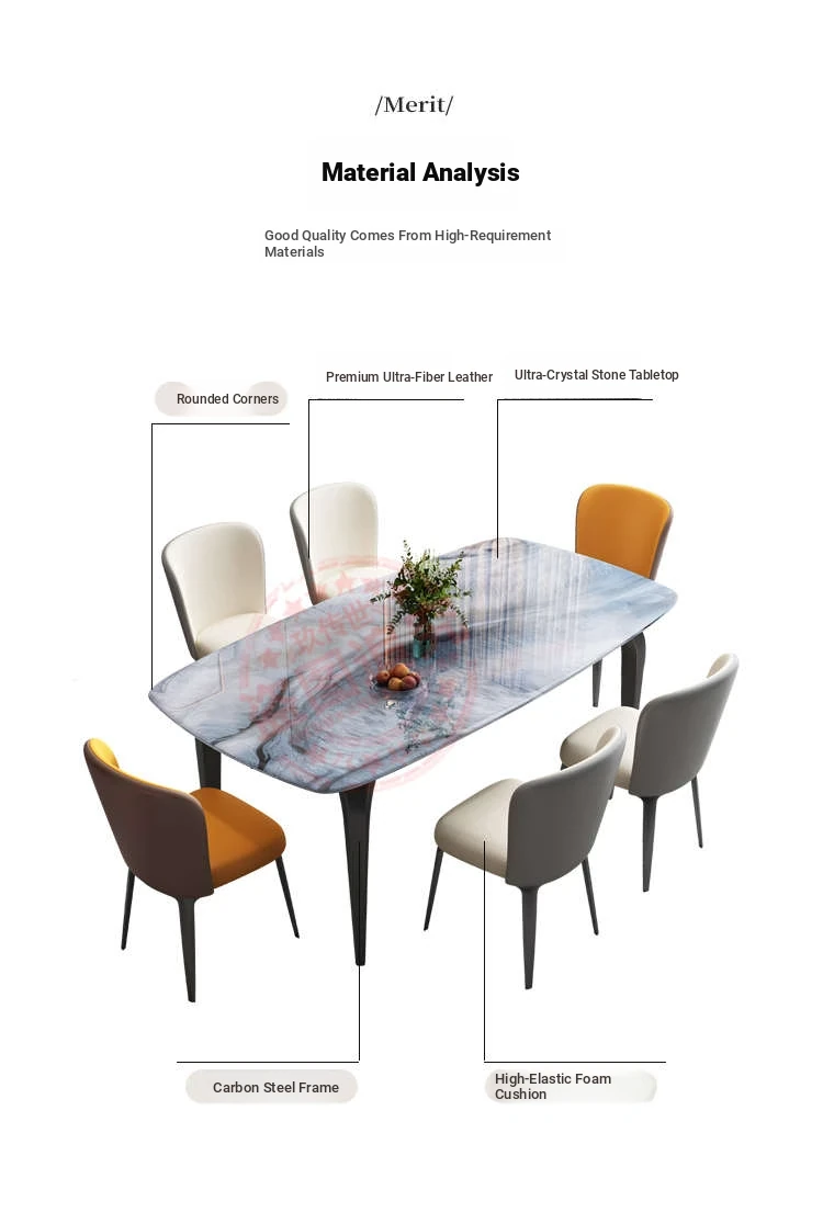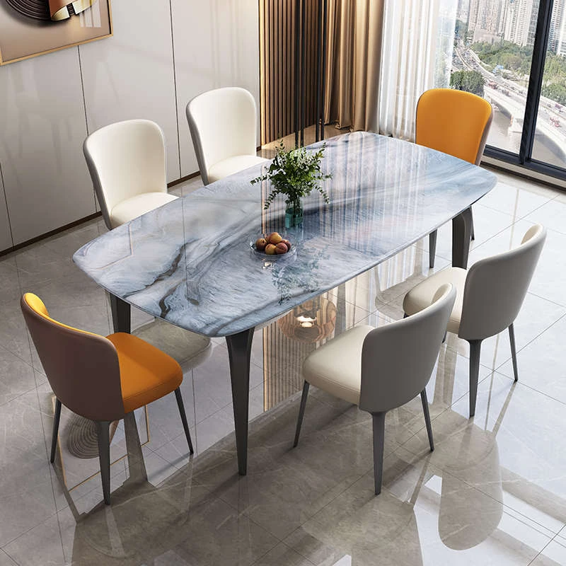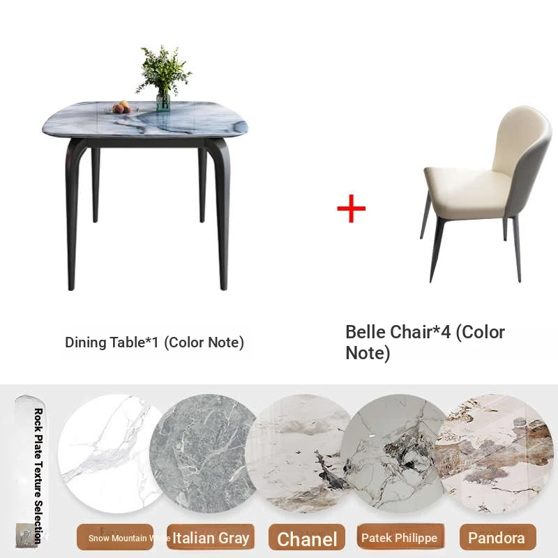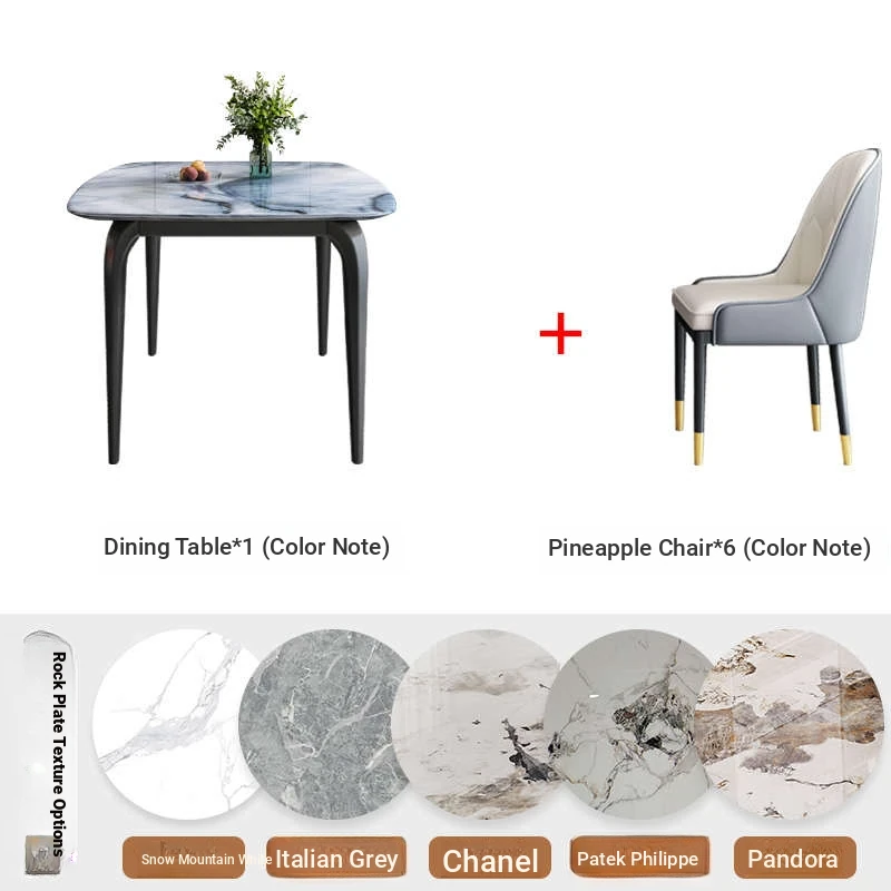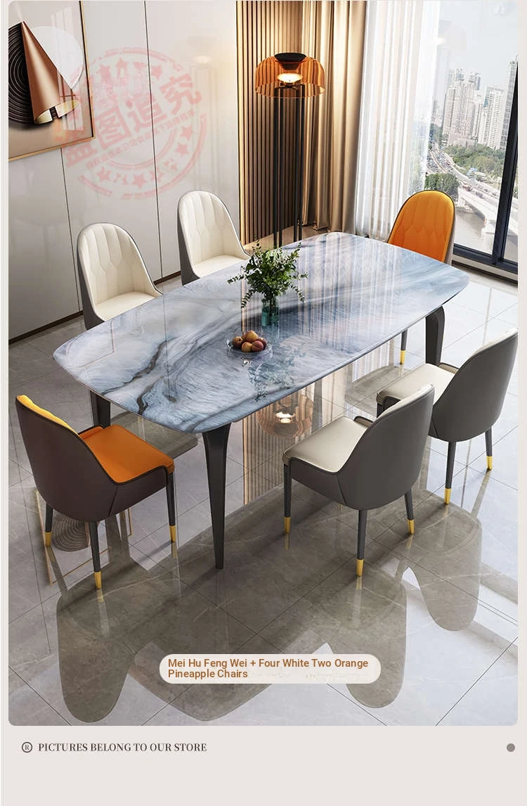 Modern Minimalist Luxury Ultra Crystal Stone Dining Table and Chair Set - Rectangular Marble Dining Table with Elegant Rock Plate Design for Stylish Dining Experiences