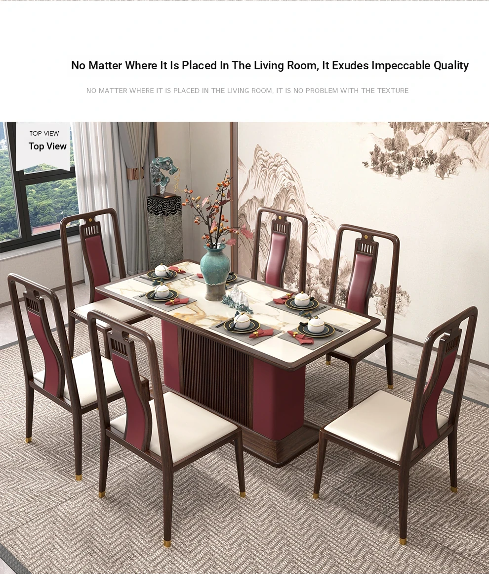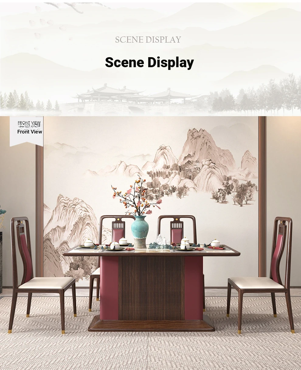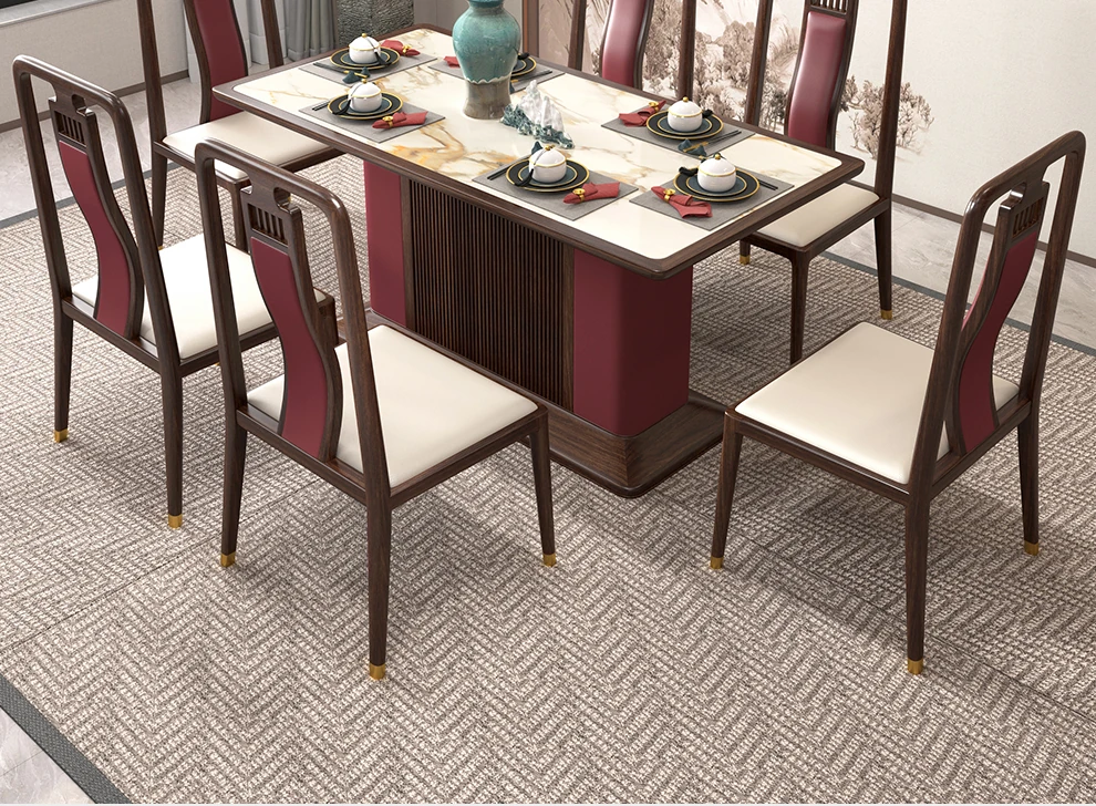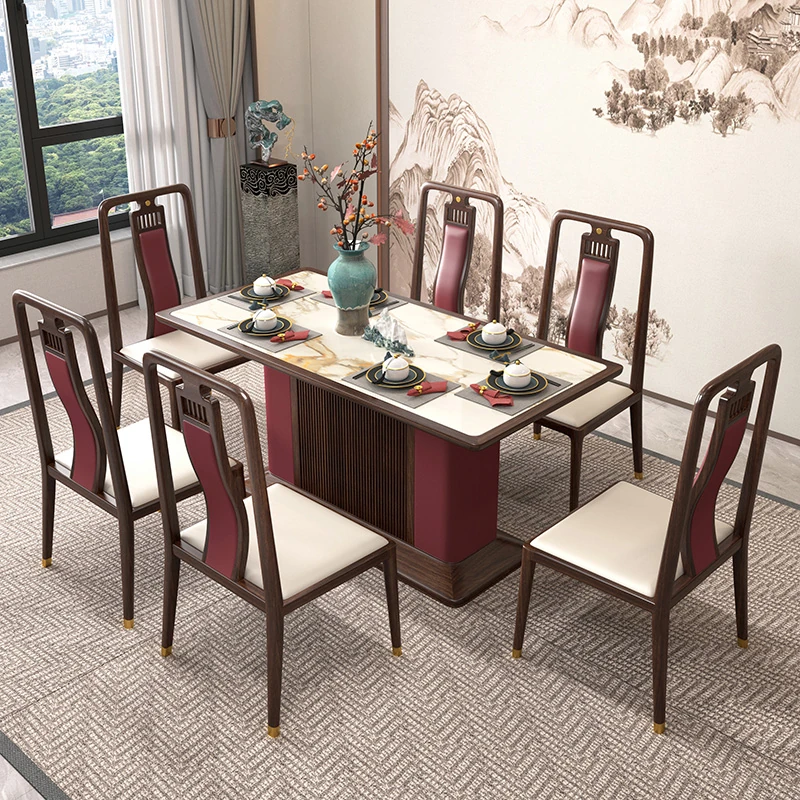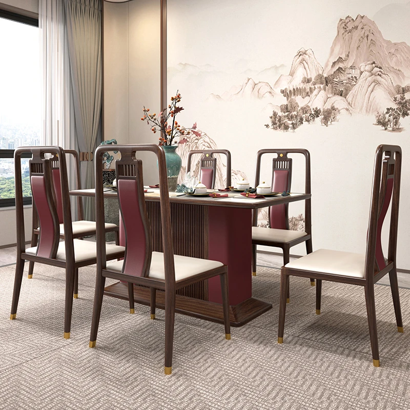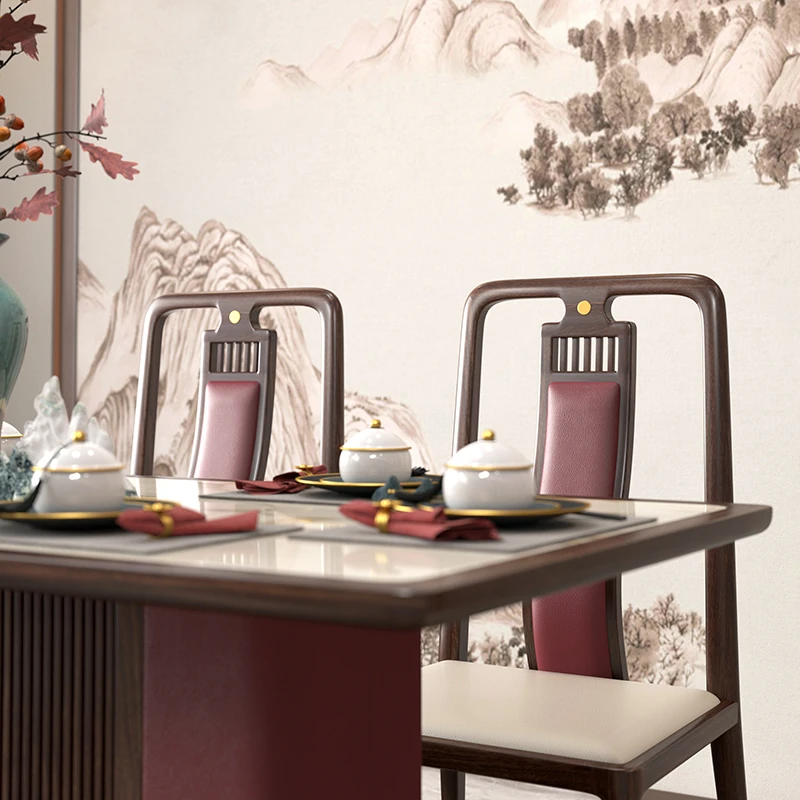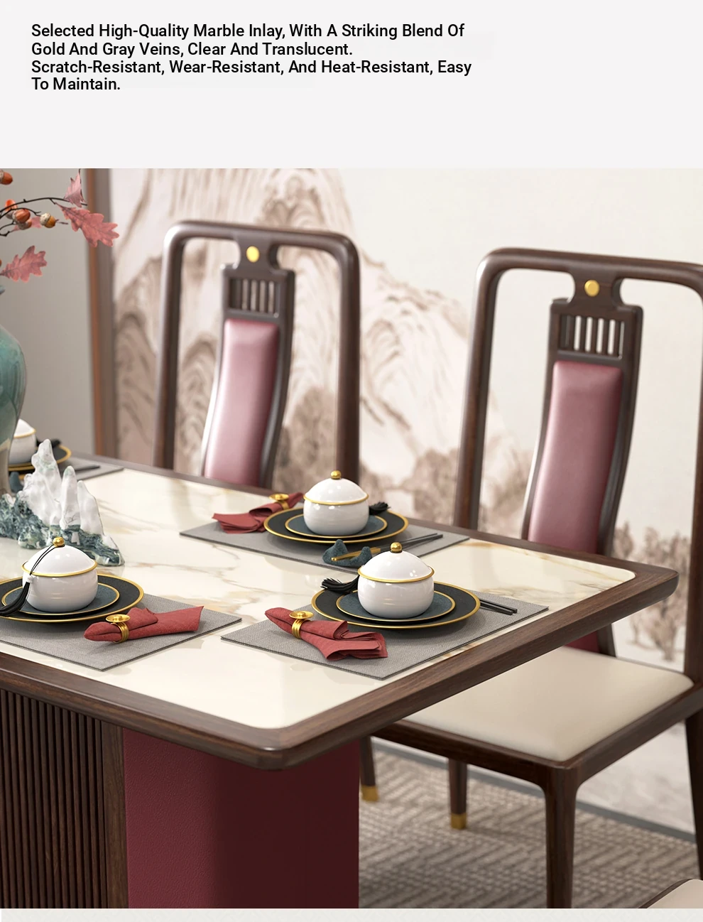 Modern Minimalist Rectangular Dining Table in New Chinese Style with Black Gold Wood - Elegant Solid Wood Furniture for Your Dining Room