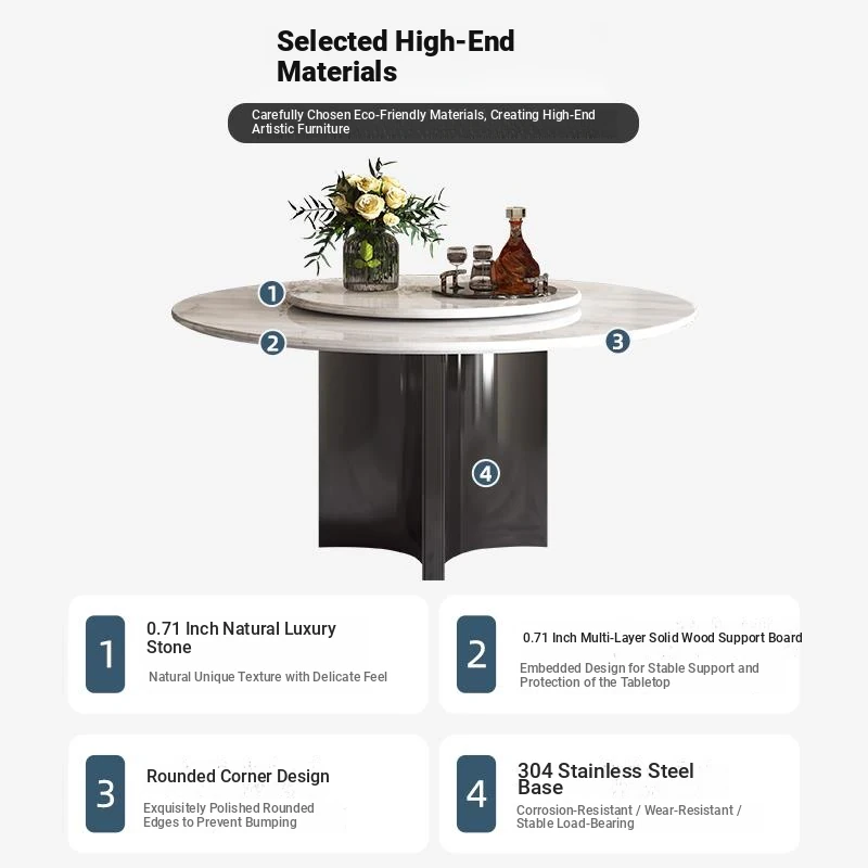 Jazz White Natural Luxury Stone Dining Table + Turntable