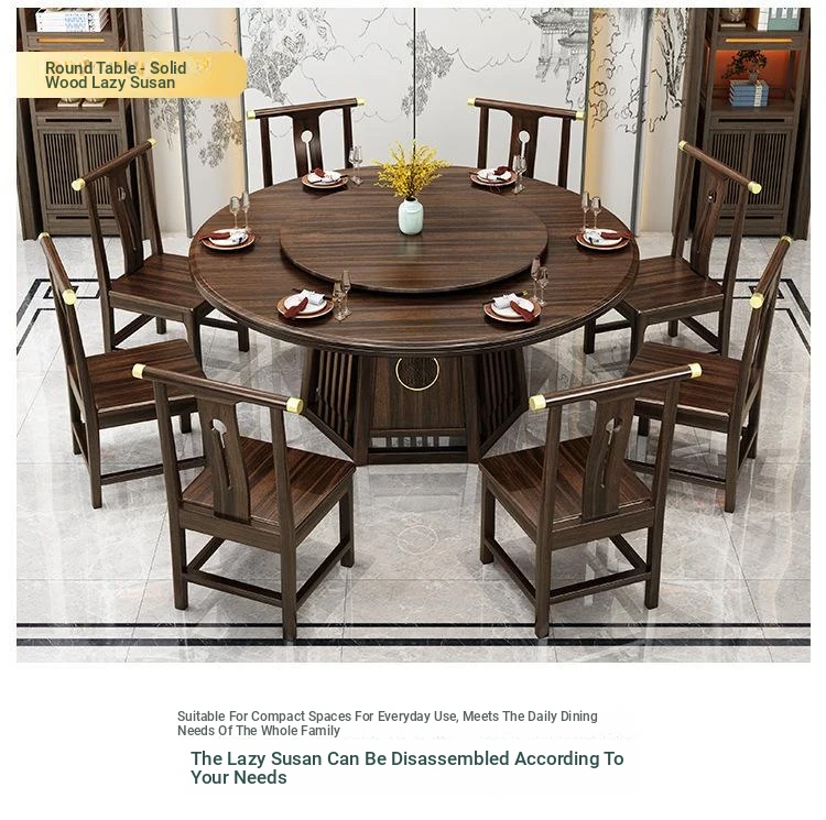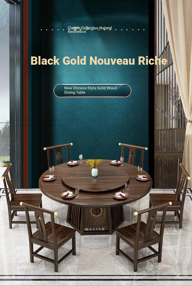 Modern Minimalist Solid Wood Dining Table and Chair Set in New Chinese Style - Elegant Round Table for Small Spaces, Perfect for Home Use