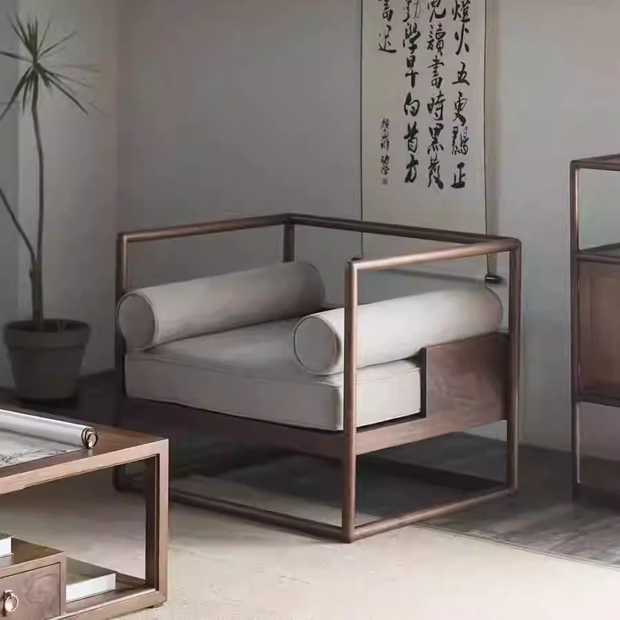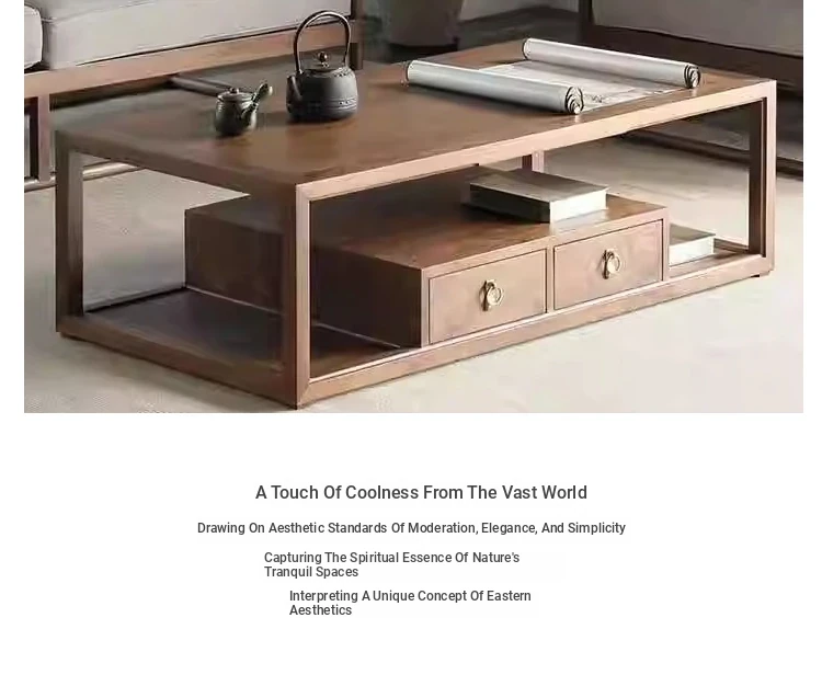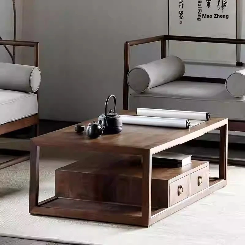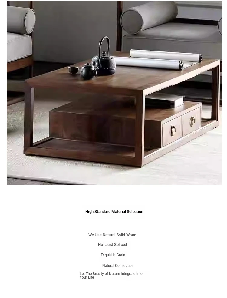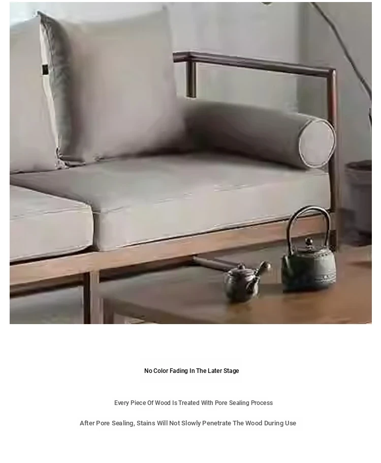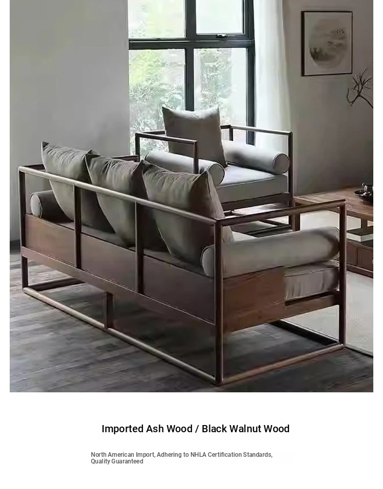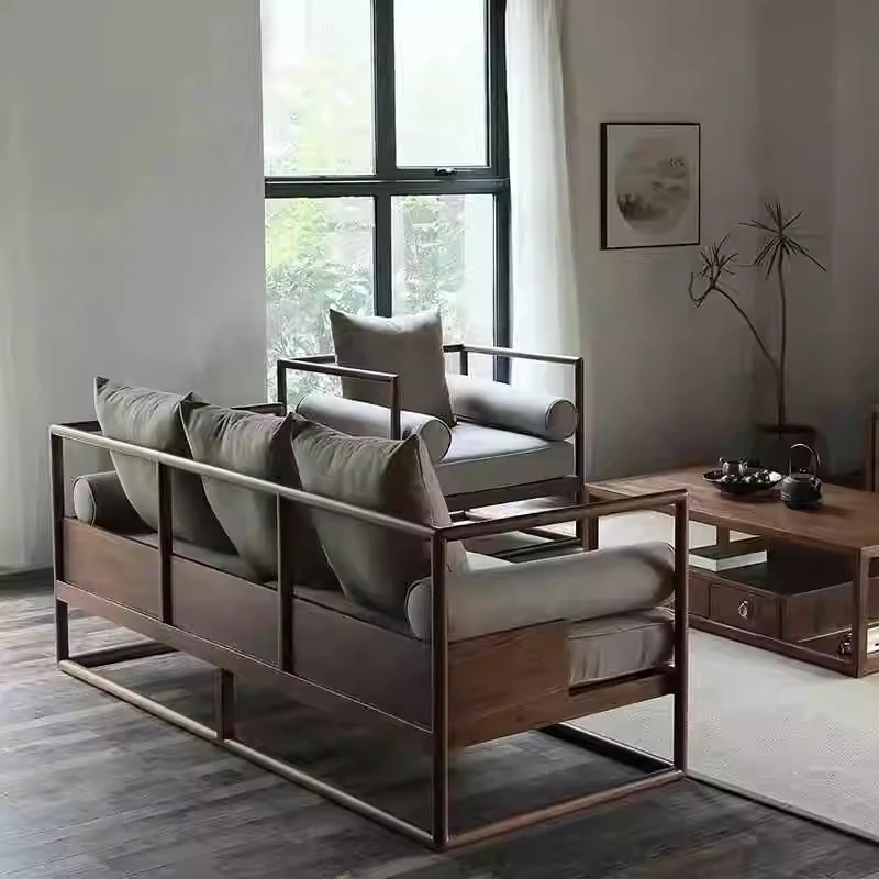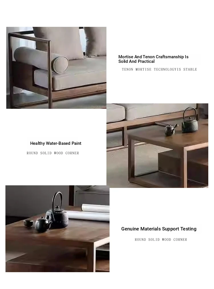 Modern Zen Style Black Walnut and Ash Wood Sofa and Coffee Table Set - New Chinese Reception Furniture for Hotels, Guesthouses, and Offices