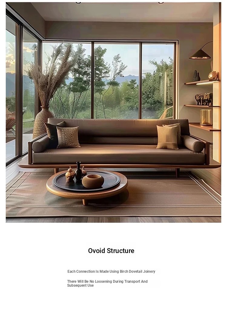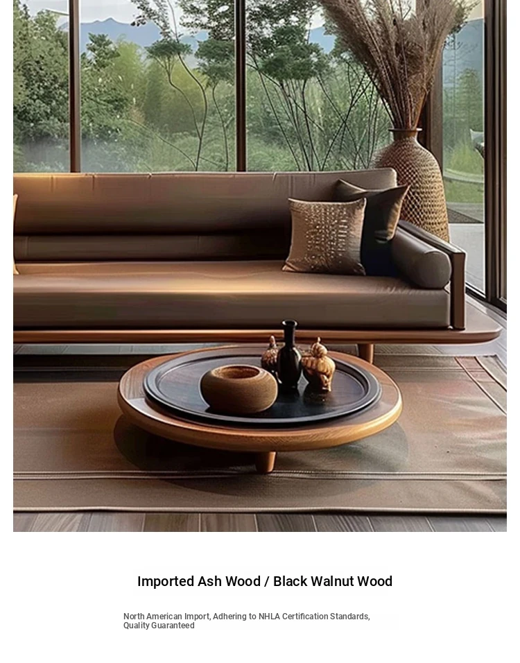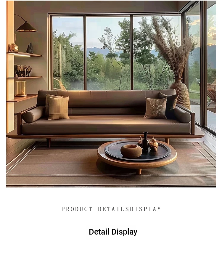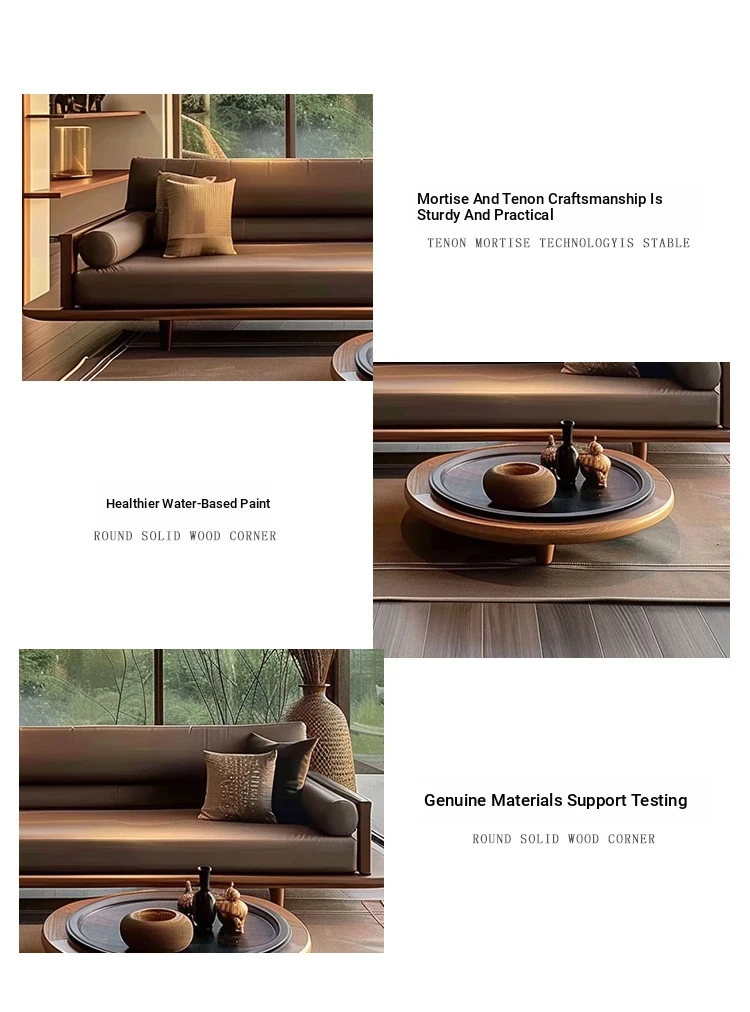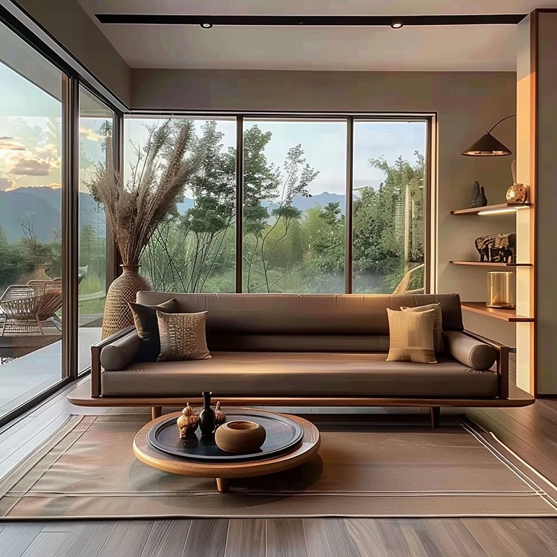 Modern Zen Style Solid Wood Sofa - Spacious and Elegant Seating for Large Spaces, Ideal for Hotels, Guesthouses, and Offices. Perfect for Relaxation and Socializing.
