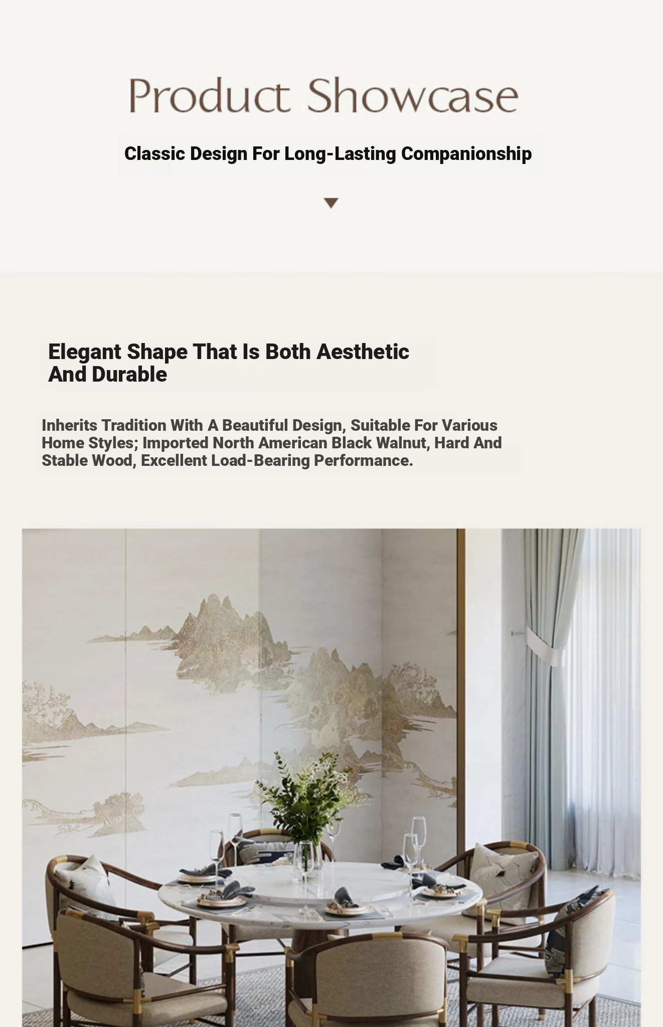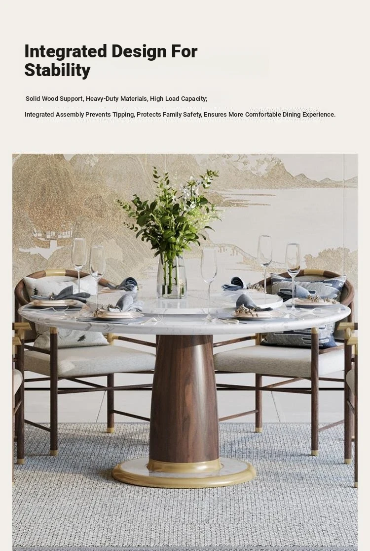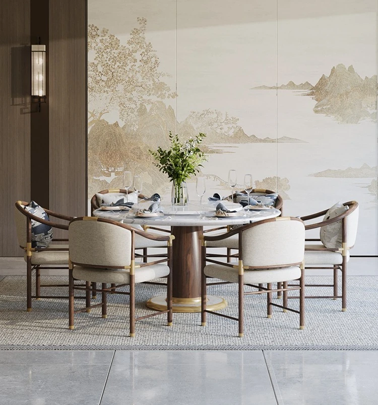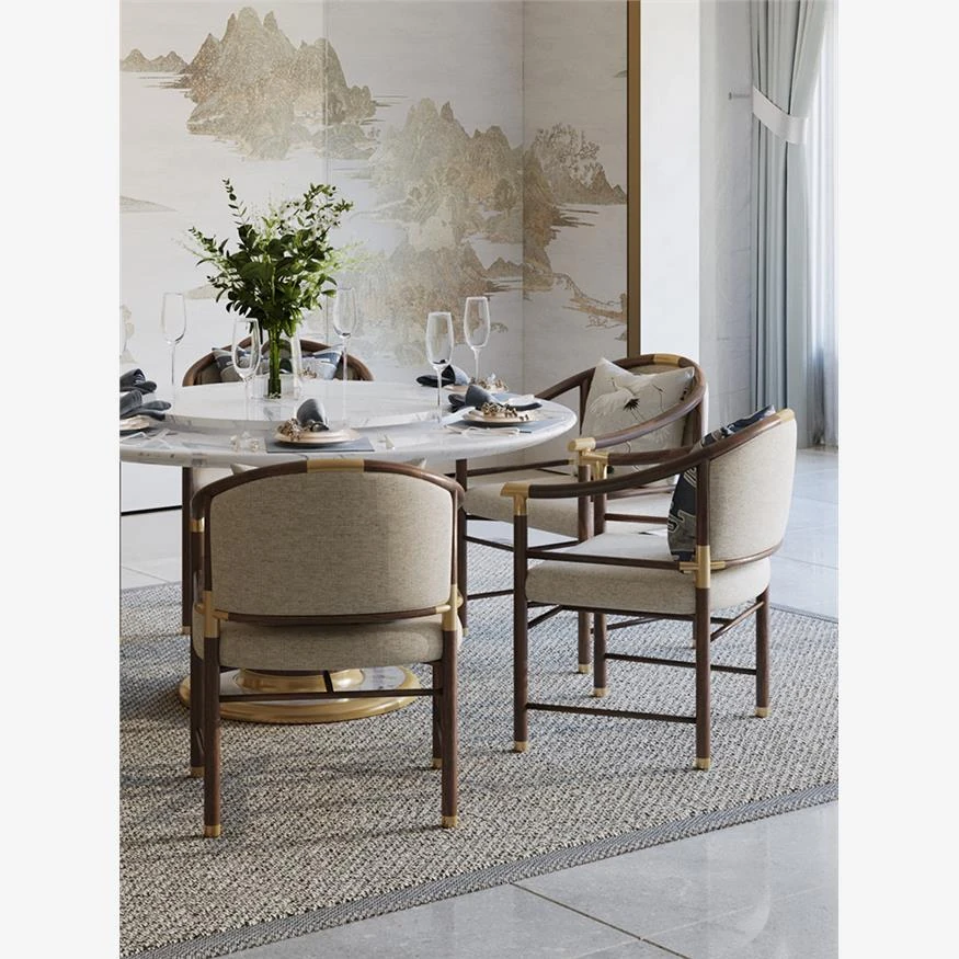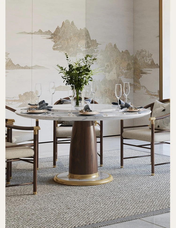 New Chinese Style Solid Wood Dining Table Set - Modern Minimalist Round Table with Chairs for Villas, Perfect for Home Use and Elegant Décor