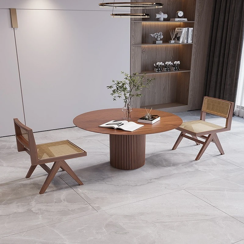 Nordic Creative Solid Wood Round Table - Minimalist Dining Table for Small Spaces, Perfect for Living Room or Coffee Table, Designed for Stylish Meetings and Conversations.