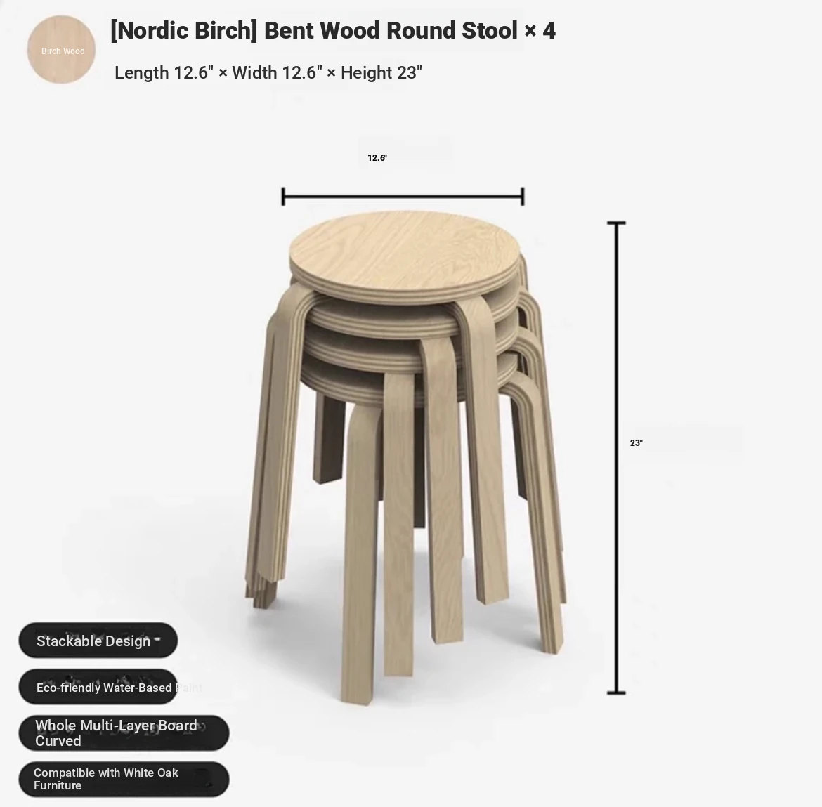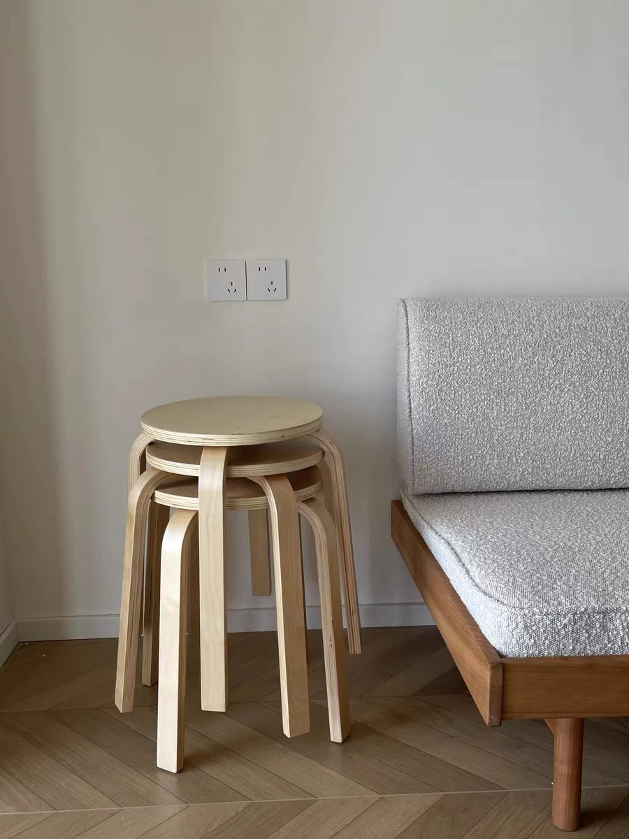 Nordic Solid Wood Stool - Comfortable Dining Chair for Long Sitting, Modern Minimalist Folding Shoe Bench, Stylish Round Stool for Home Use