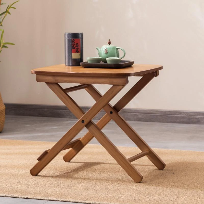 Portable Bamboo Folding Dining Table - Space-Saving Square Table for Home, Small Apartments, and Outdoor Use - Perfect for Balconies and Pop-Up Stalls