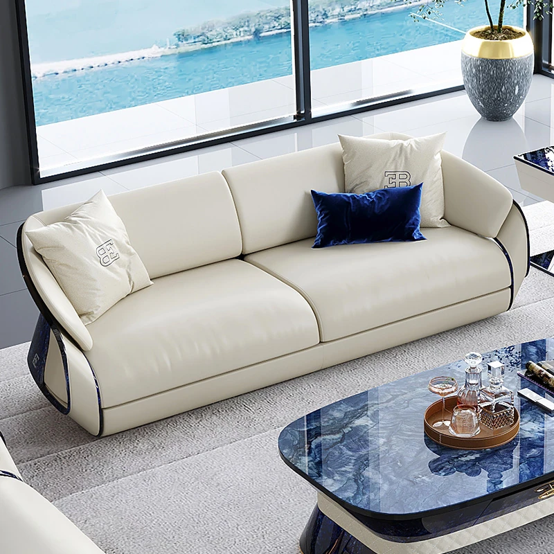Postmodern Luxury Leather Sofa Set for Villa - Premium First Layer Leather, Elegant Hong Kong Style Living Room Furniture for Model Homes