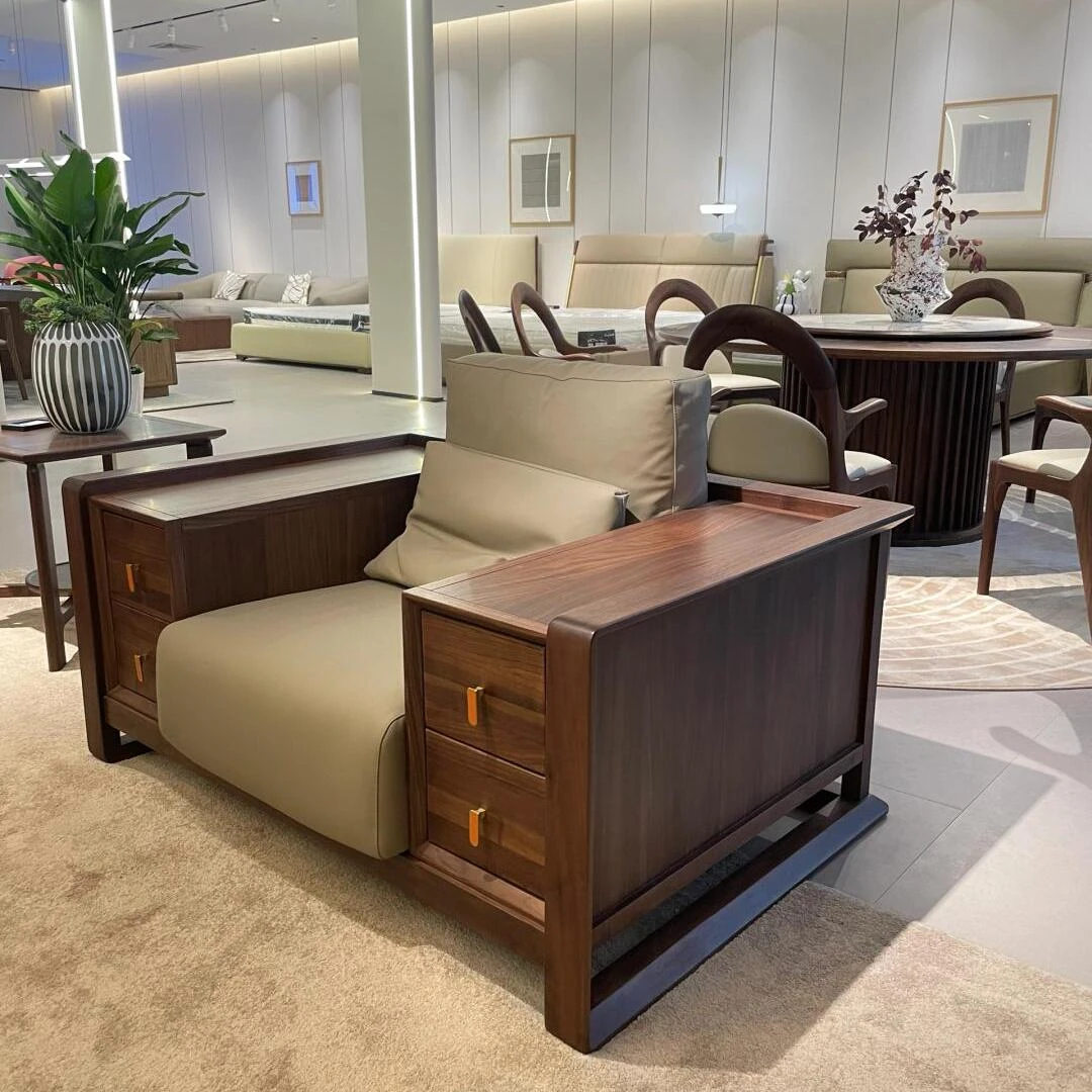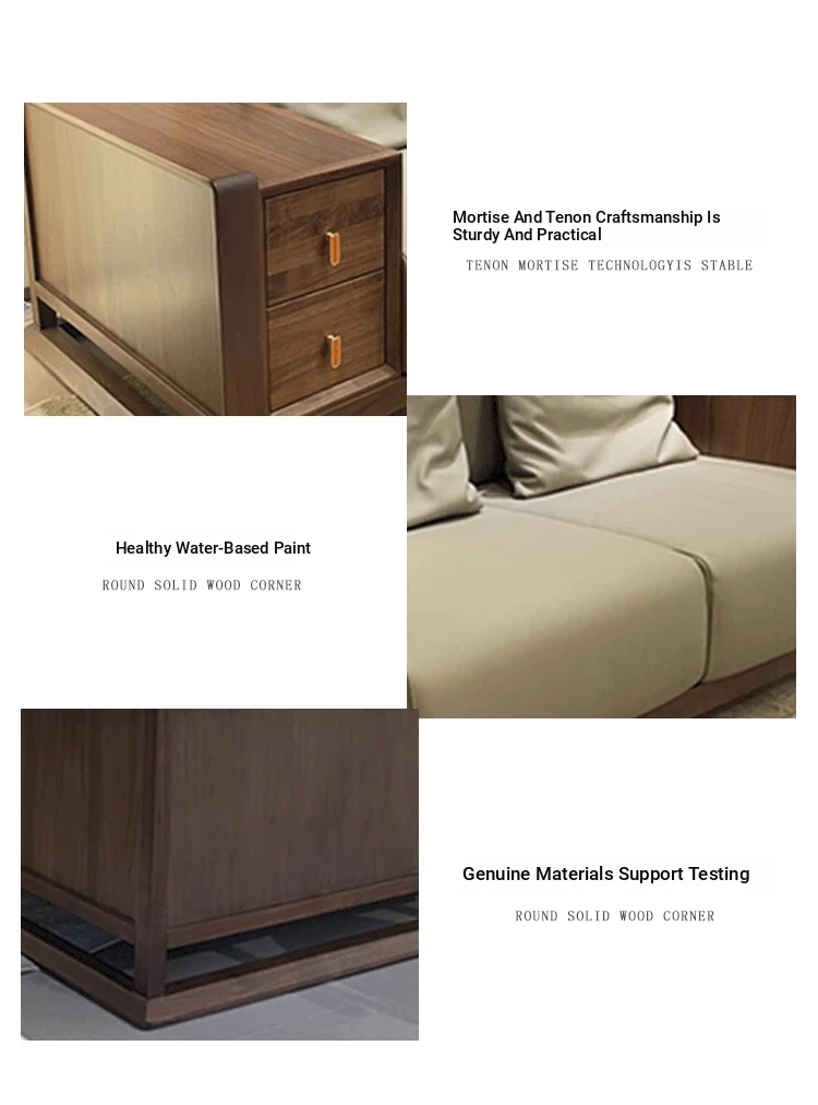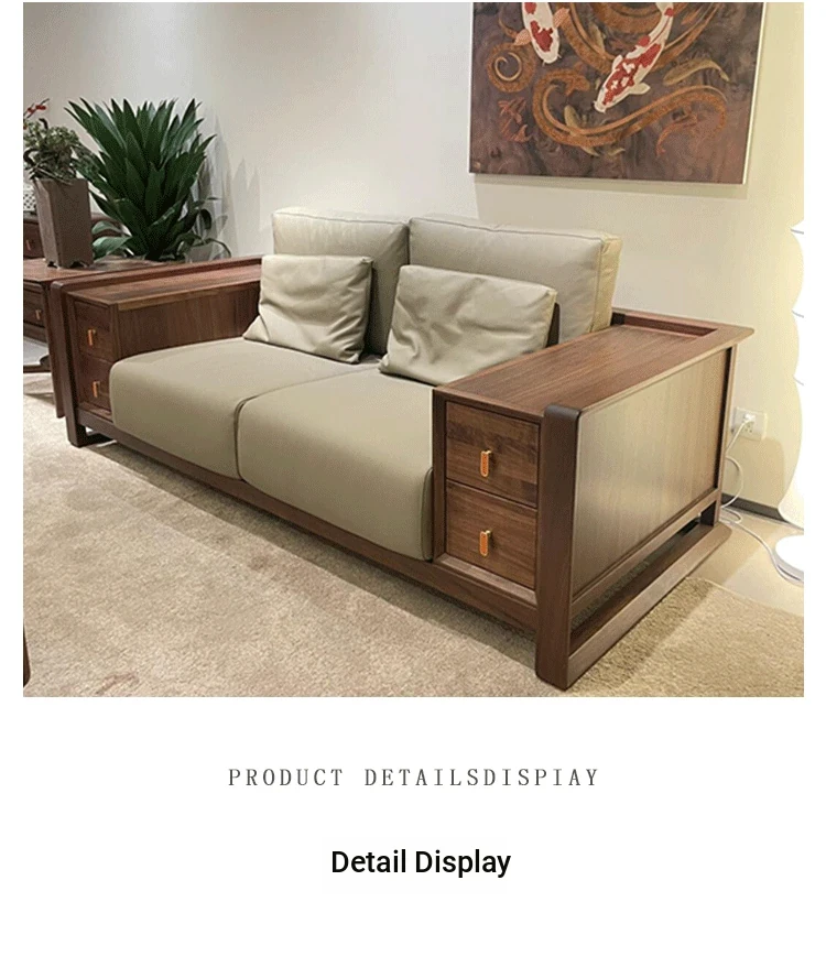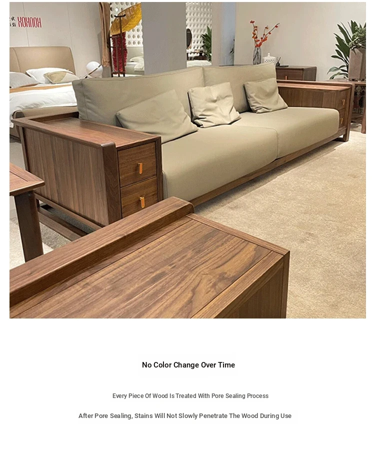 Premium Modern Chinese Zen Style White Ash Sofa - High-End Luxury Home Living Room Furniture in North American Walnut Wood, Solid Wood Construction for Elegant Comfort